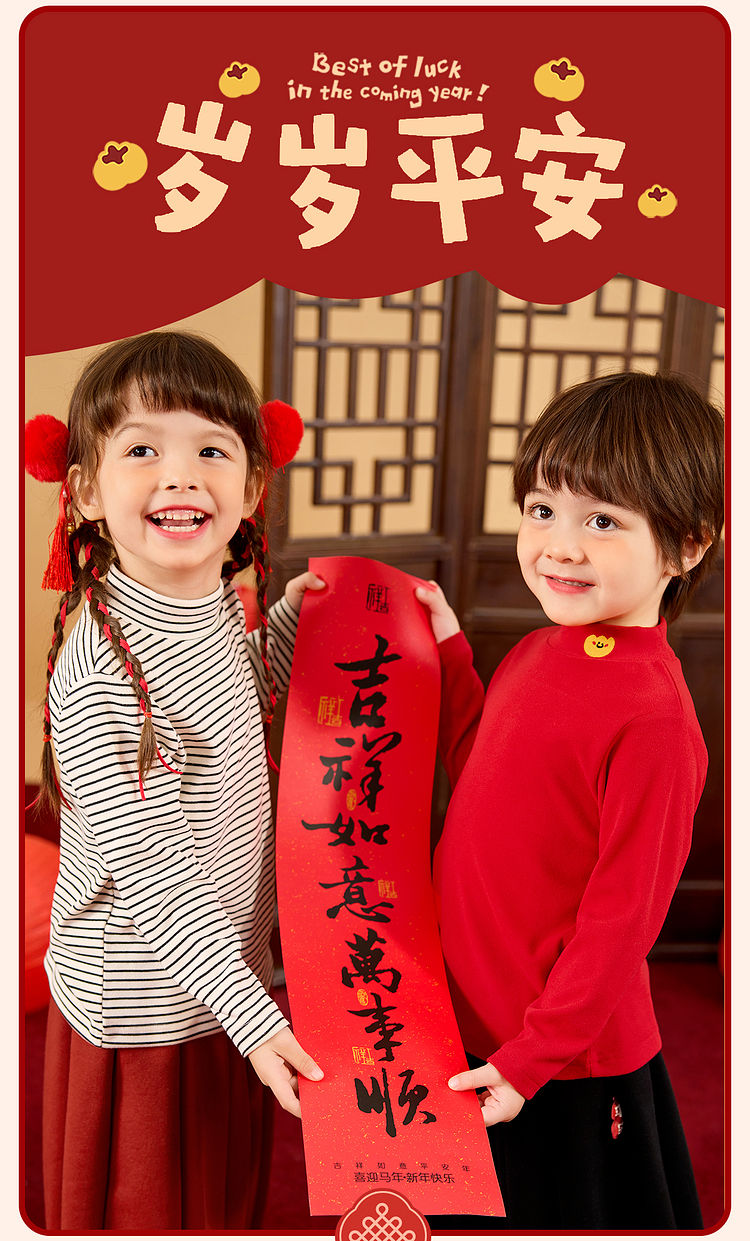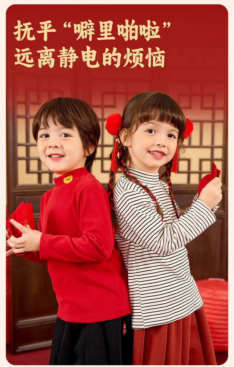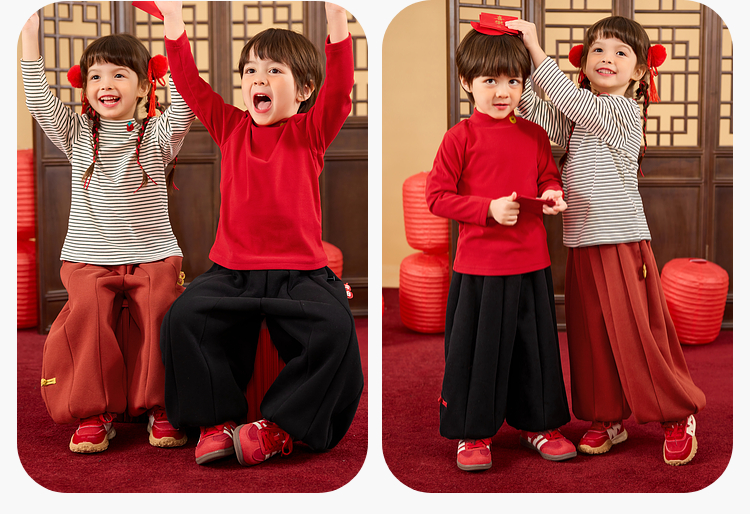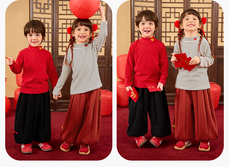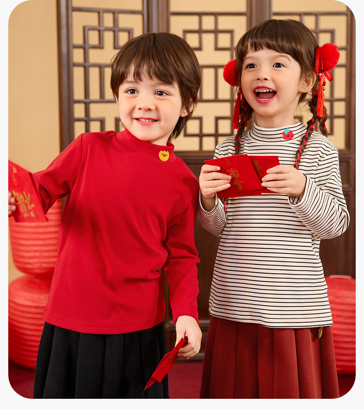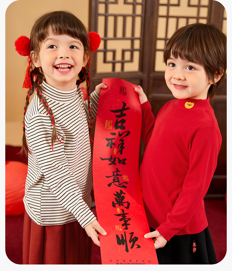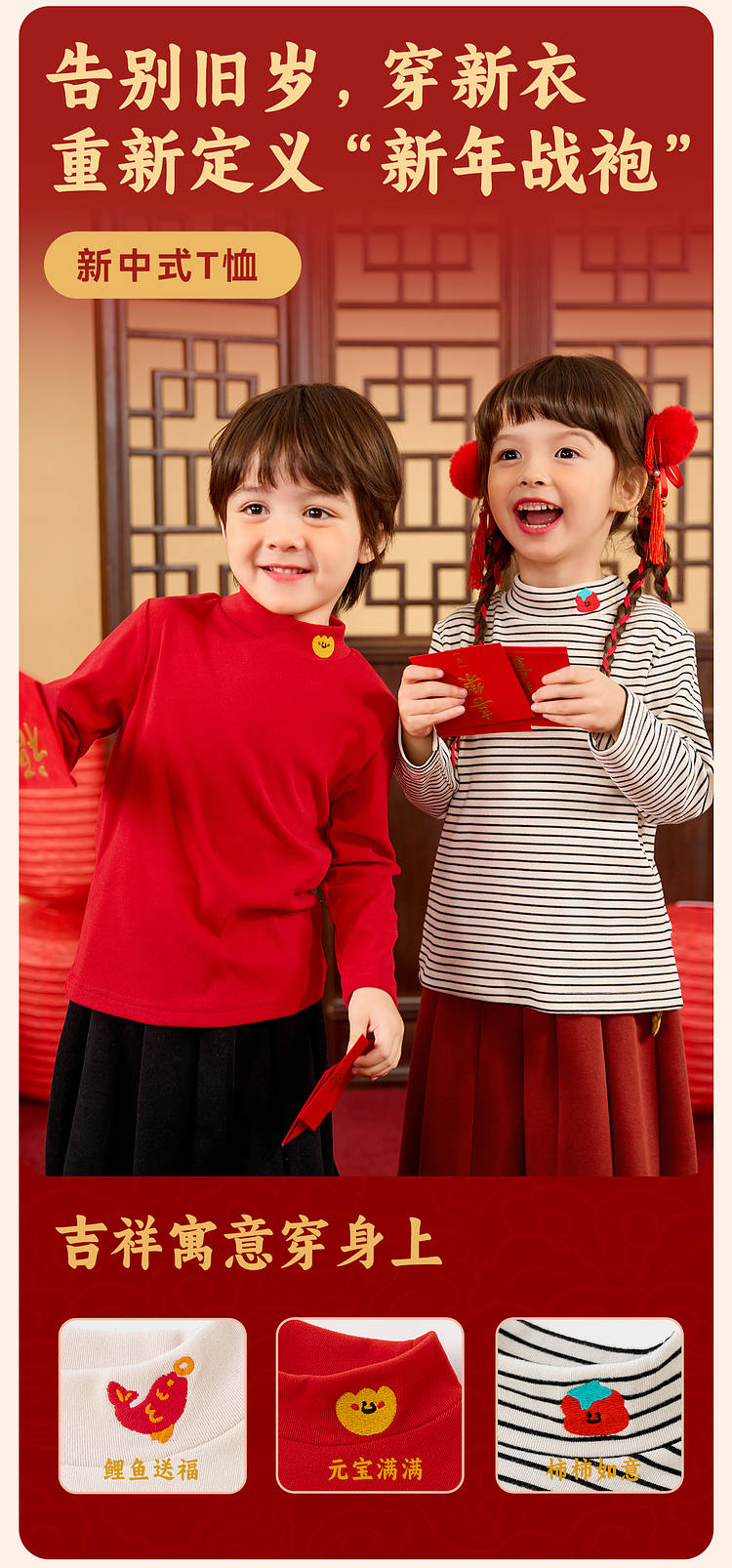 嘟嘟家儿童长袖T恤宝宝红色打底衫衣服拜年服男童女童新年童装新★