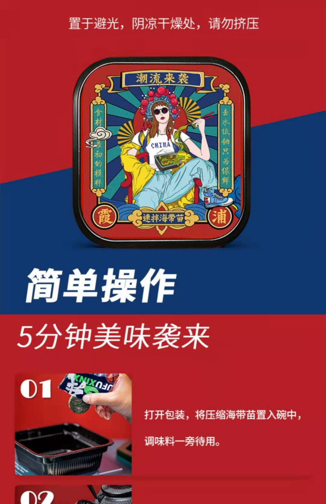 规 格:62g(压缩海带苗12g*1包、油包15g*1包、料包35g*1包、筷子一双)/*4盒