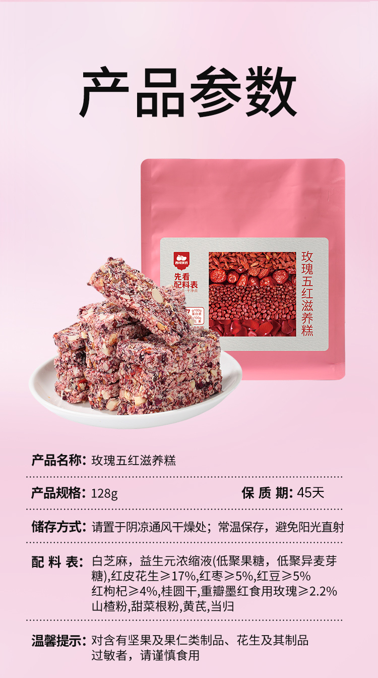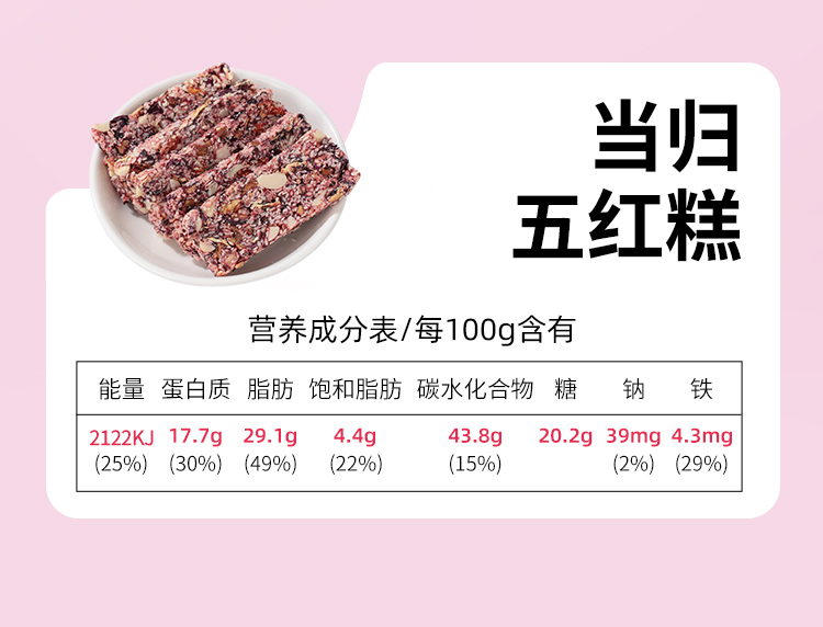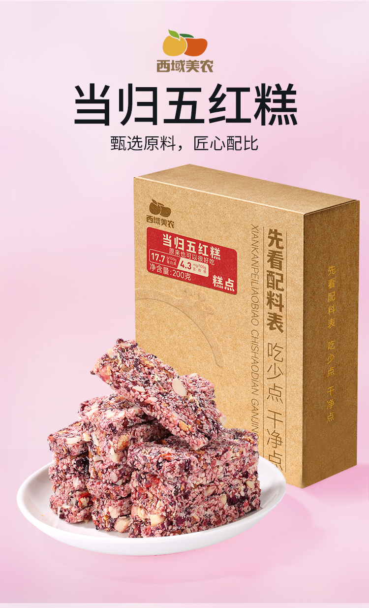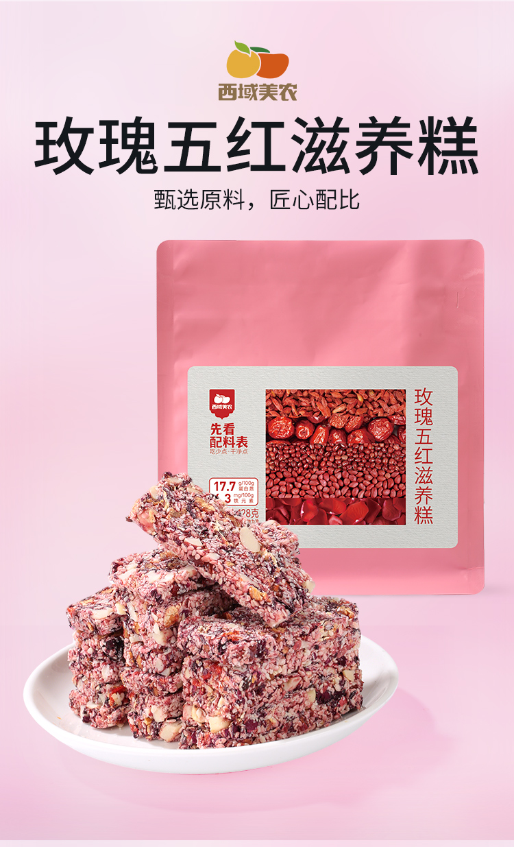 西域美农 玫瑰五红滋养糕 五黑钙力糕 红枣桂圆枸杞派 当归五红糕 128g/袋