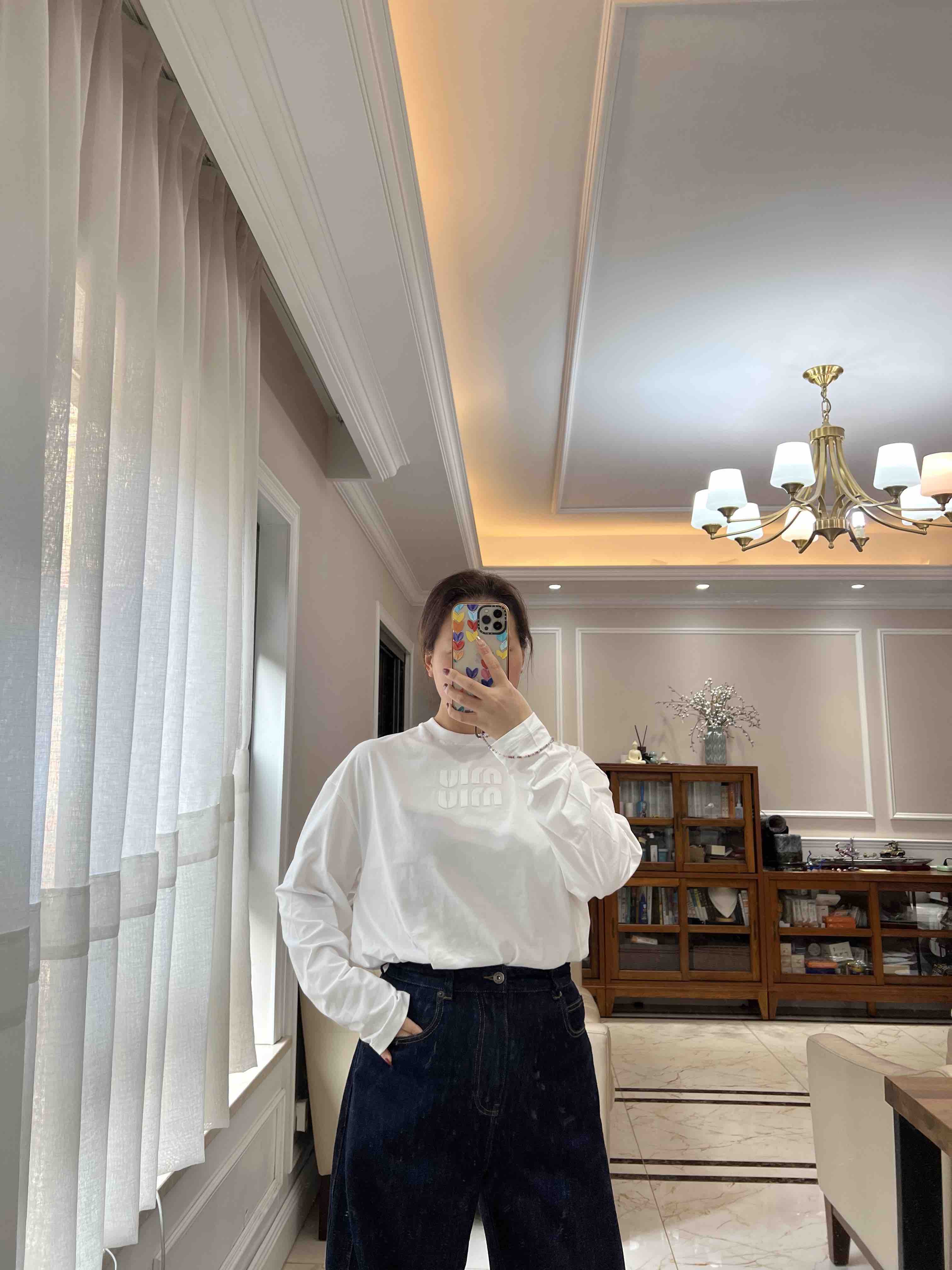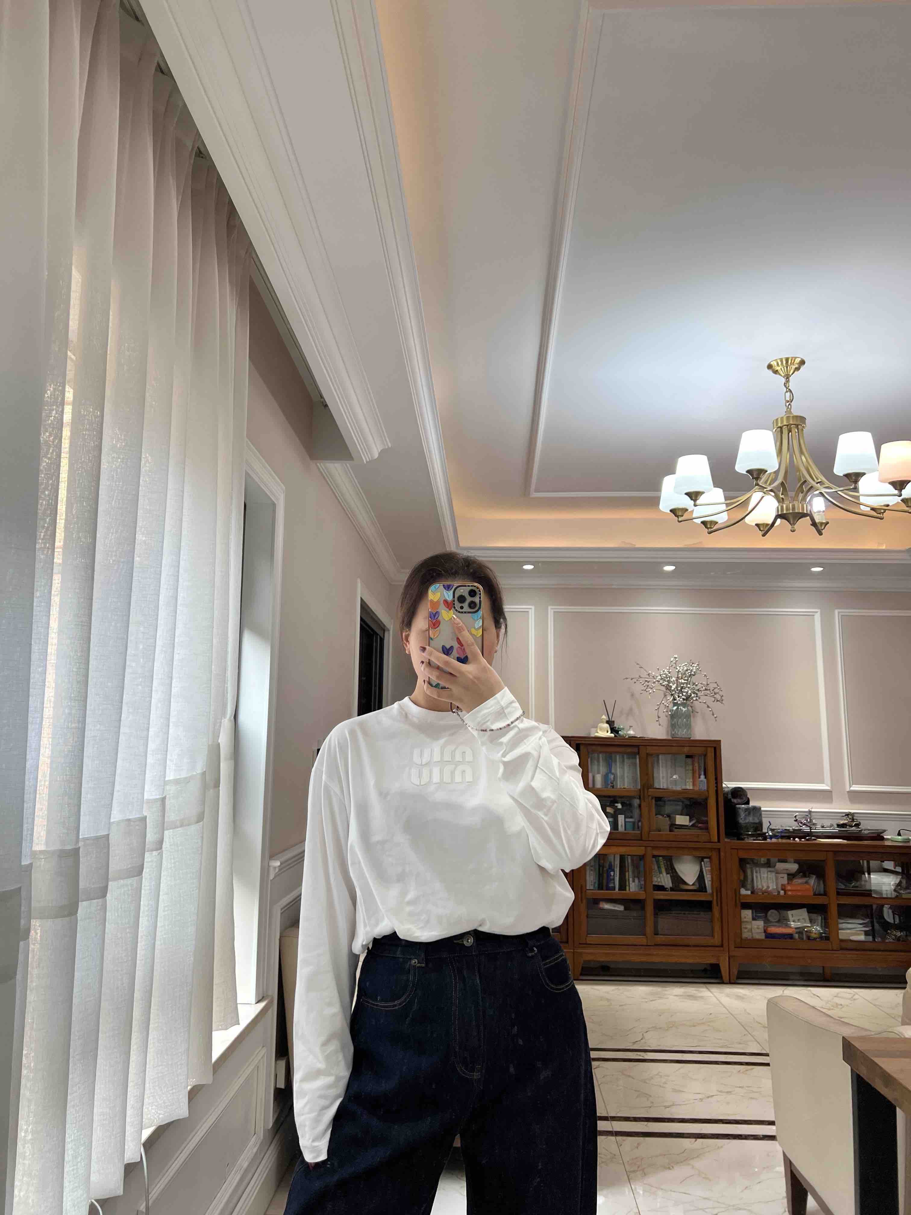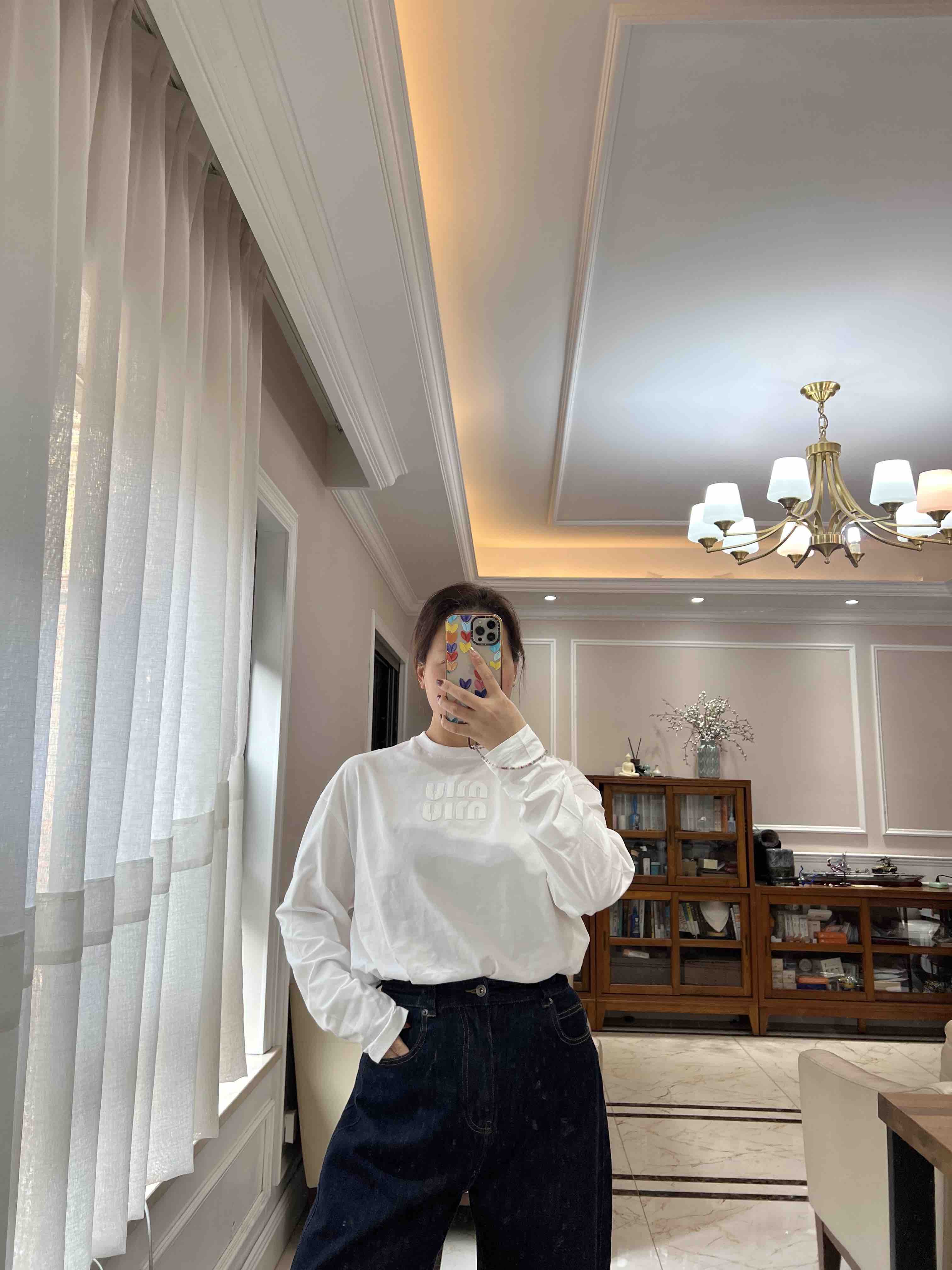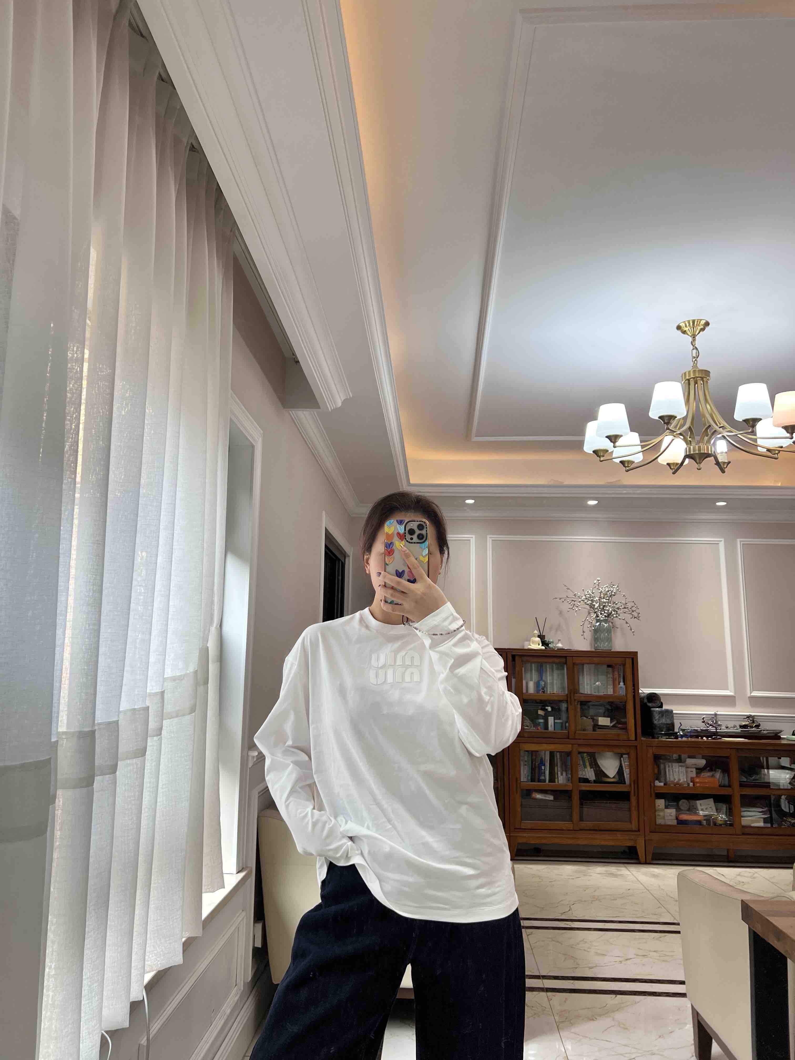 227-5 渠道货 Miu基础圆领 264款 字母贴布绣 精梳棉 宽松圆领长袖T恤