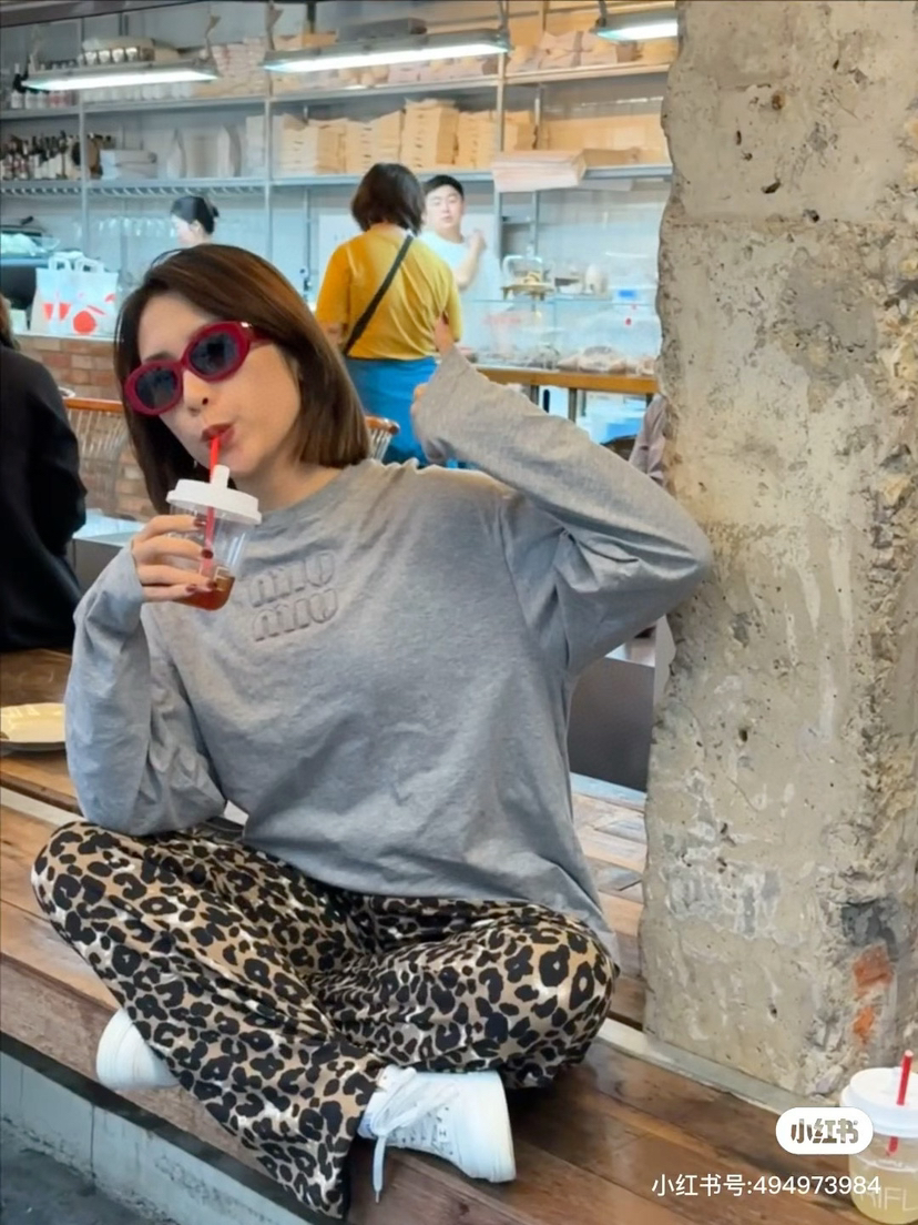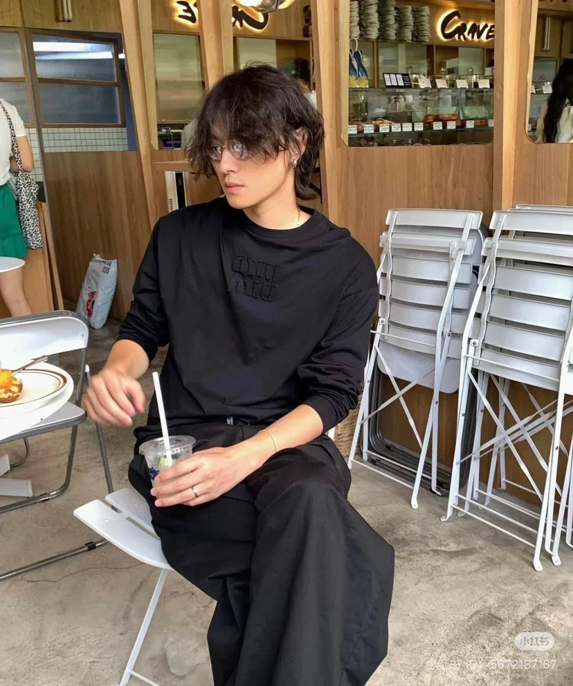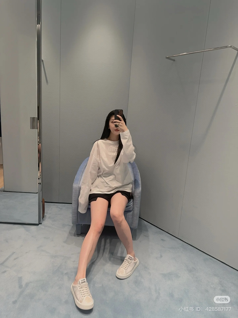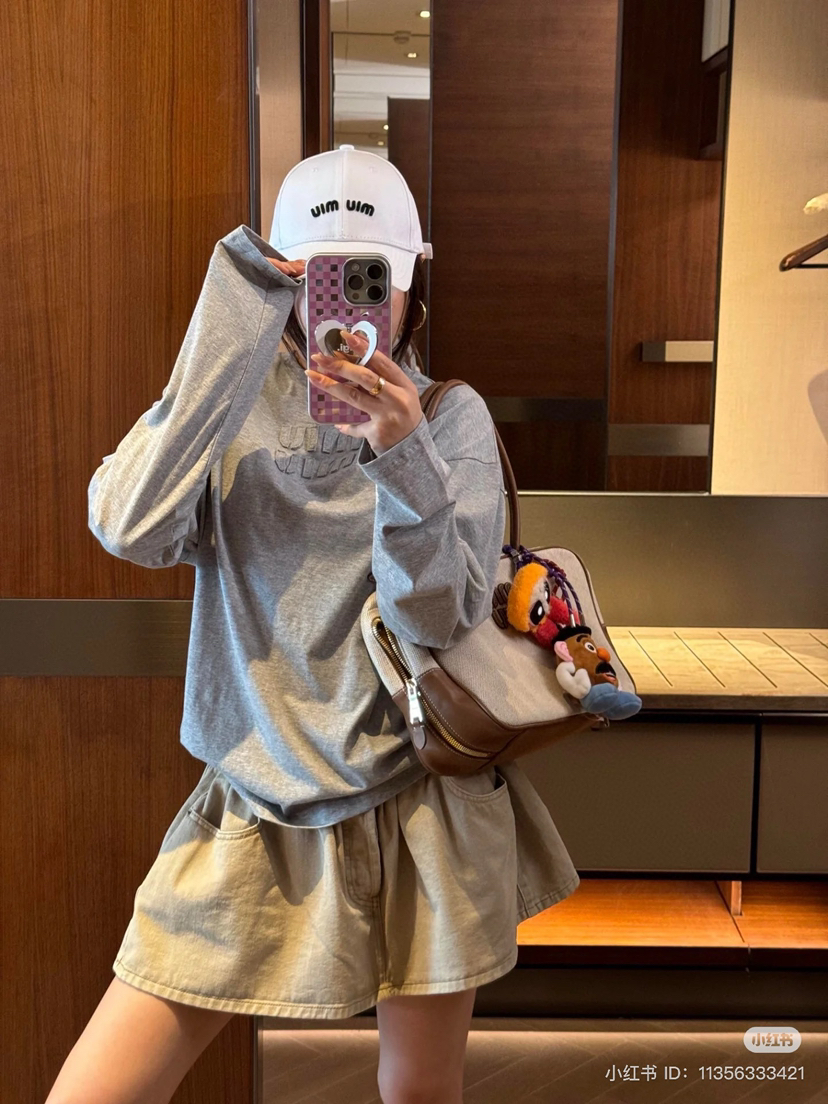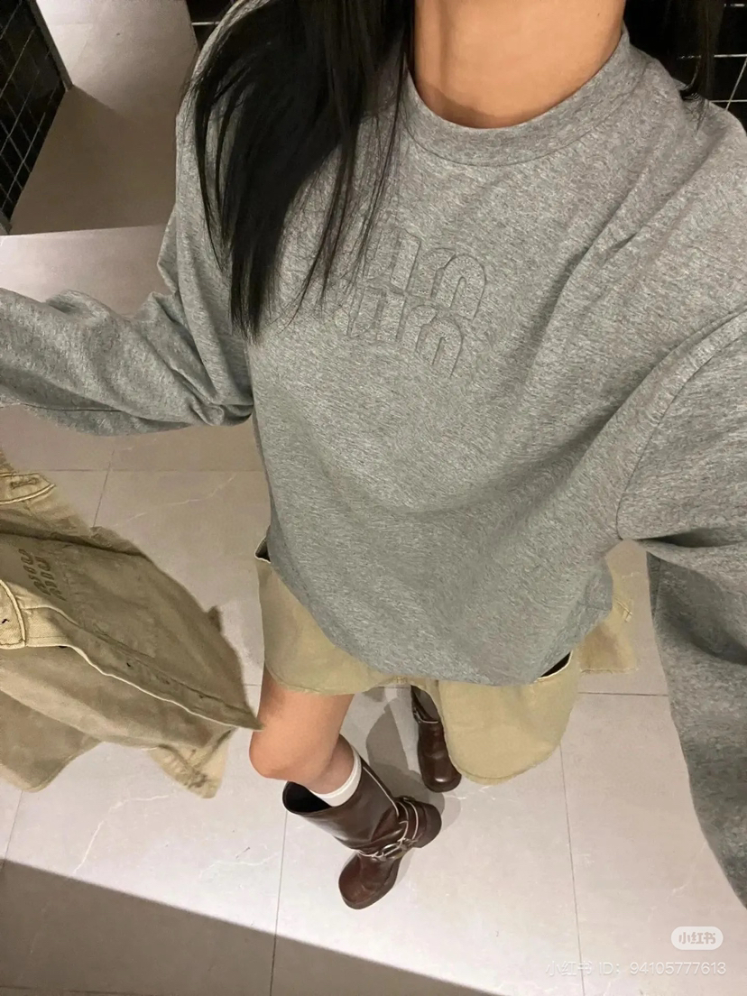 227-5 渠道货 Miu基础圆领 264款 字母贴布绣 精梳棉 宽松圆领长袖T恤
