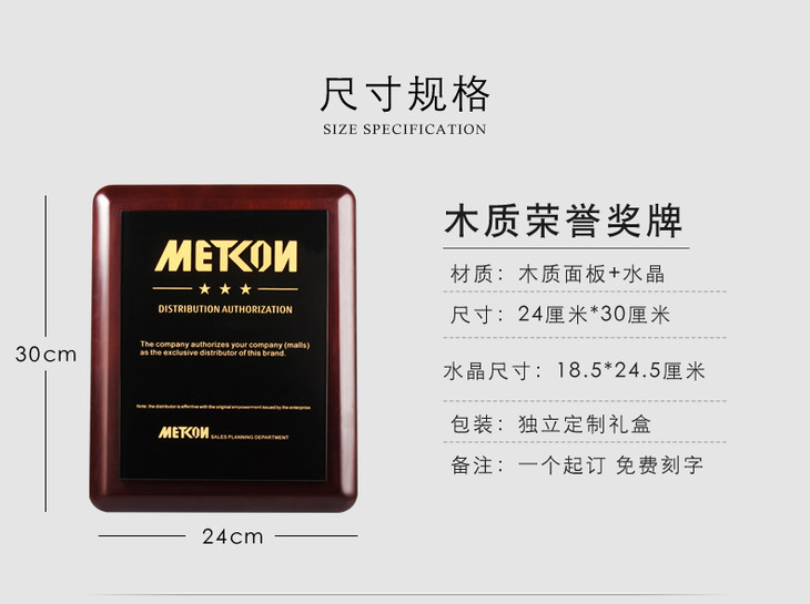 木质授权牌 水晶奖杯 定制高档奖牌 加盟牌代理商授权牌订做刻字