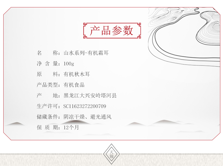 天锦有机霜耳100g/盒