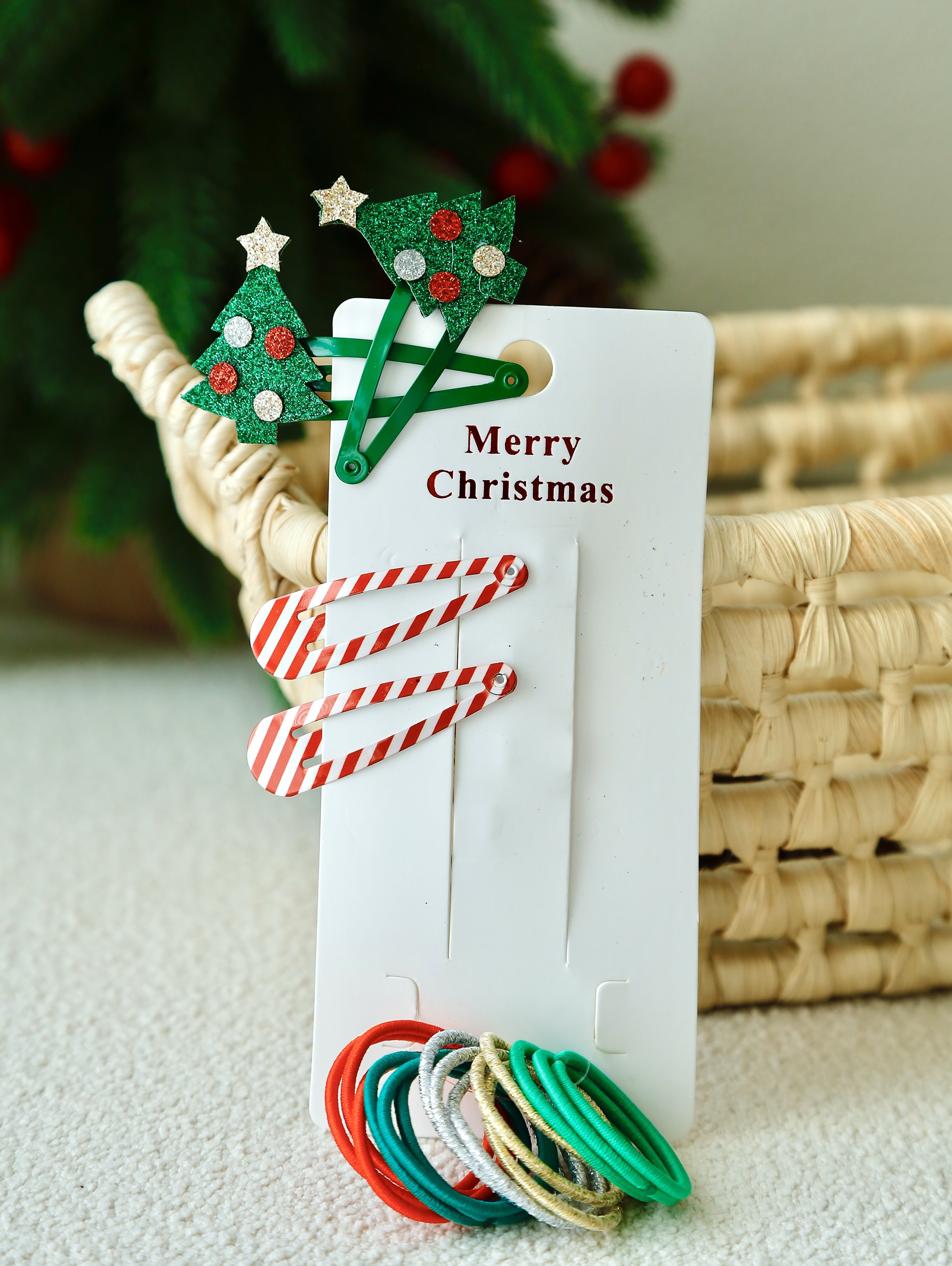 🎄圣诞树发夹*2➕红白条纹发夹*2➕彩色发绳*15