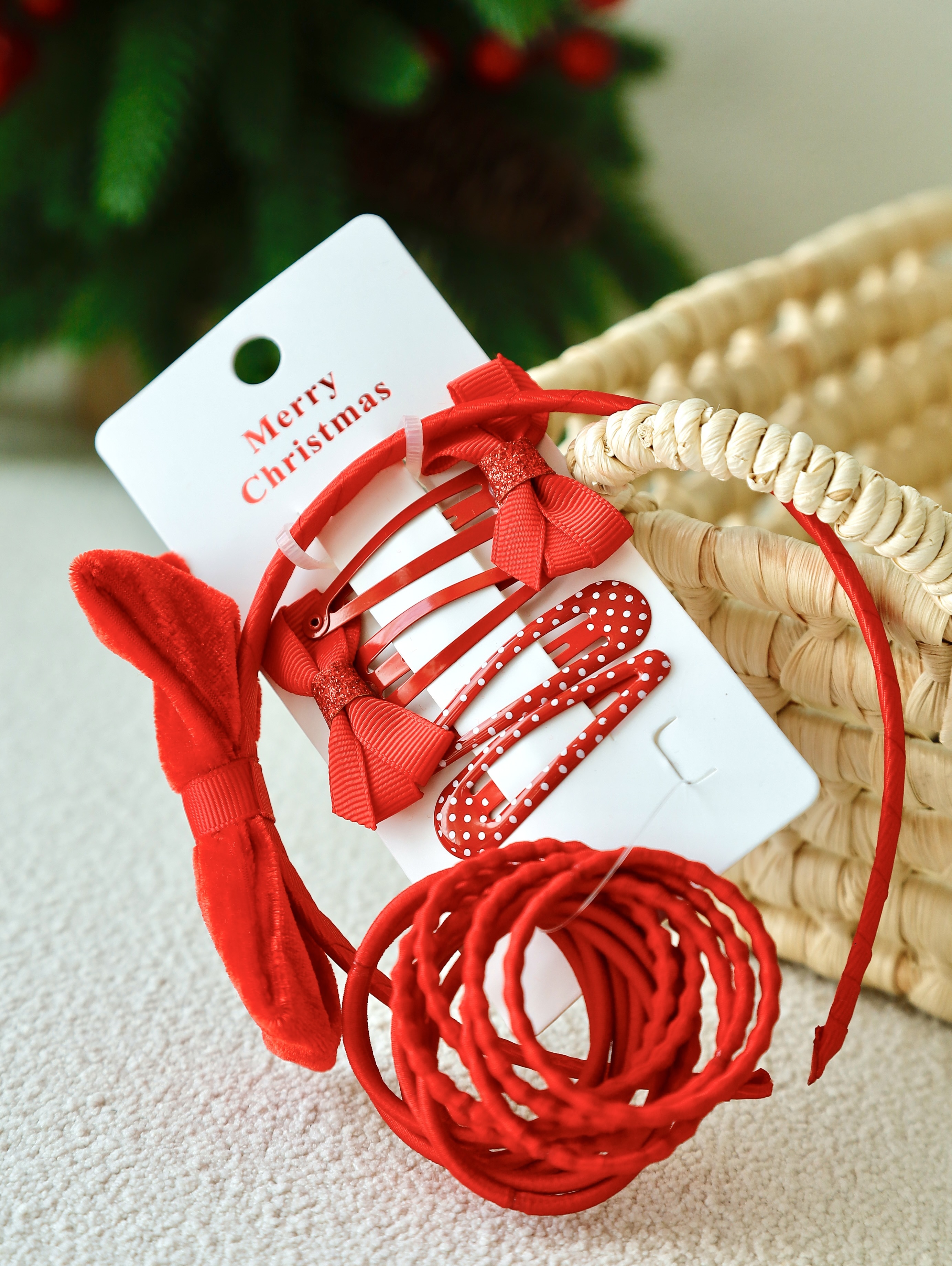 🎀绒面蝴蝶结发箍➕蝴蝶结发夹*2➕波点发夹*2➕红色发绳*12