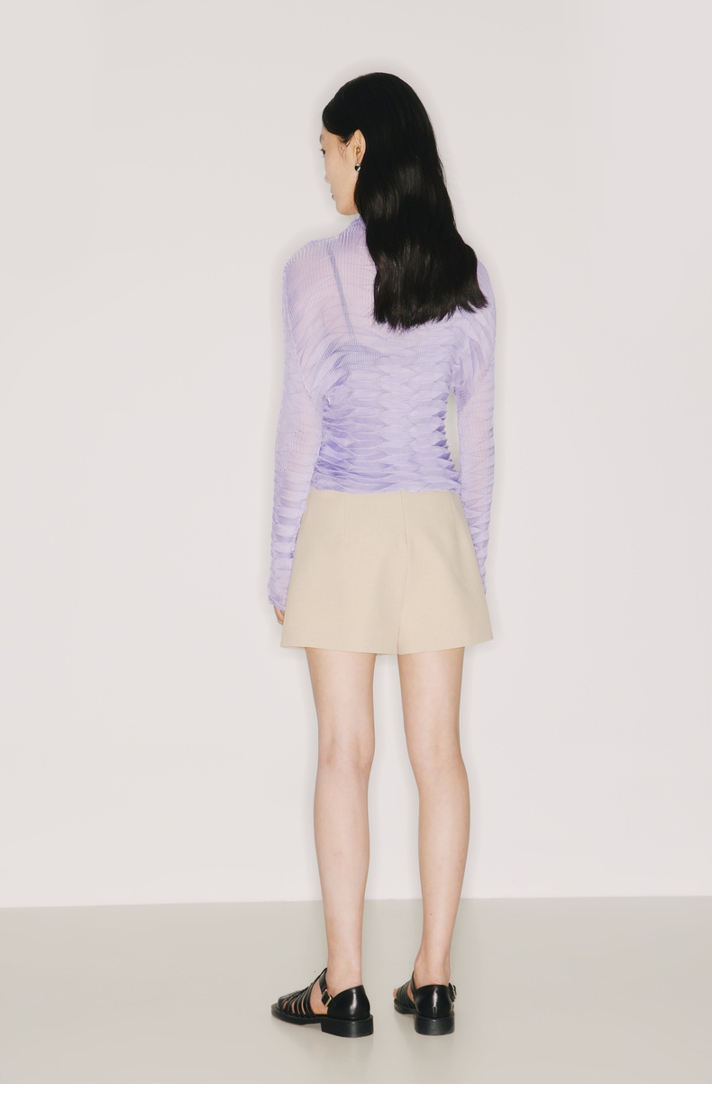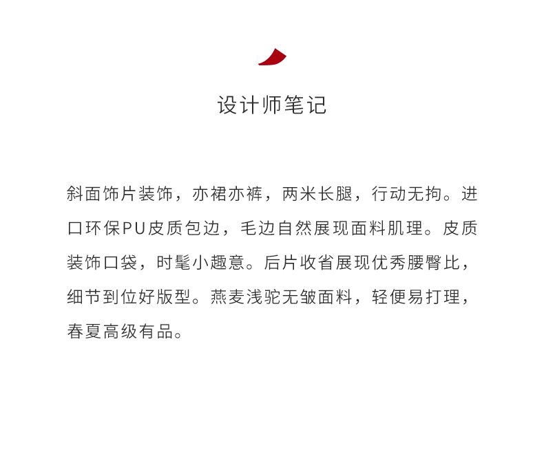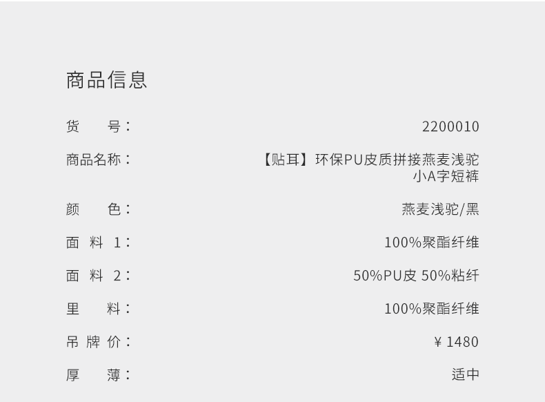 【贴耳】环保PU皮质拼接燕麦浅驼小A字短裤/2200010