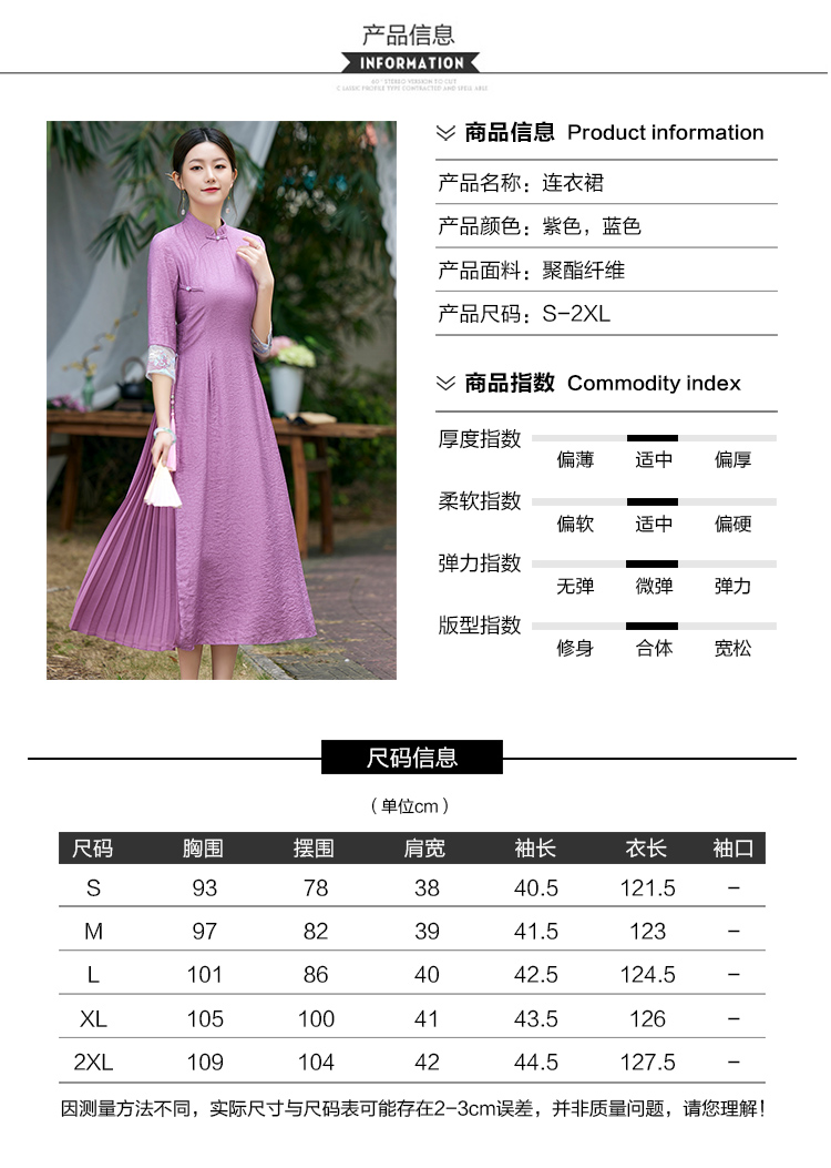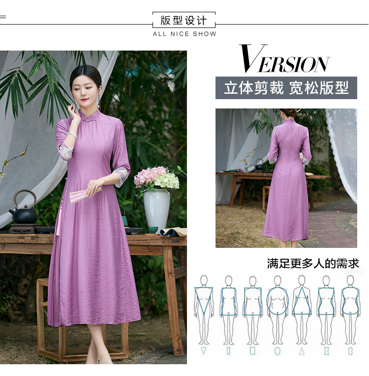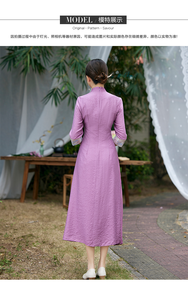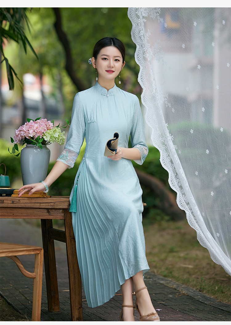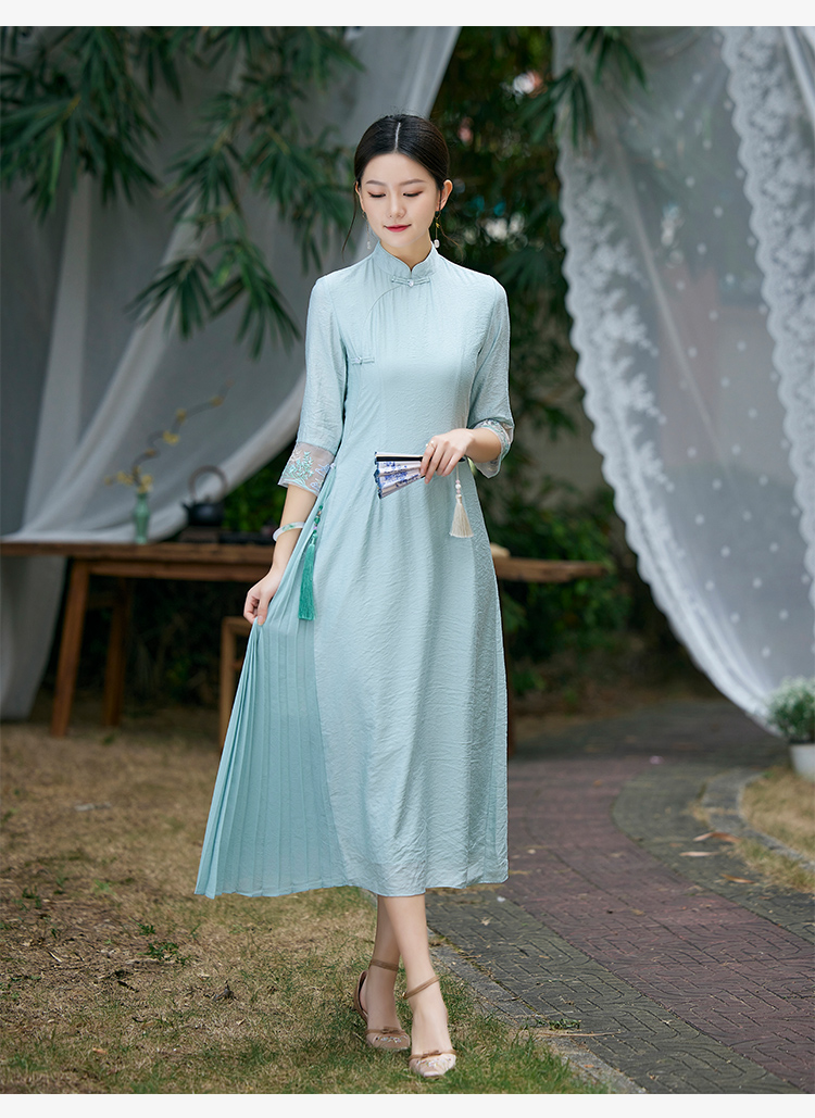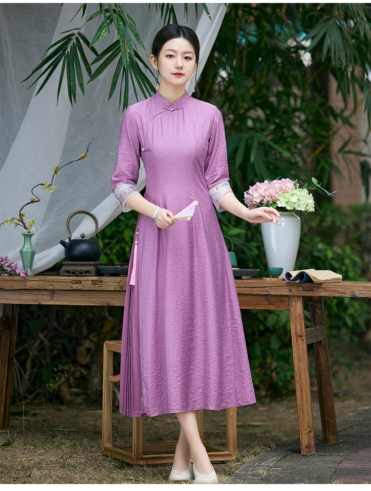 2022春夏新品国风时尚新款女士中式压褶奥黛旗袍枫庭刺绣连衣裙 LX21082