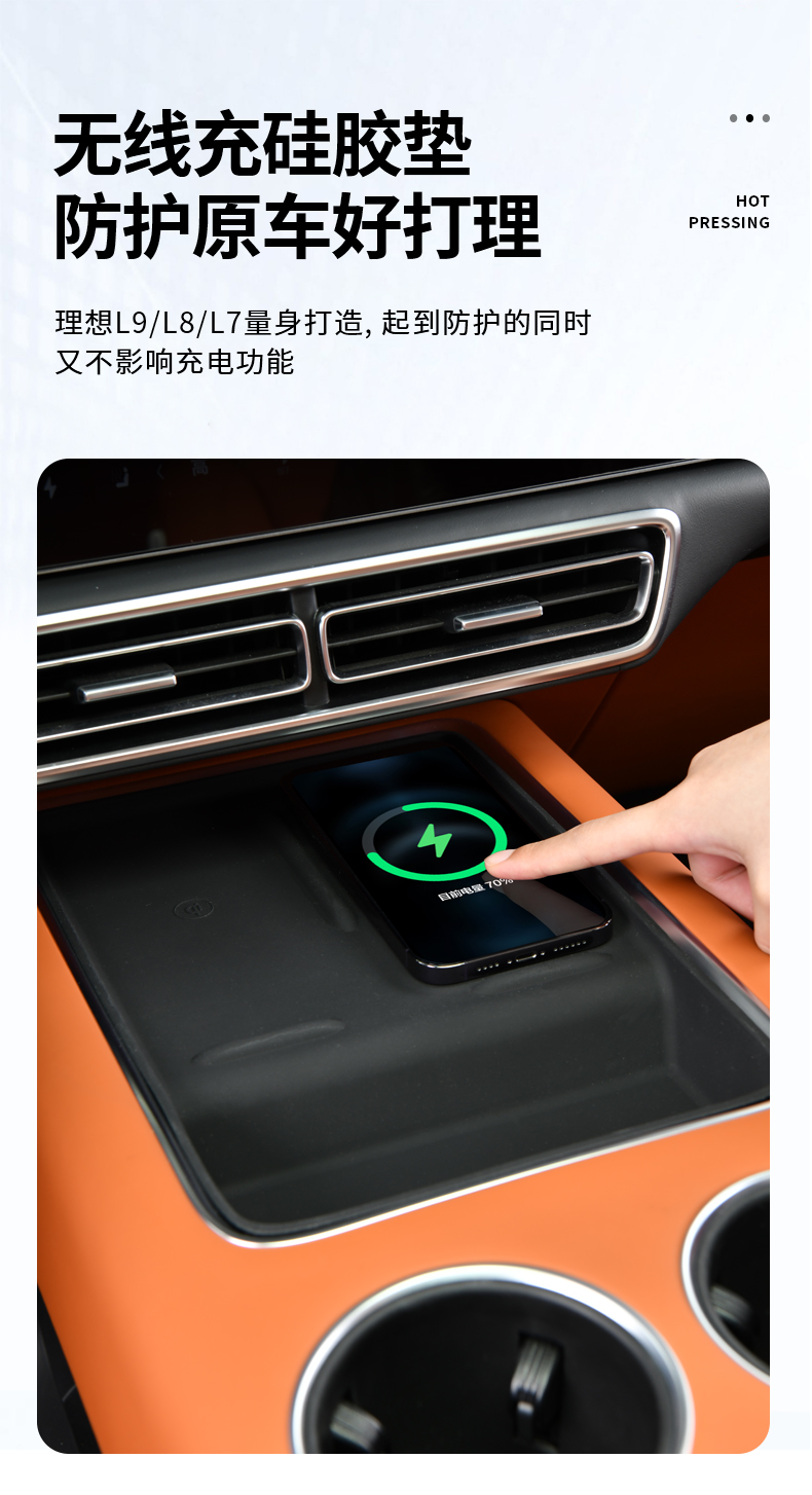 理想L7/L8/L9/防滑无线充硅胶垫中控水杯套汽车内饰储物用品配件