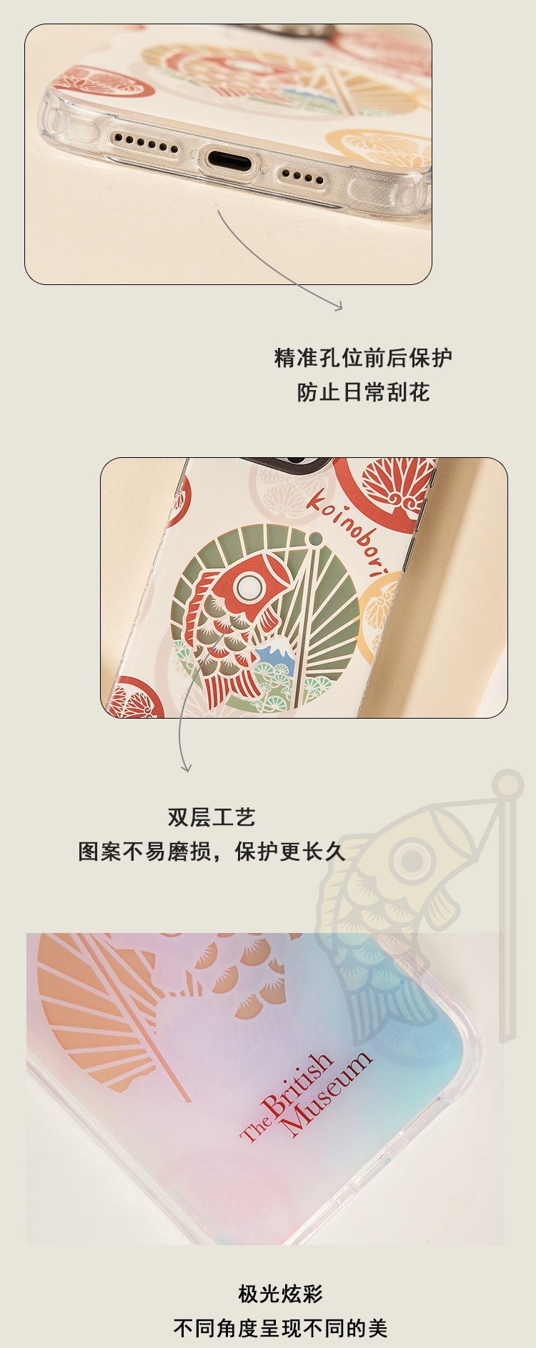 大英博物馆 东瀛系列 锦鲤上岸 旗开得胜 双层 手机壳 iphone15 pro max 高颜值 情侣款