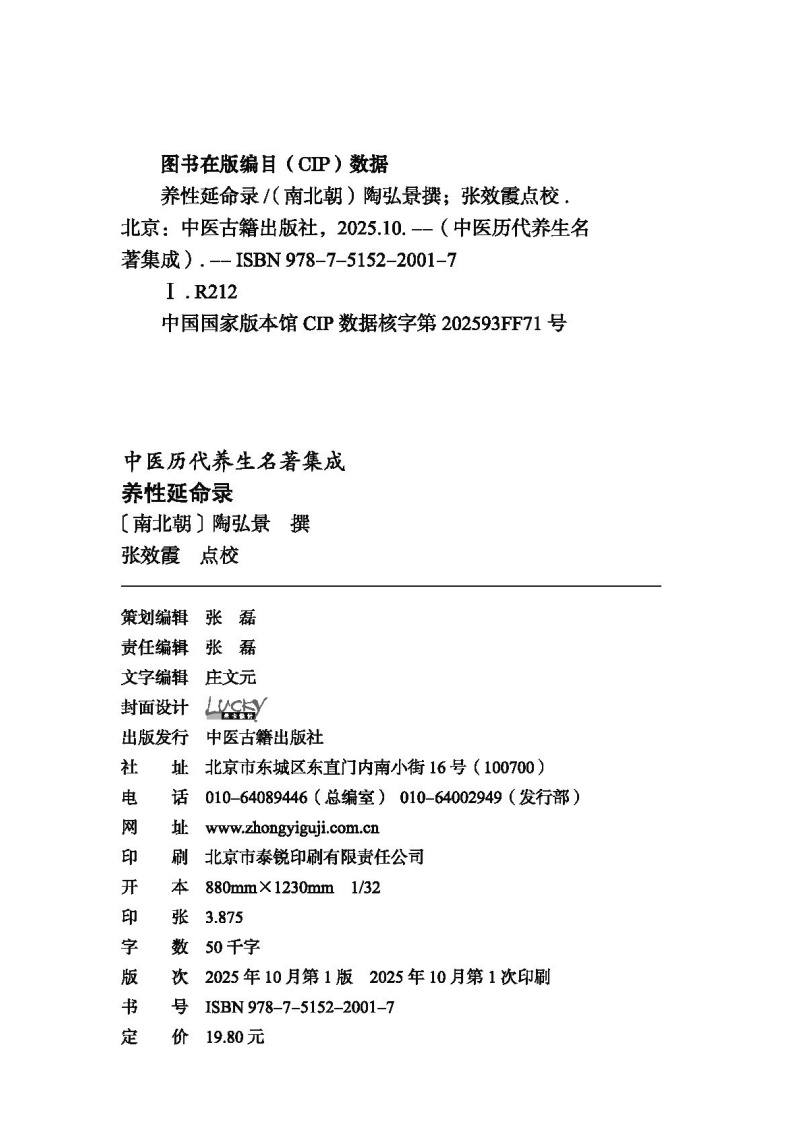 书名:养性延命录 中医历代养生名著集成