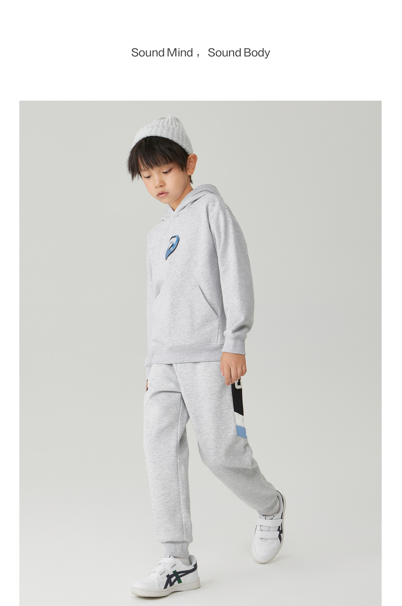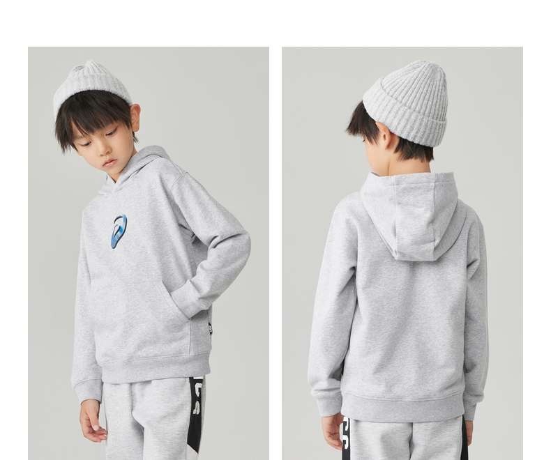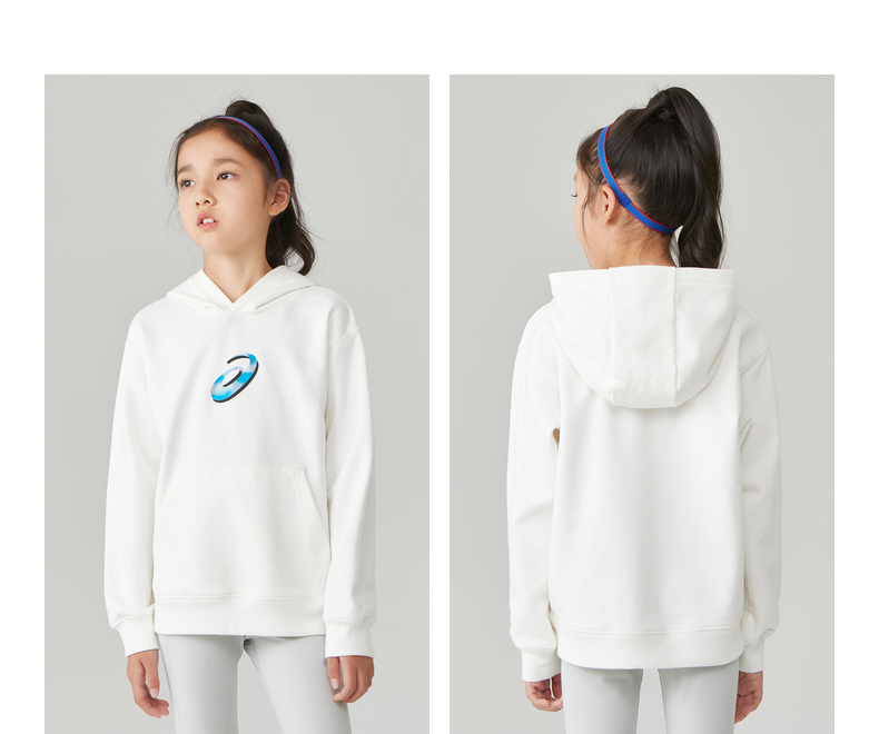 ASICS/亚瑟士童装2023年秋季款男女儿童运动休闲连帽长袖卫衣T恤