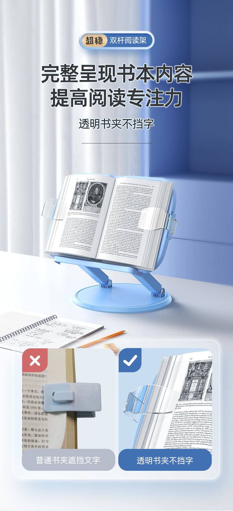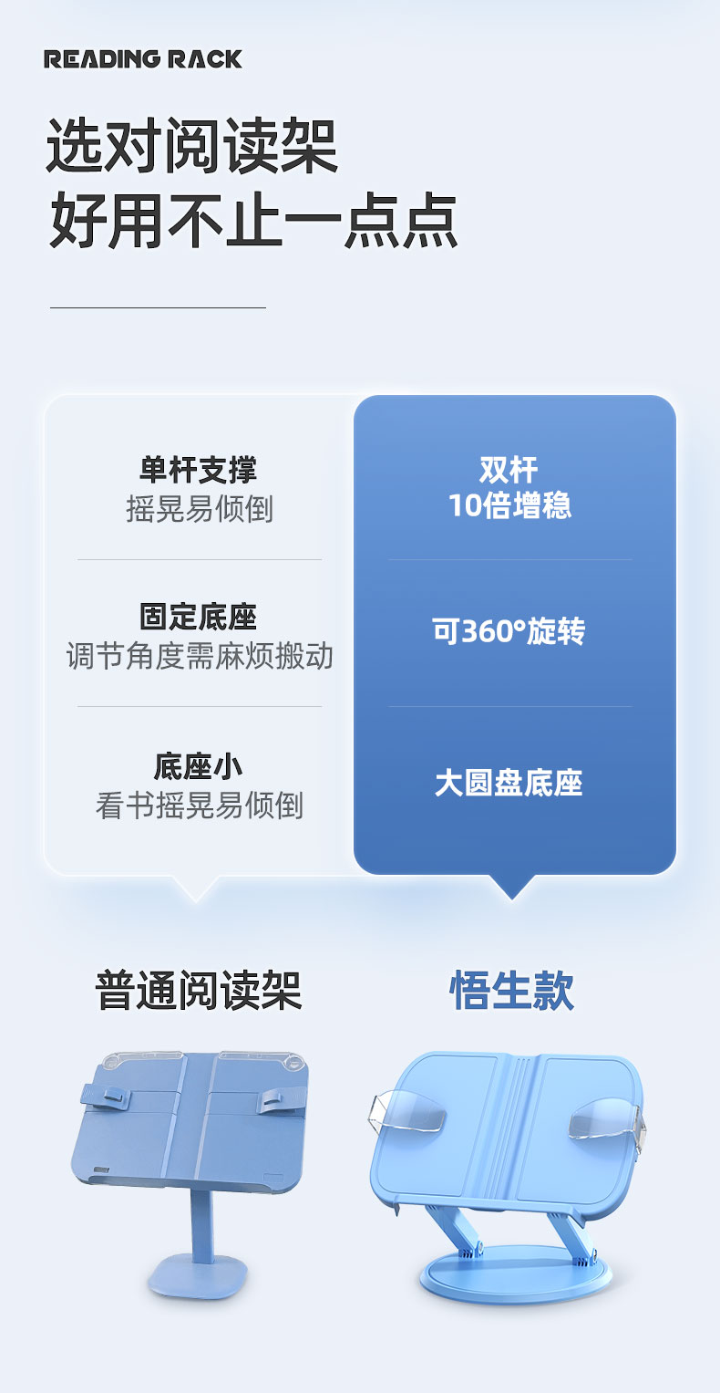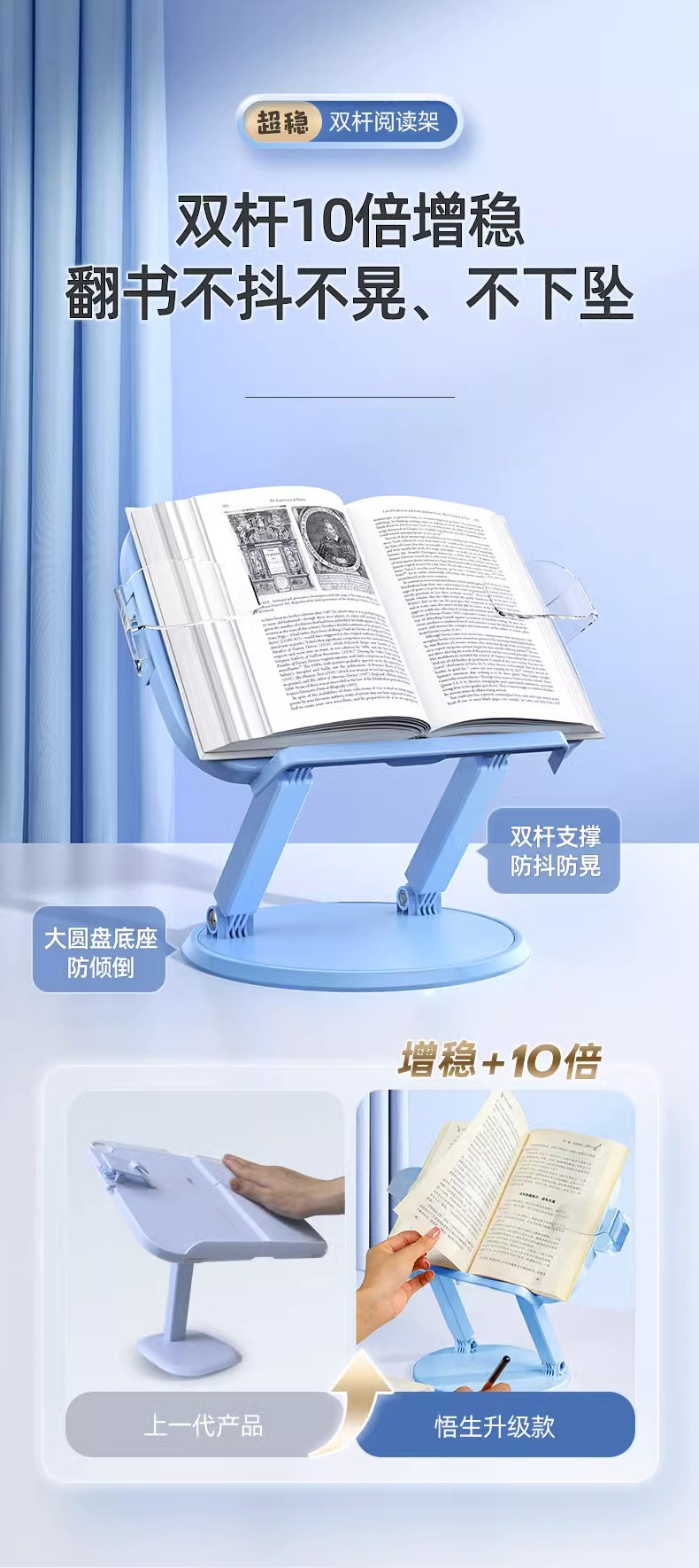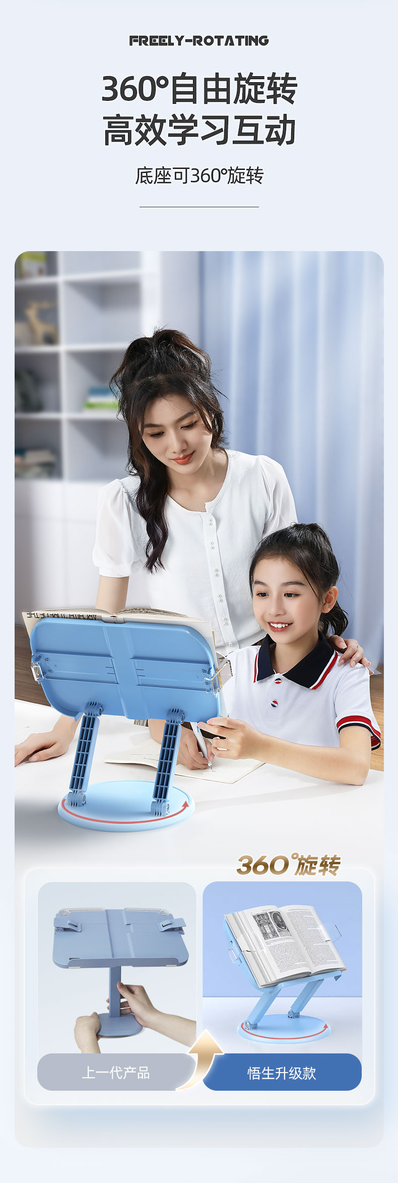 悟生可旋转双杆阅读架儿童多功能读书架看书支架桌面放书神器书夹固定器书本可升降防倾倒平板