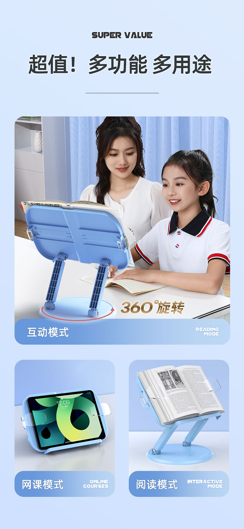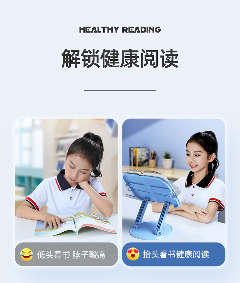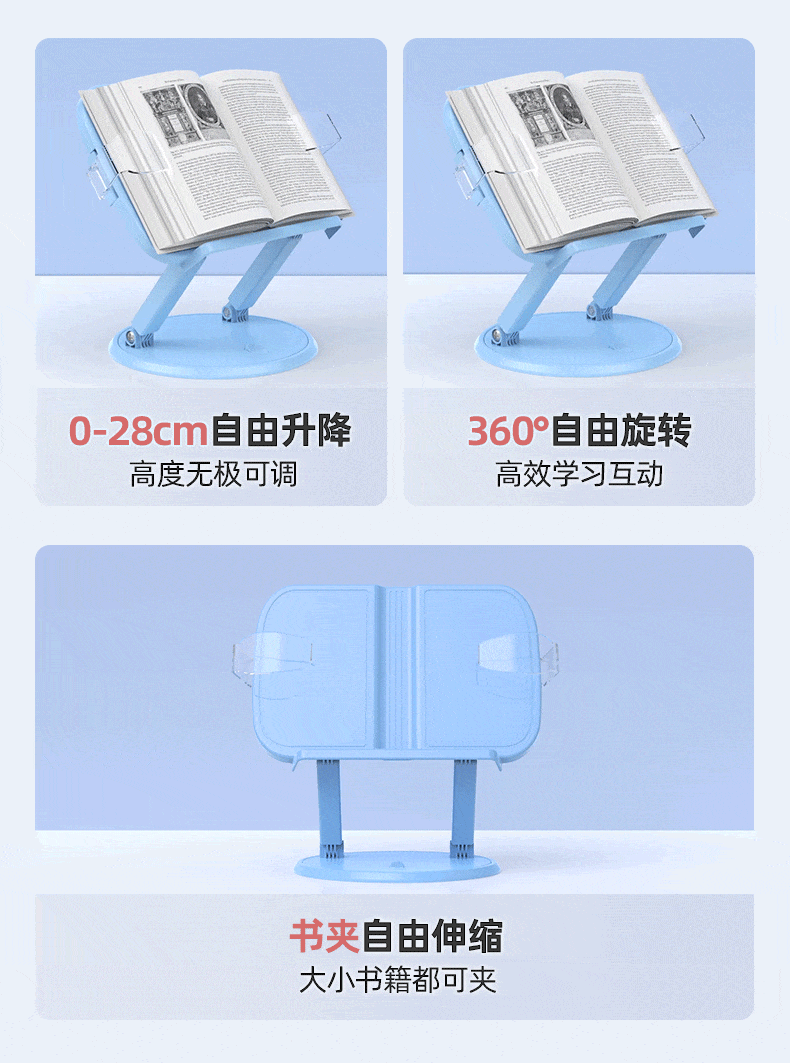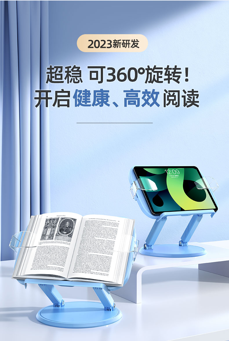 悟生可旋转双杆阅读架儿童多功能读书架看书支架桌面放书神器书夹固定器书本可升降防倾倒平板
