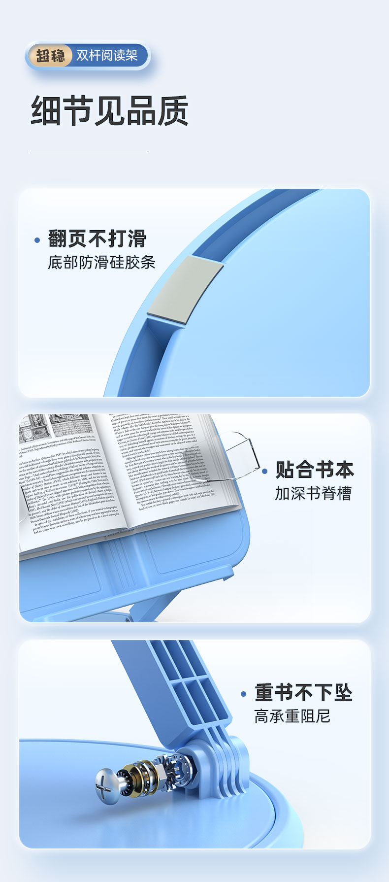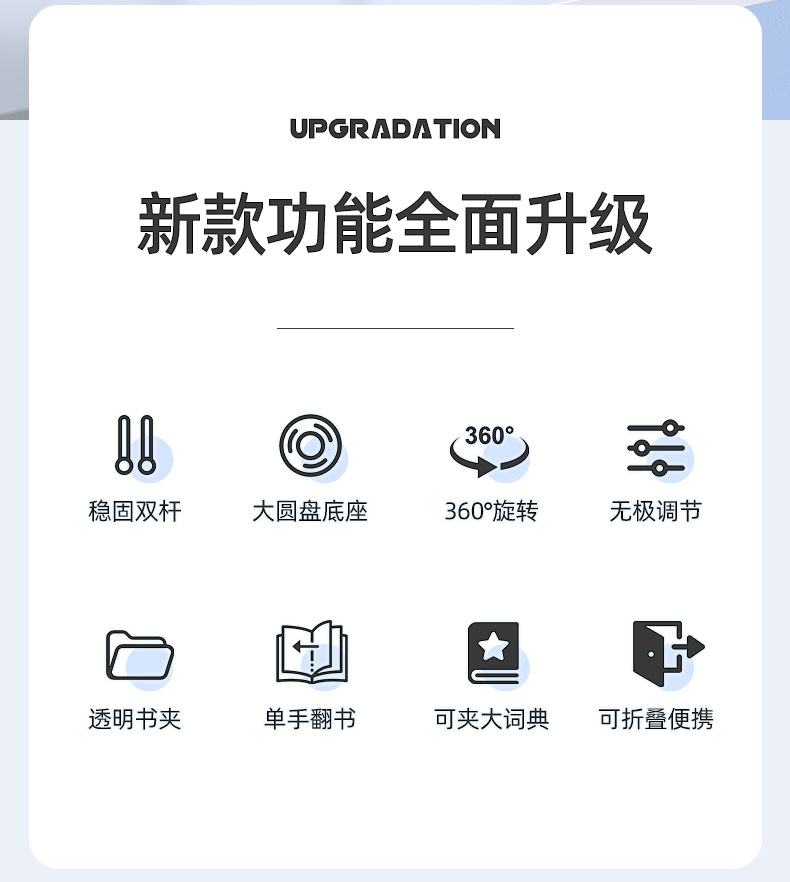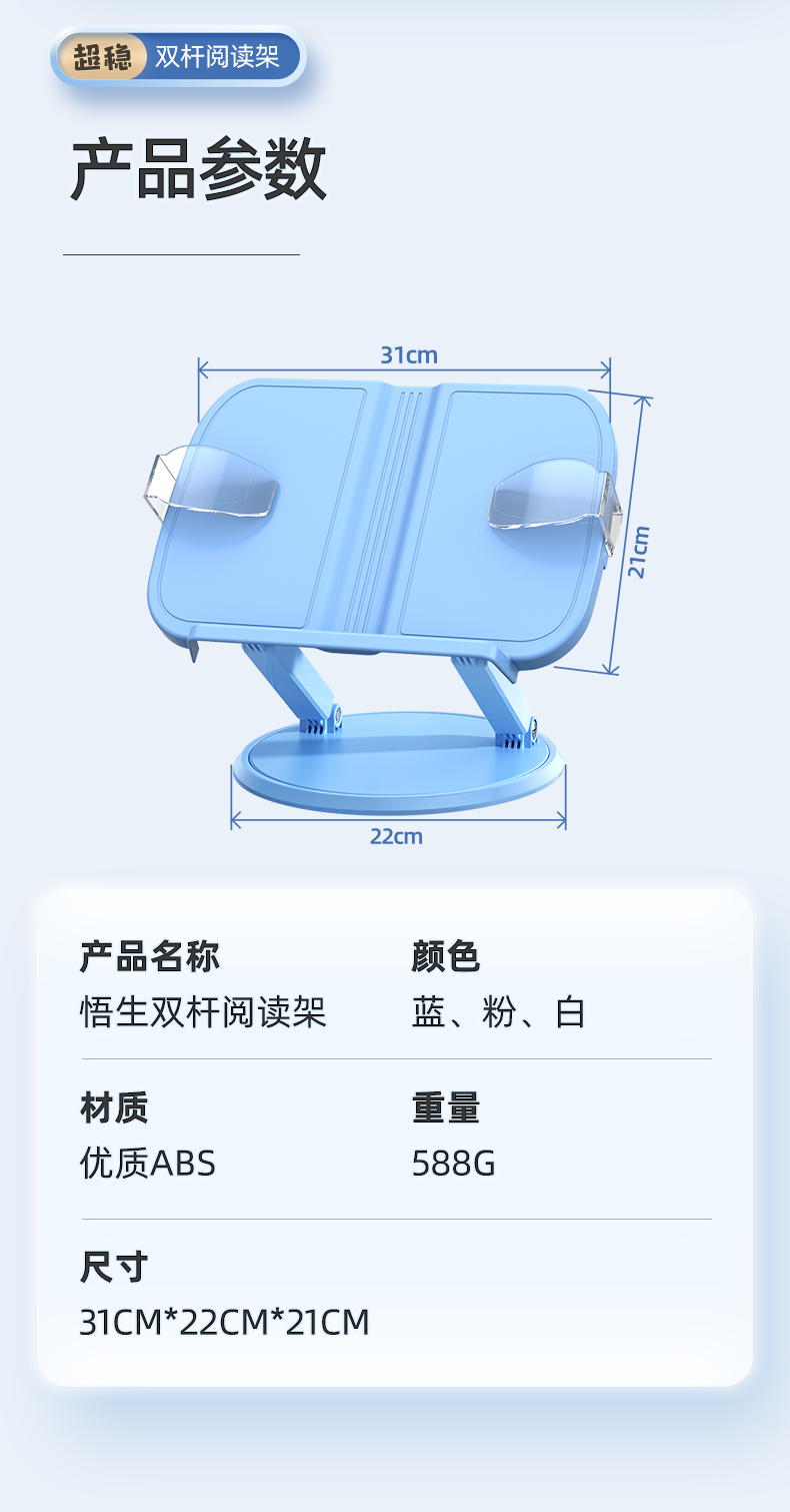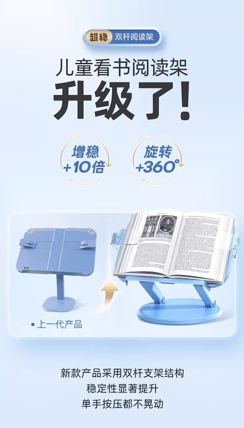 悟生可旋转双杆阅读架儿童多功能读书架看书支架桌面放书神器书夹固定器书本可升降防倾倒平板