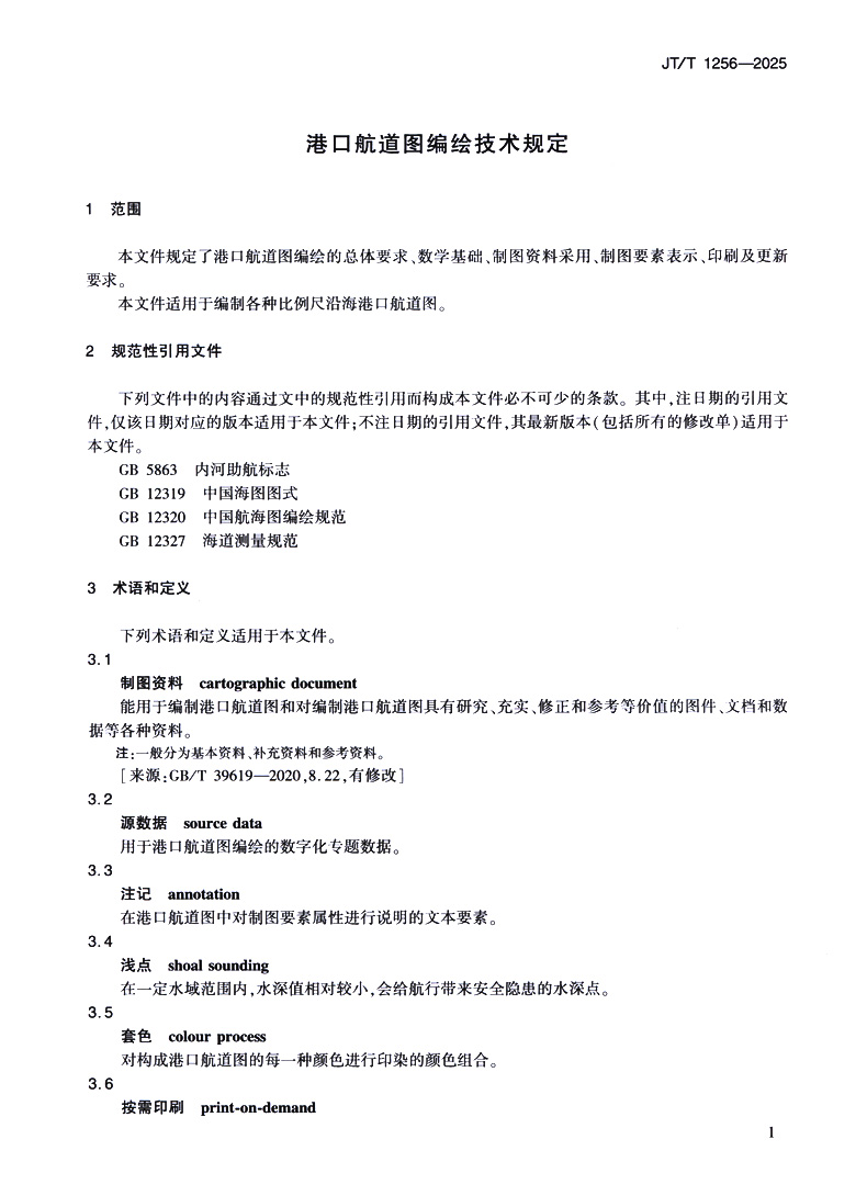 书名:港口航道图编绘技术规定(JT/T 1256—2025)