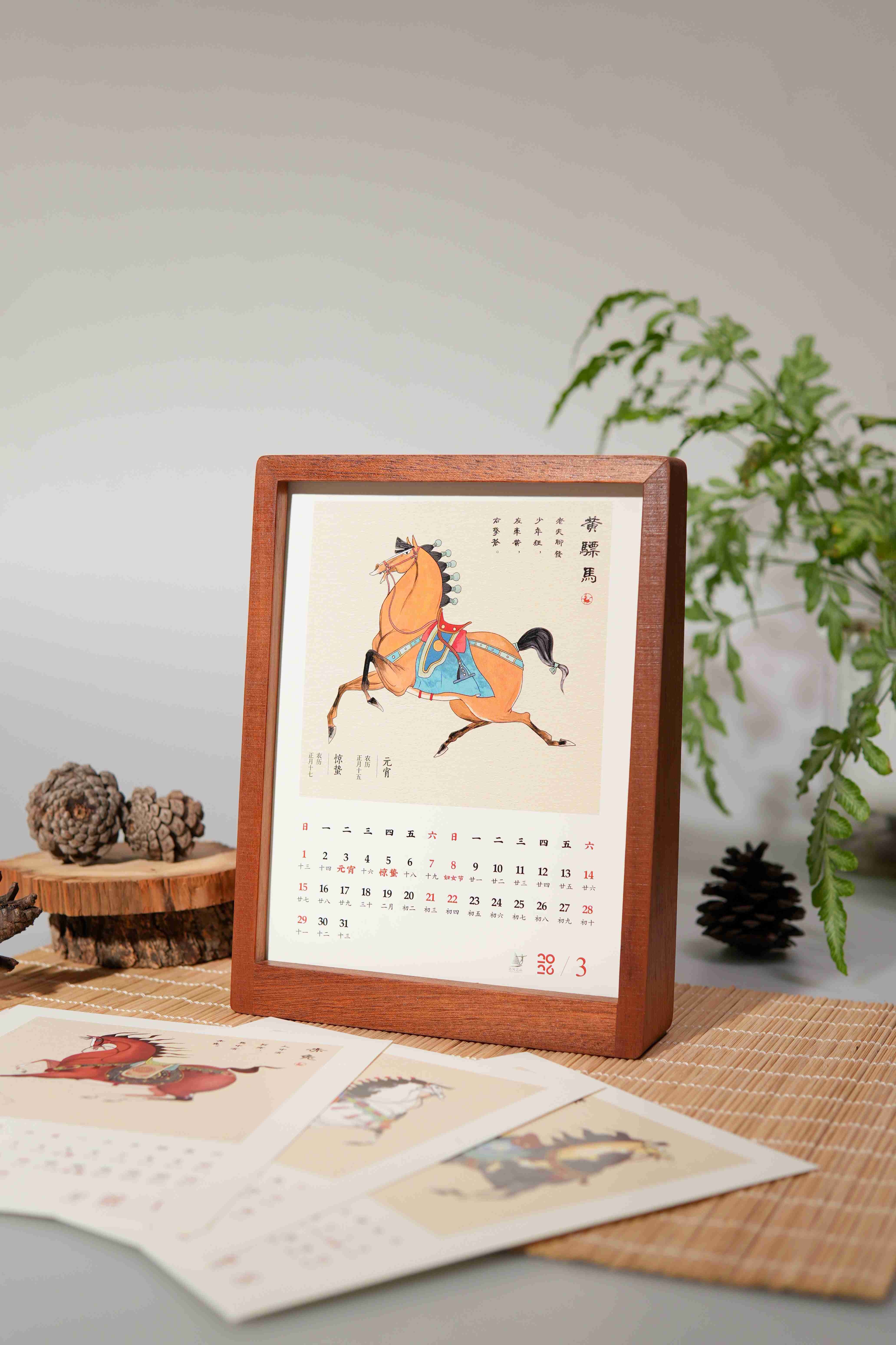 2026马年文创台历,以水墨手绘重新诠释古代战马。