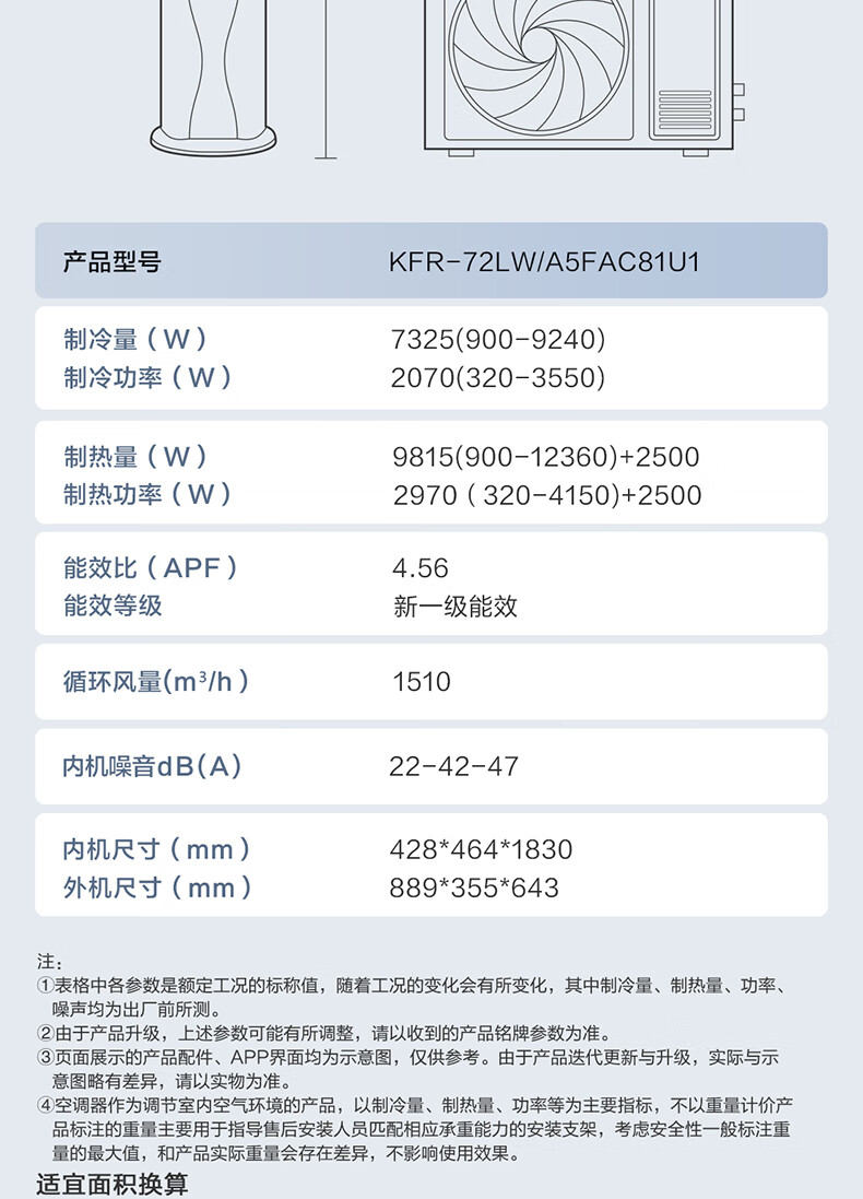 海尔空调 云馨3P客厅 1级节能 KFR-72LW/A5FAC81U1 智能操控