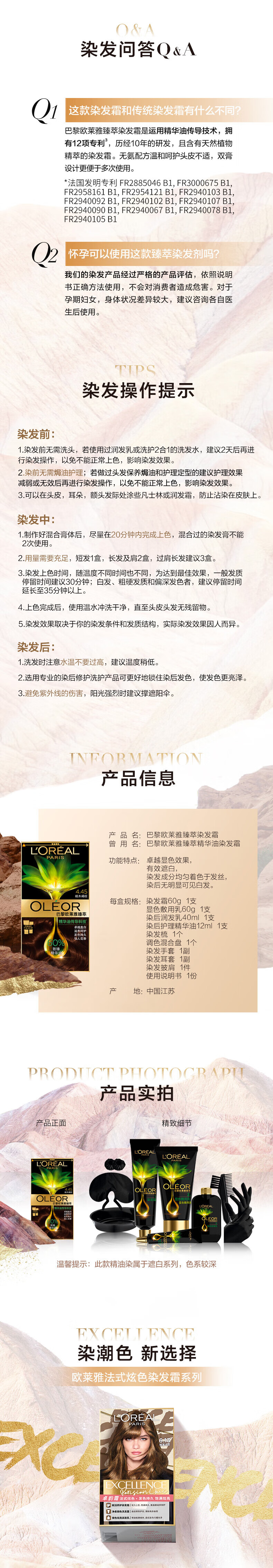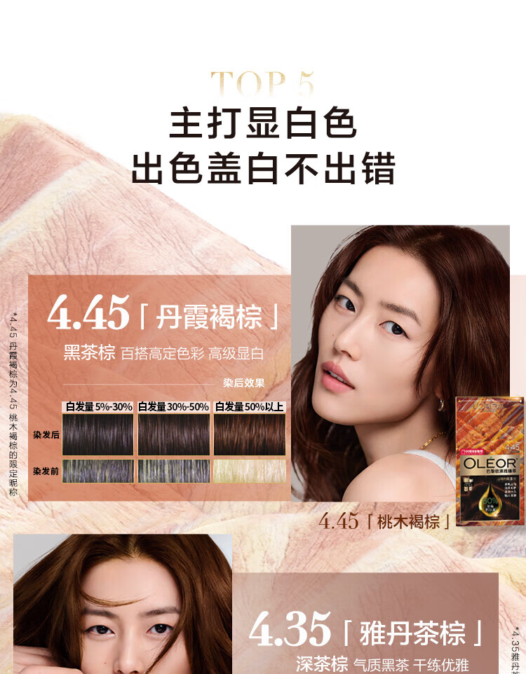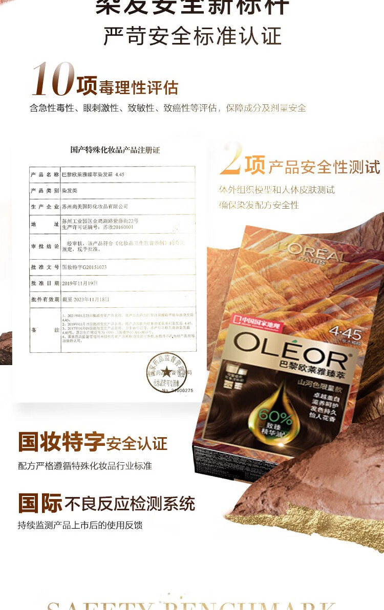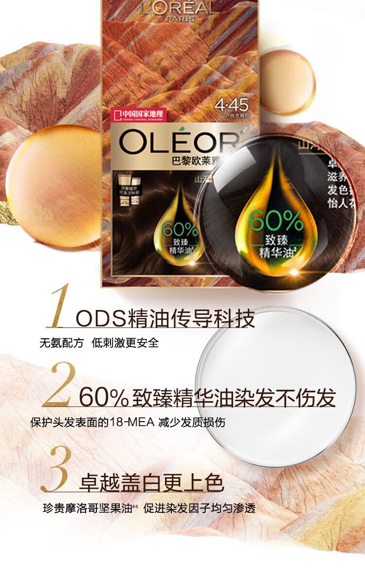 巴黎欧莱雅臻萃精华油染发霜 4.45#桃木褐棕