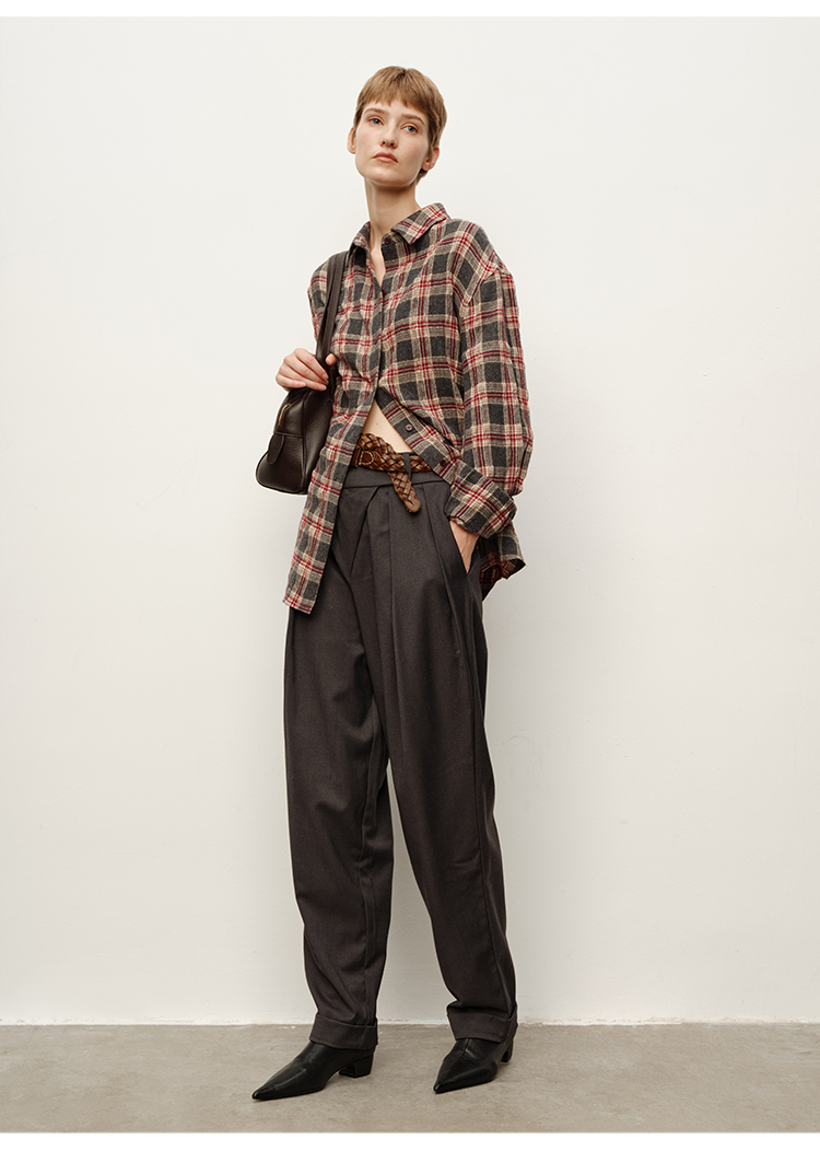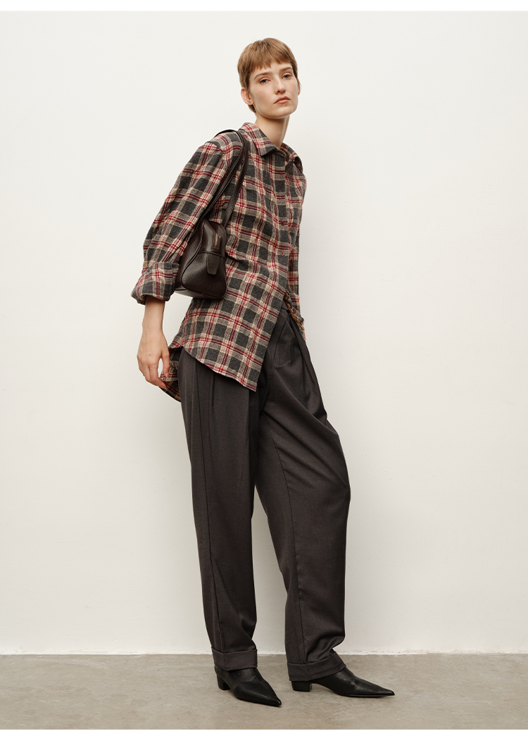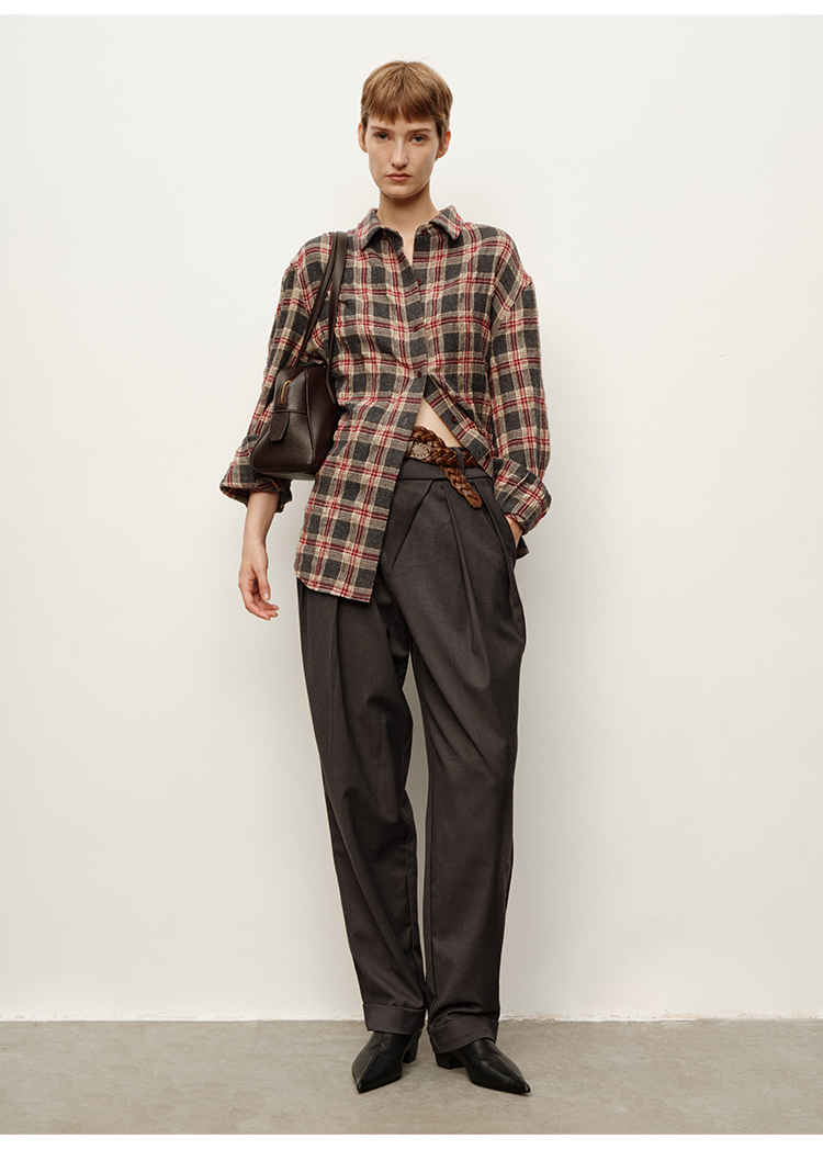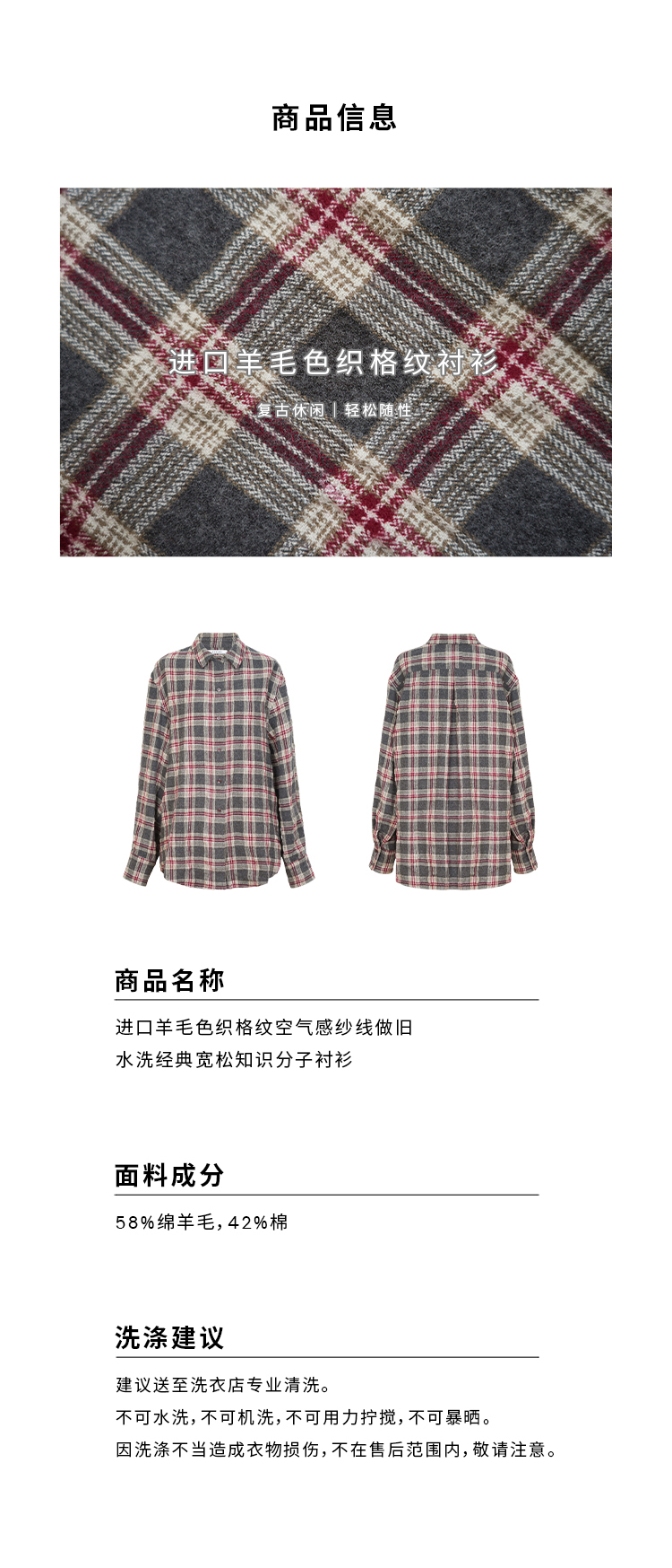 HIDEMI 进口羊毛色织格纹空气感纱线做旧水洗经典宽松知识分子衬衫