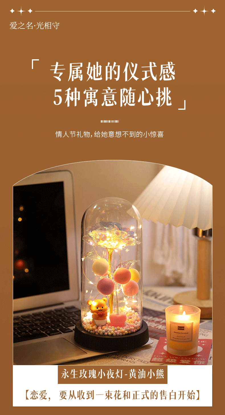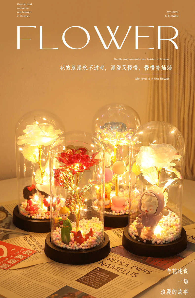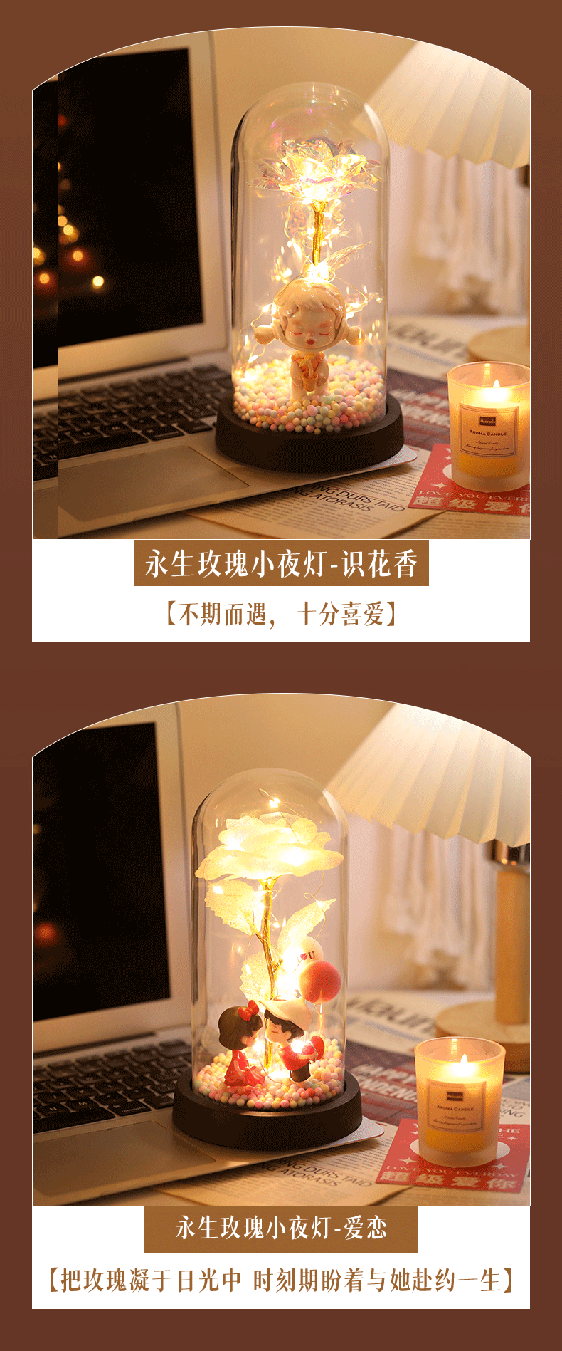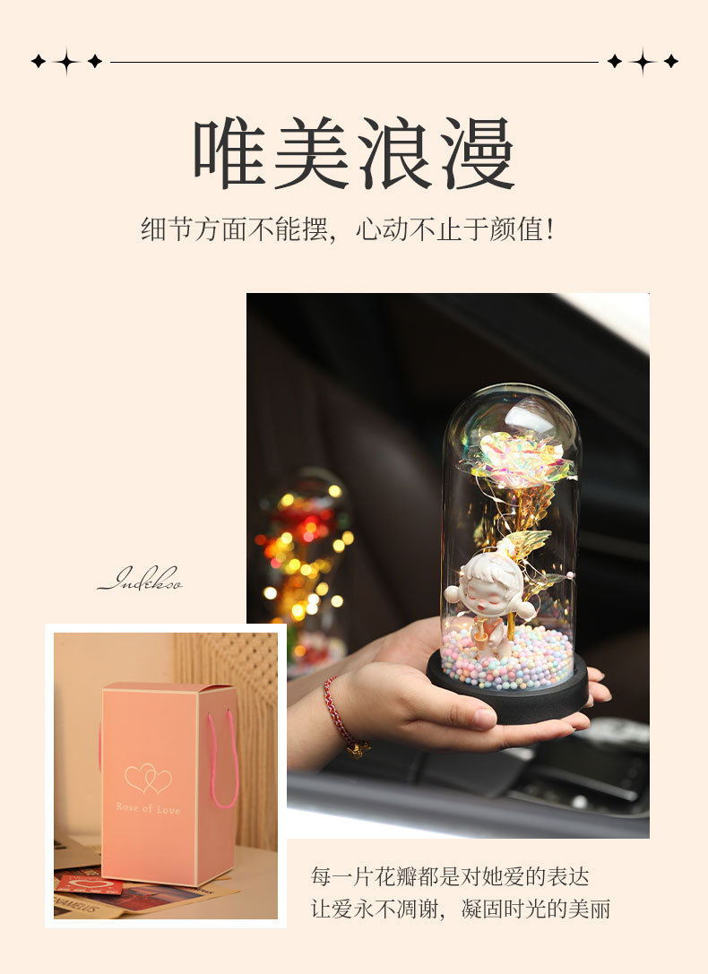 情人节优选!【花永生,爱永恒~】七夕情人节礼物 送女朋友生日礼物 实用玻璃罩摆件 高级感母亲节礼物 教师节礼物-QB