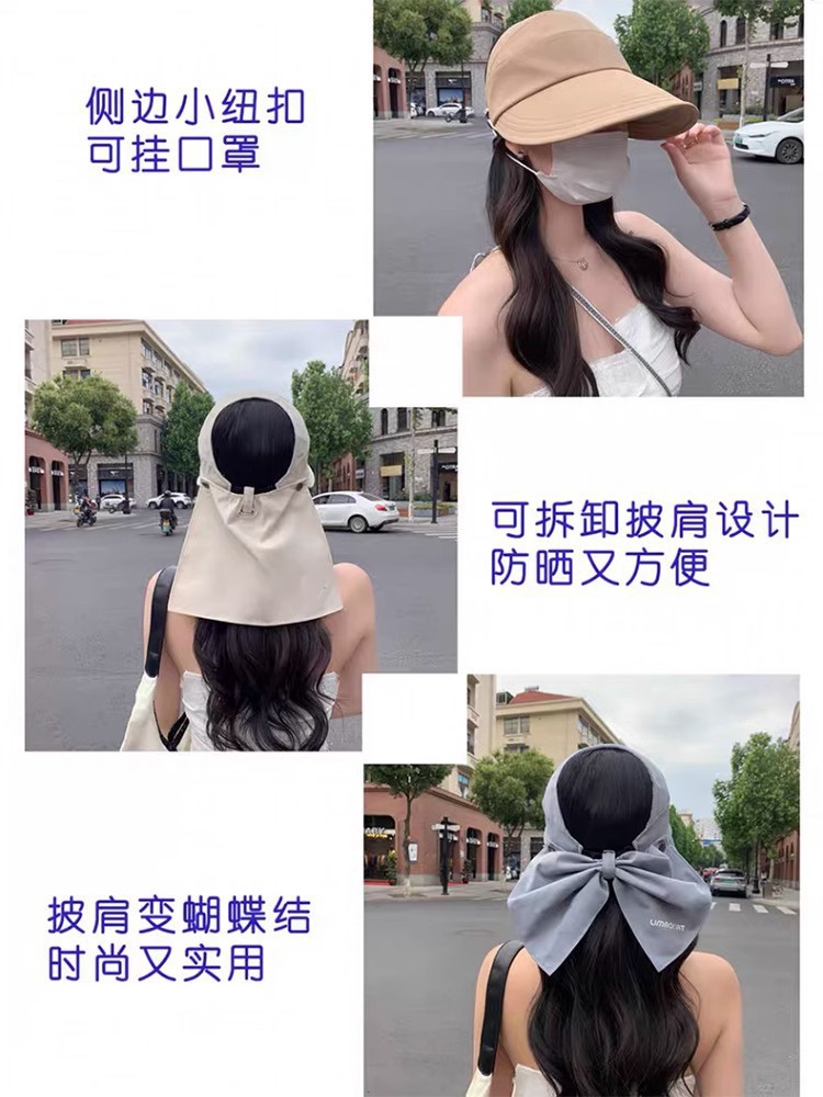拍一发三【可挂口罩❗披肩变蝴蝶结】空顶速干防晒帽女遮阳帽赵露思新款渔夫帽太阳显脸小可挂口罩。rh