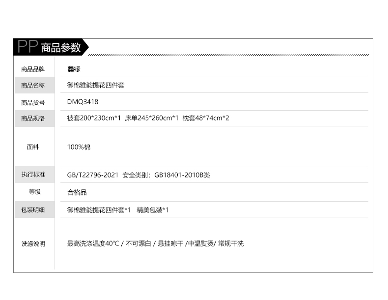 鑫缘 御棉雅韵提花四件套 DMQ3418-20