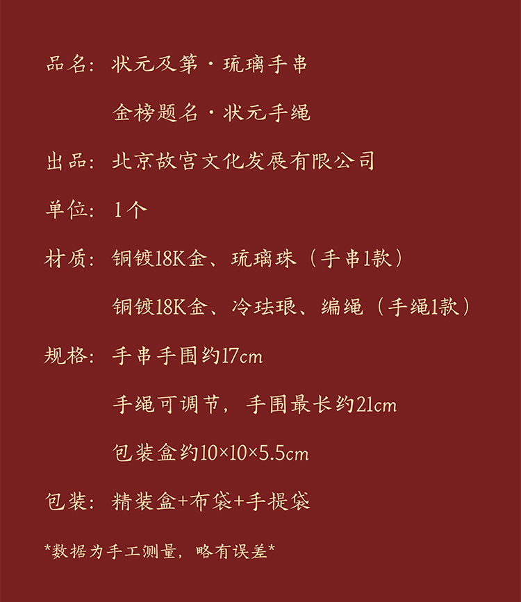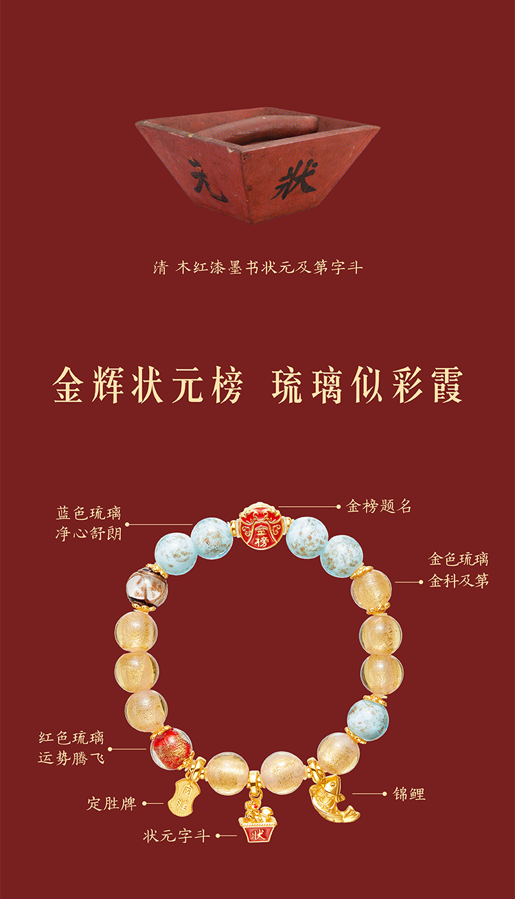 【故宫饰品】金榜题名状元及第手链琉璃手串文创毕业中考高考礼物