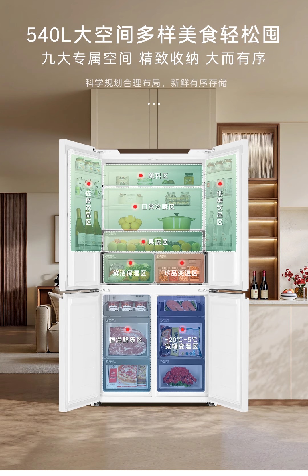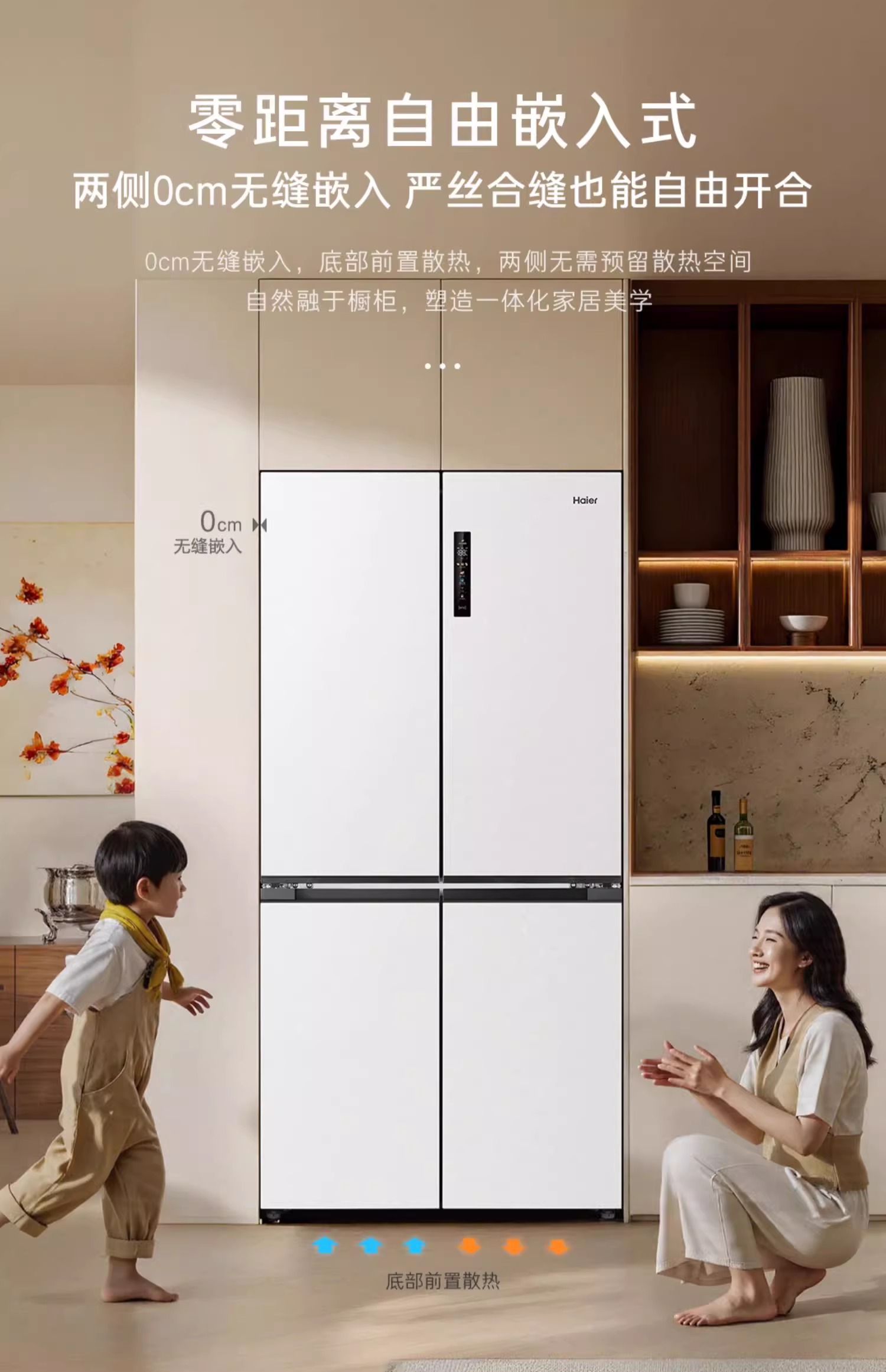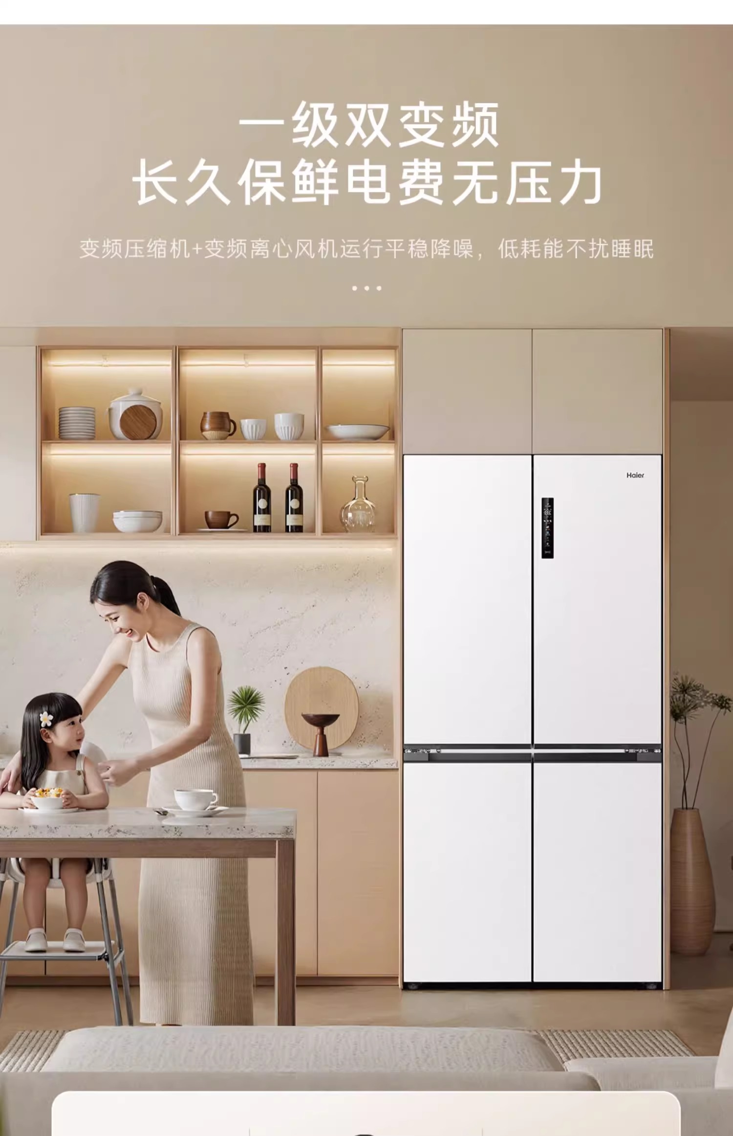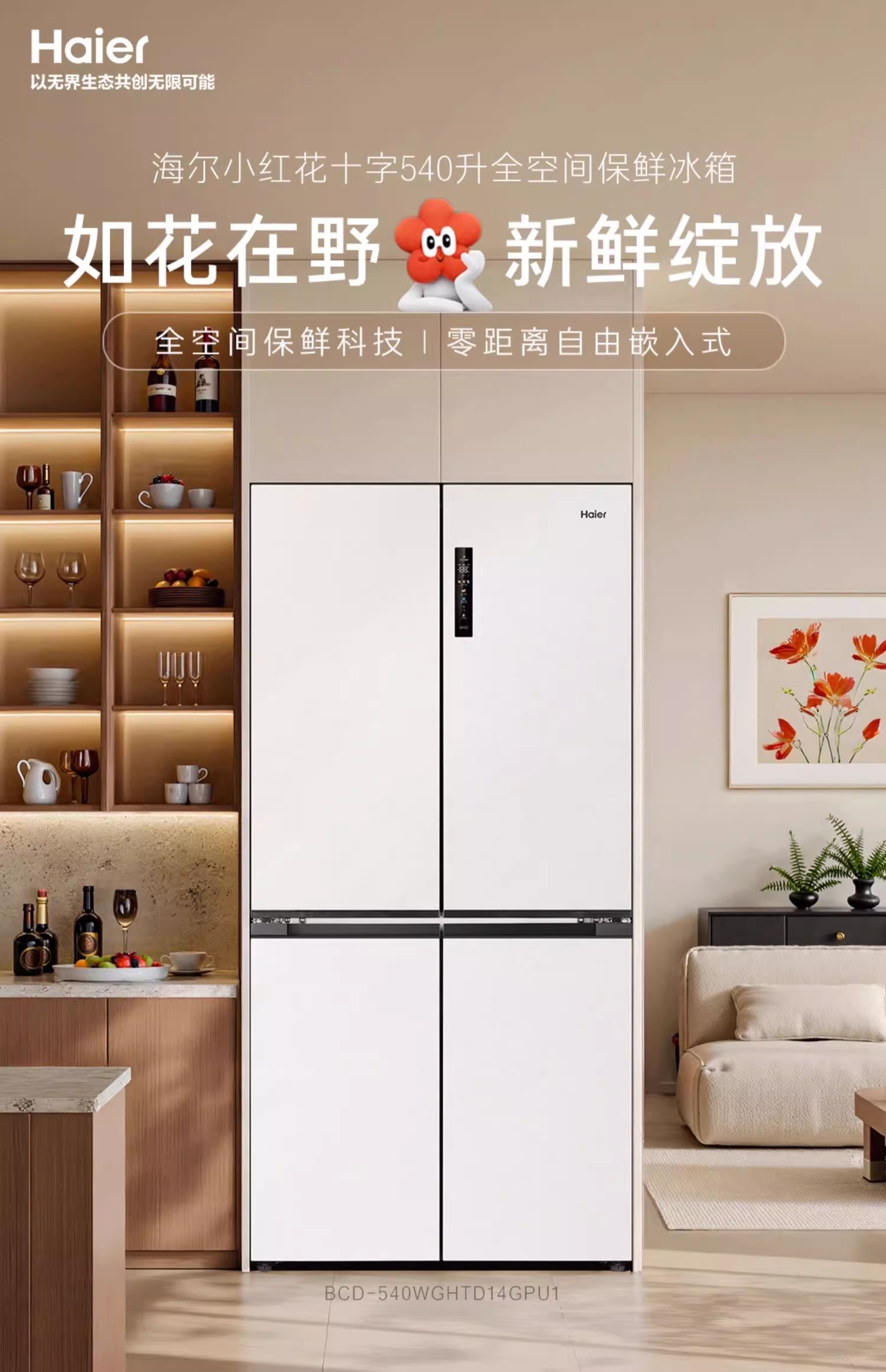 海尔小红花540L双开四门一级零嵌入式家用超薄电冰箱新品BCD-540WGHTD14GPU1
