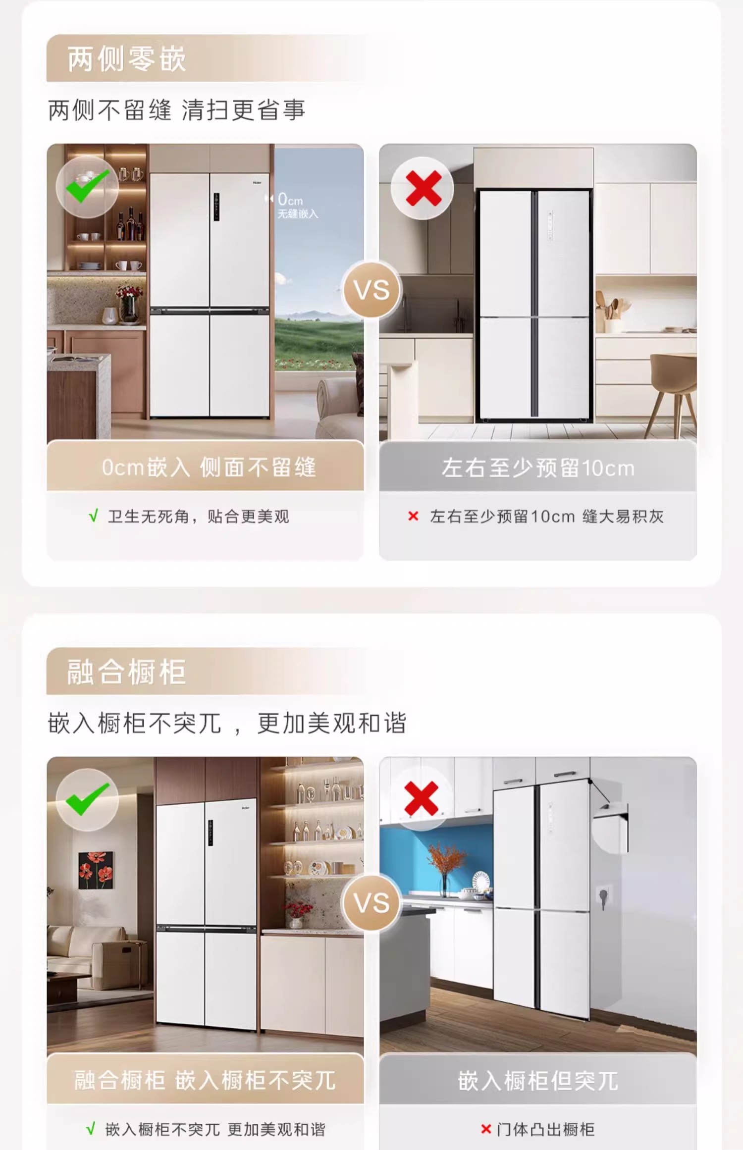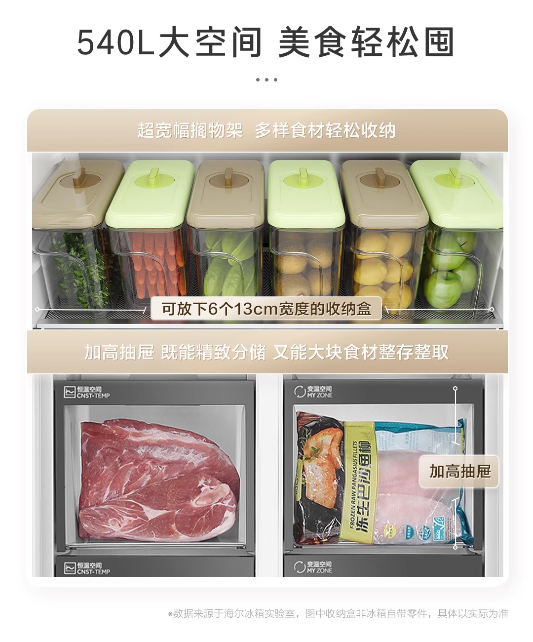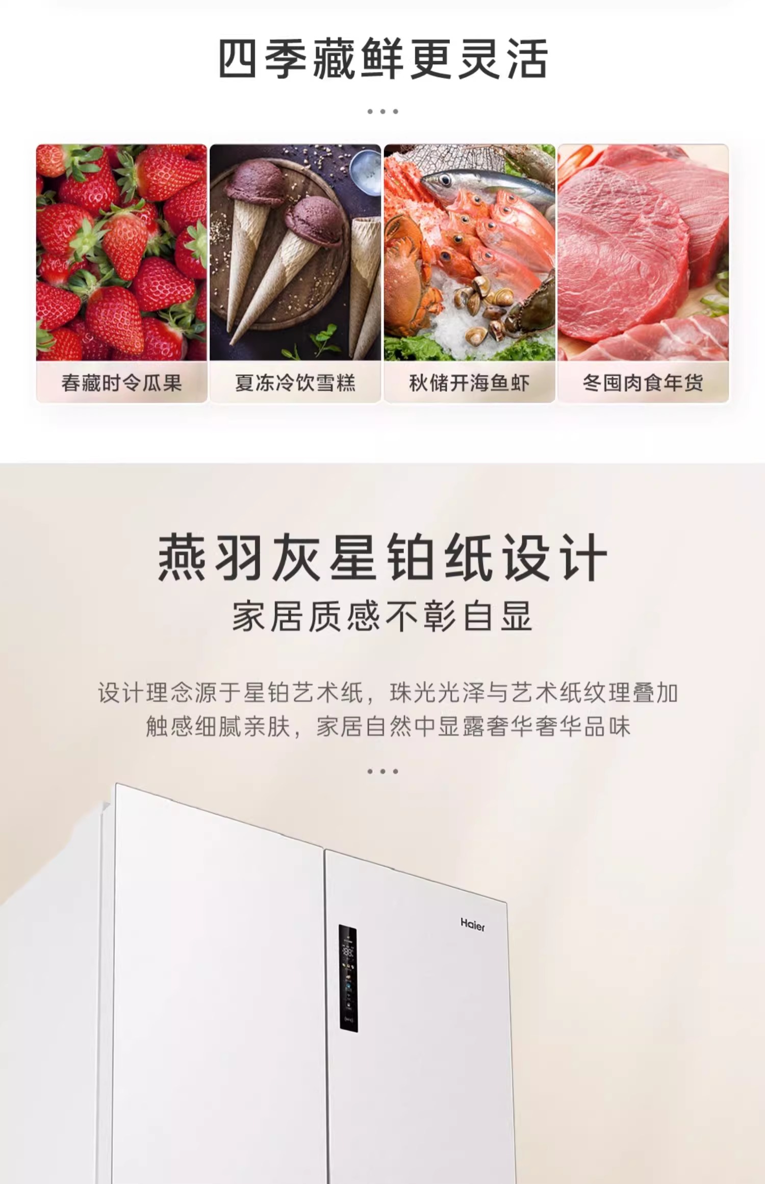 海尔小红花540L双开四门一级零嵌入式家用超薄电冰箱新品BCD-540WGHTD14GPU1