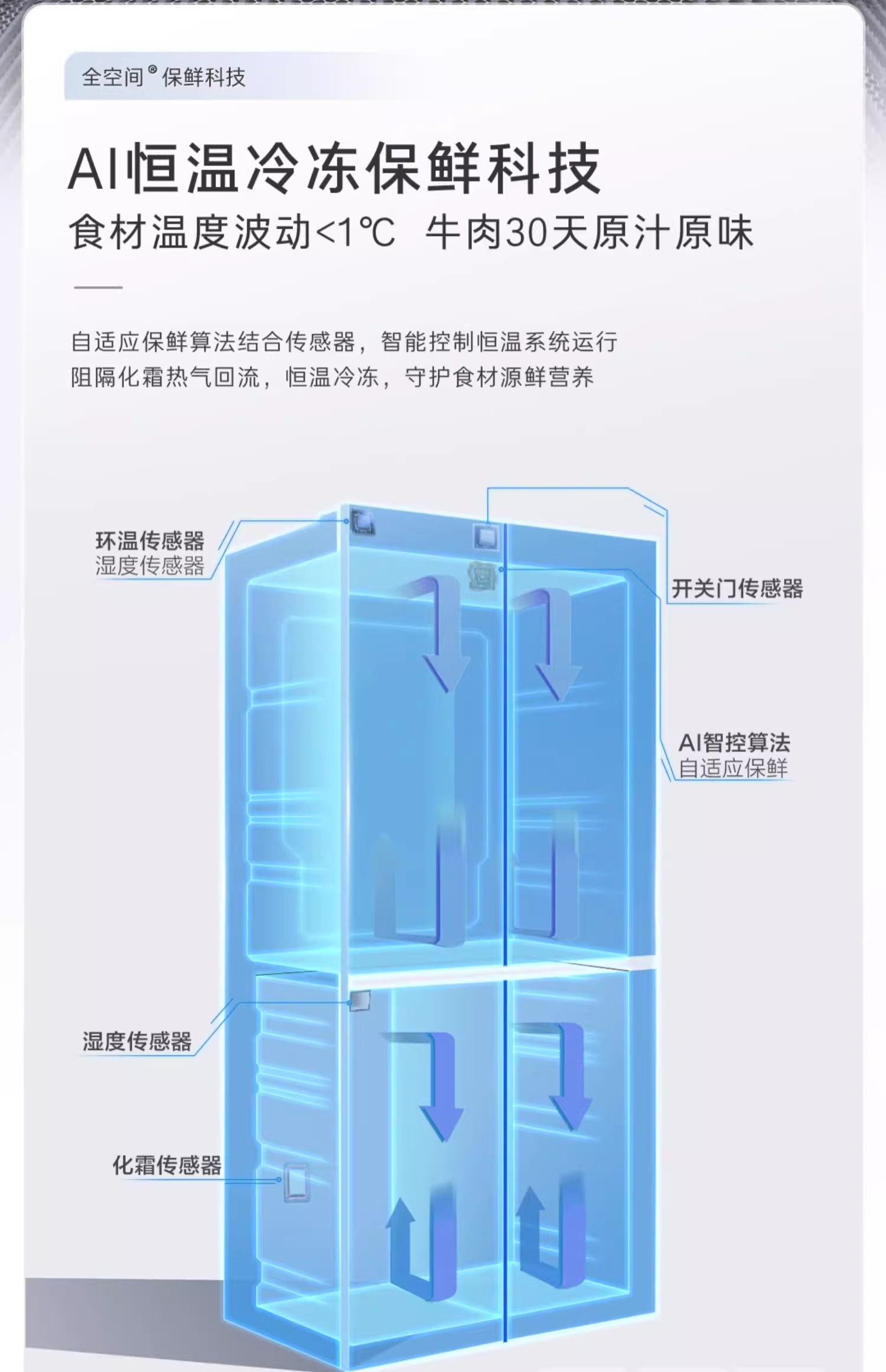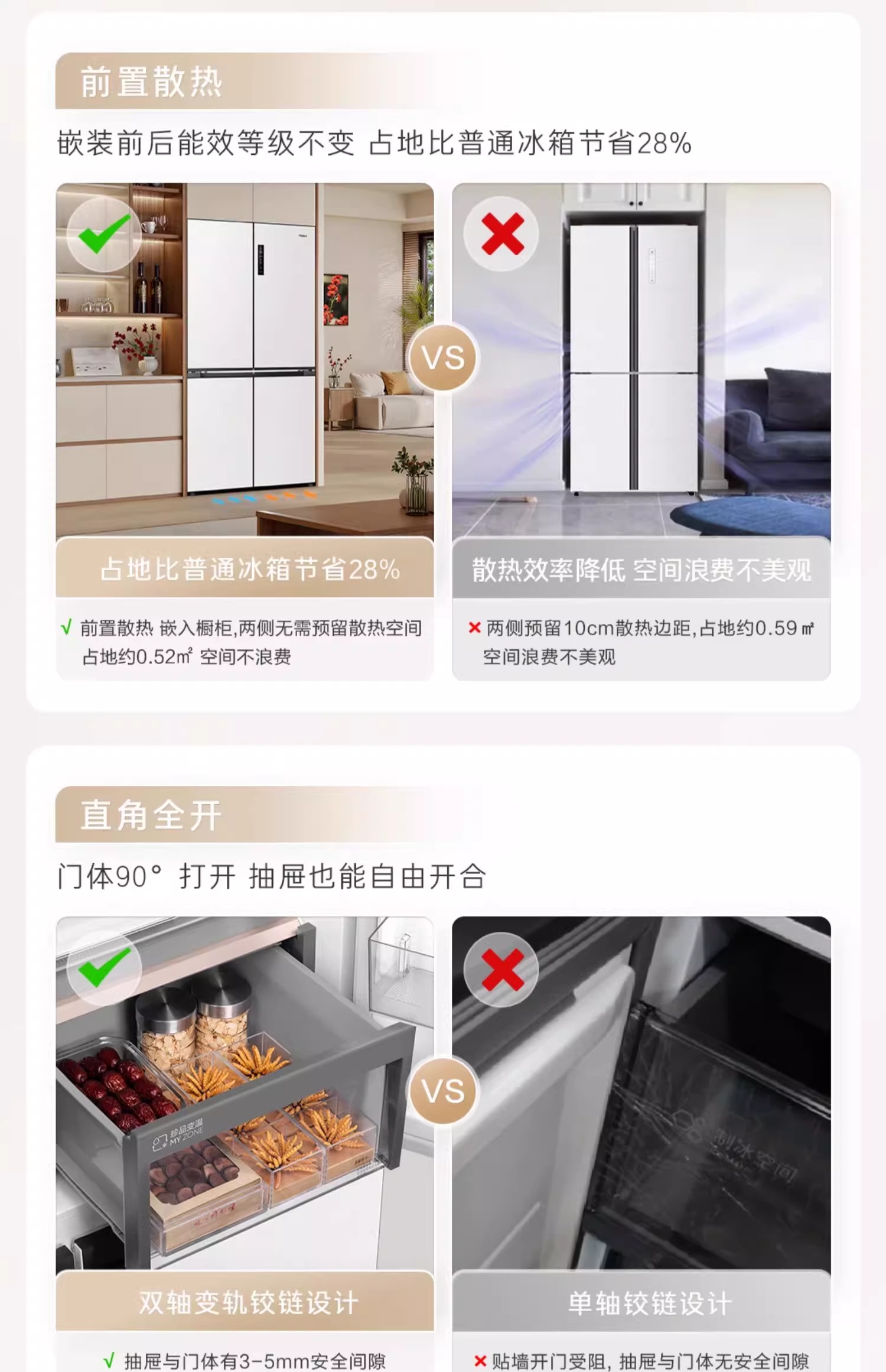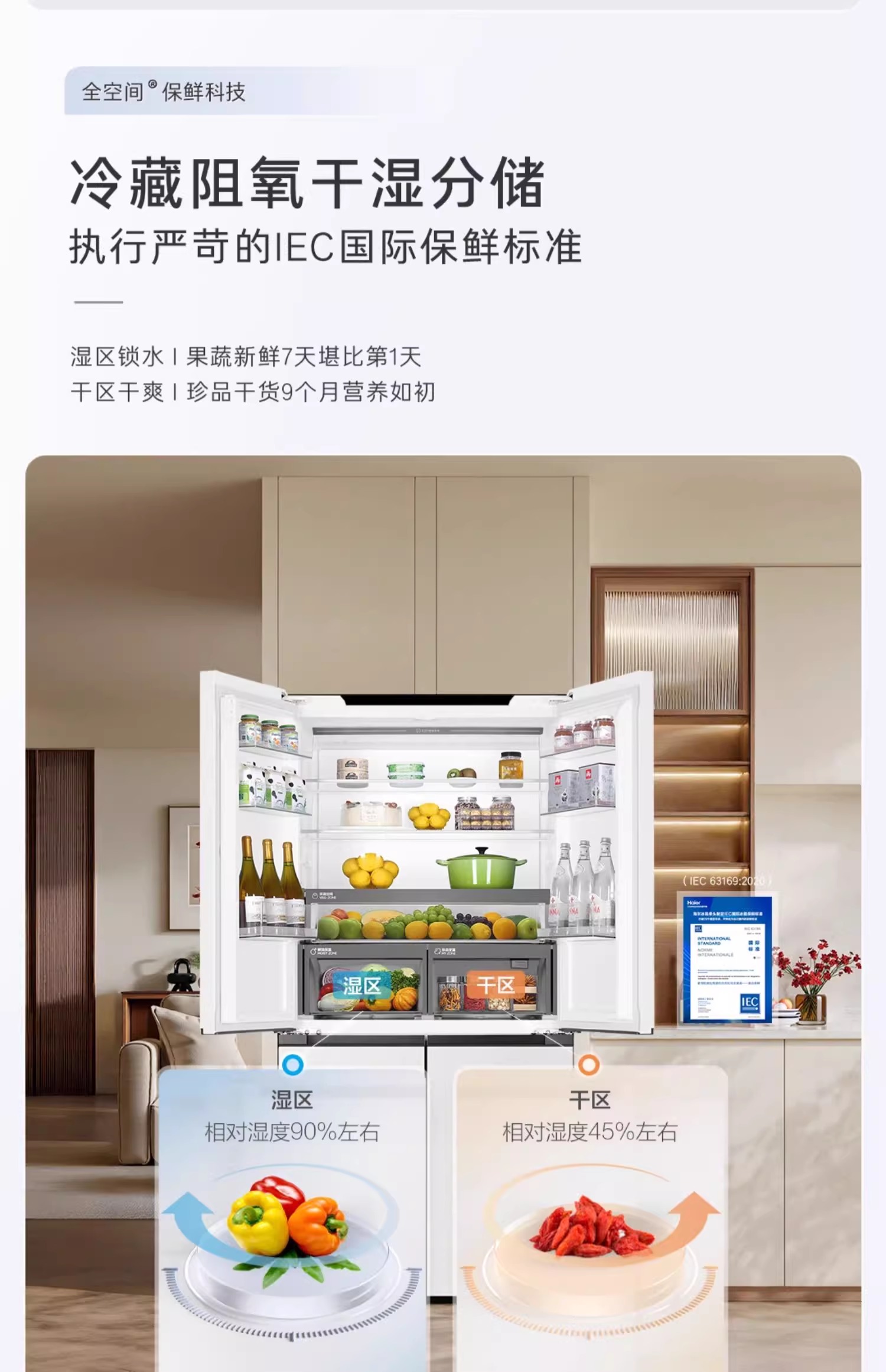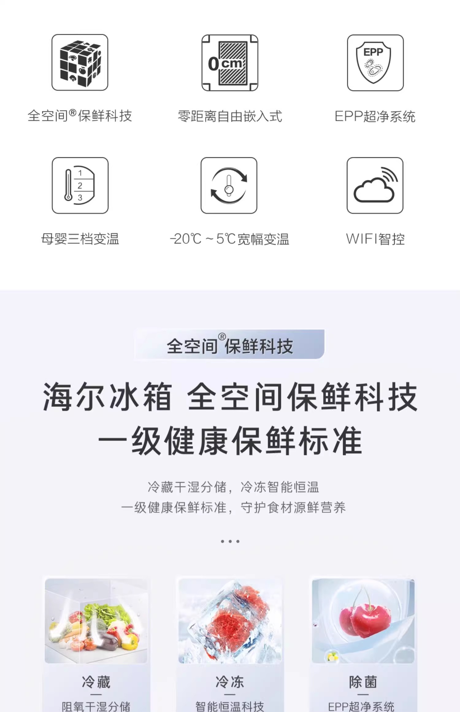 海尔小红花540L双开四门一级零嵌入式家用超薄电冰箱新品BCD-540WGHTD14GPU1