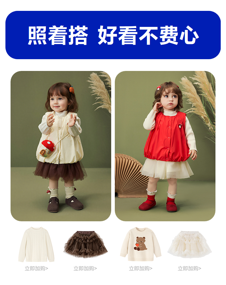 【真心绒】迷你巴拉女童三防羽绒马甲宝宝拒水绒背心2025冬新款