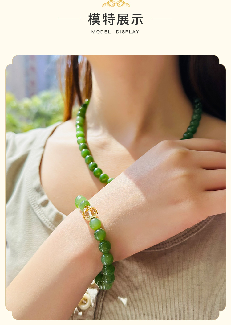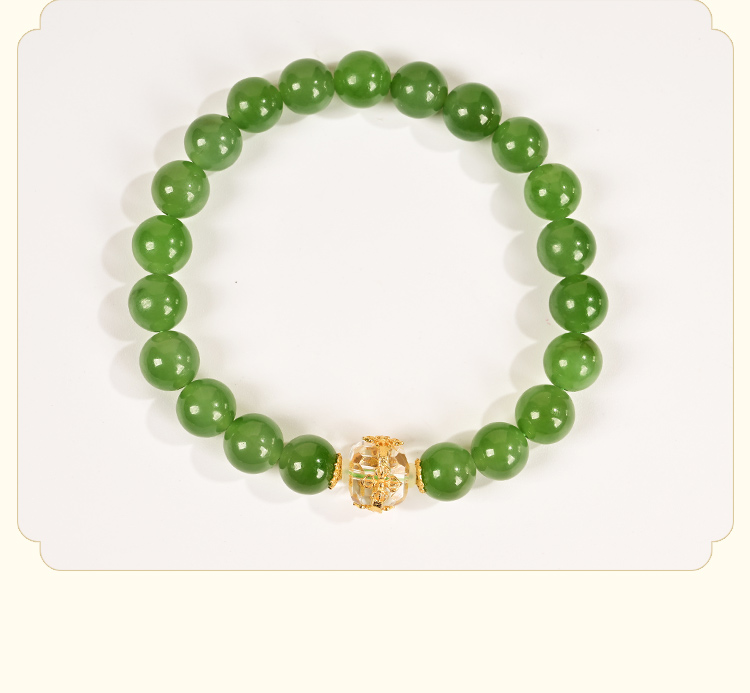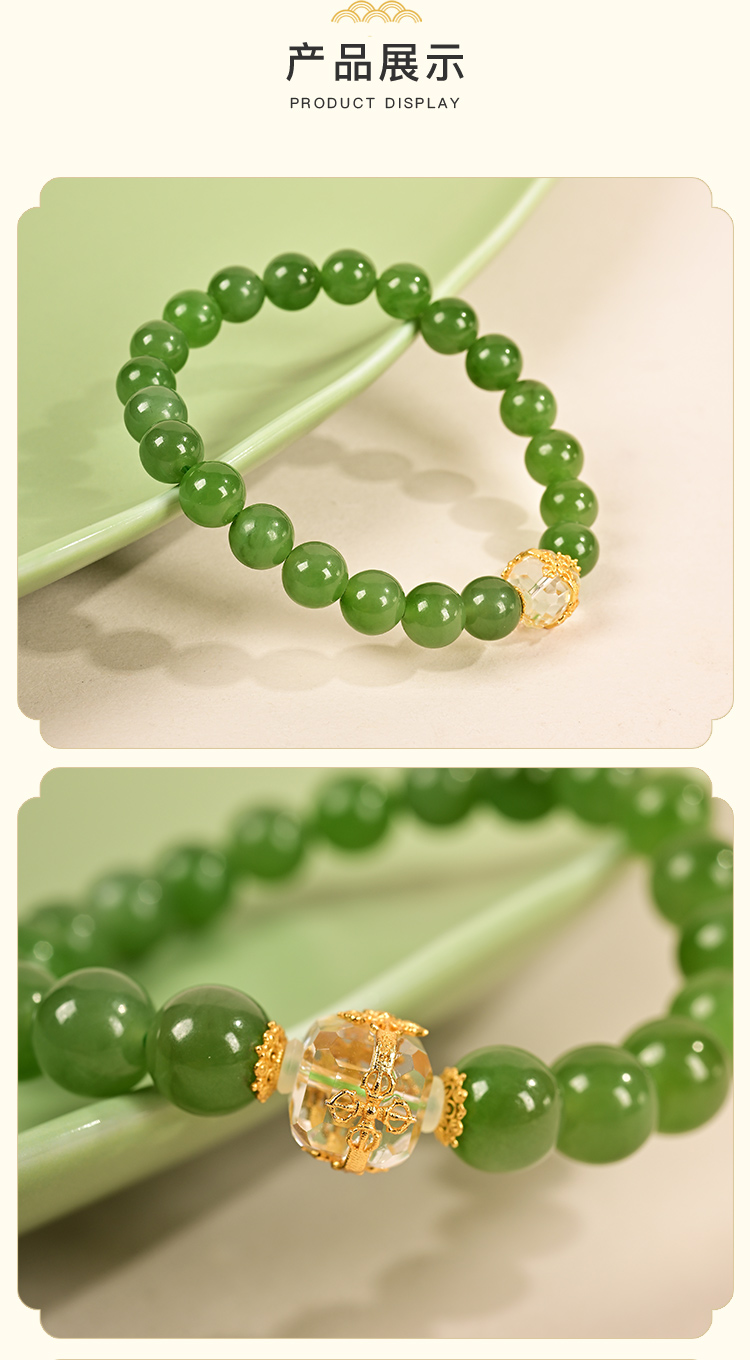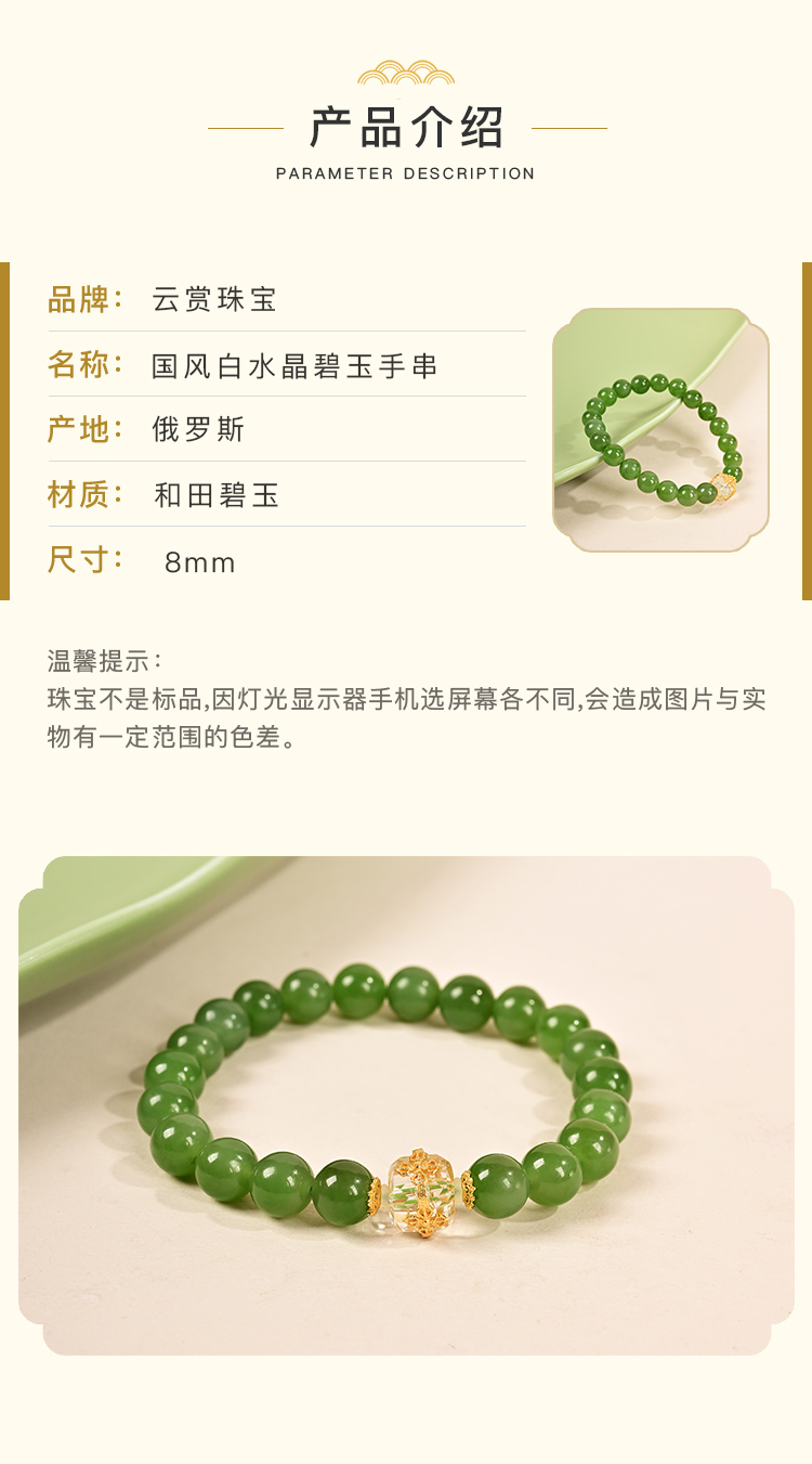 ysfg-07001【云赏珠宝】新中式系列-8mm高品质白和田碧玉镂空镶嵌白水晶手串手链