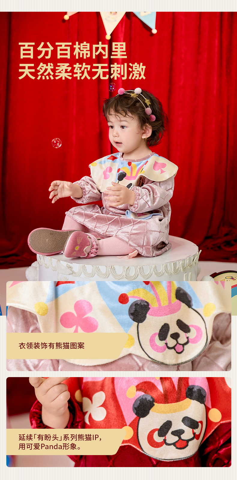 年衣童装儿童哈衣爬服冬款宝宝新年装男女童中式衣王牌盼达婴童连衣裙