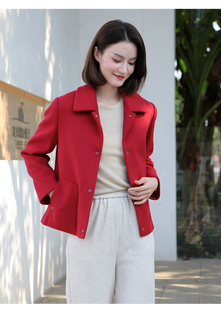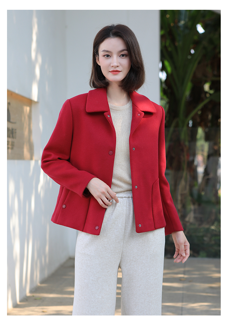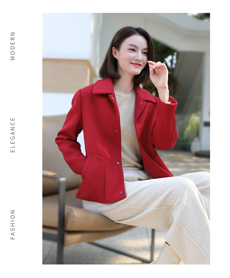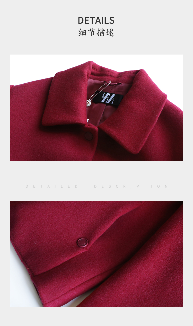 佐尔美冬季新款 经典简约短款羊毛呢大衣外套女E34ZD16