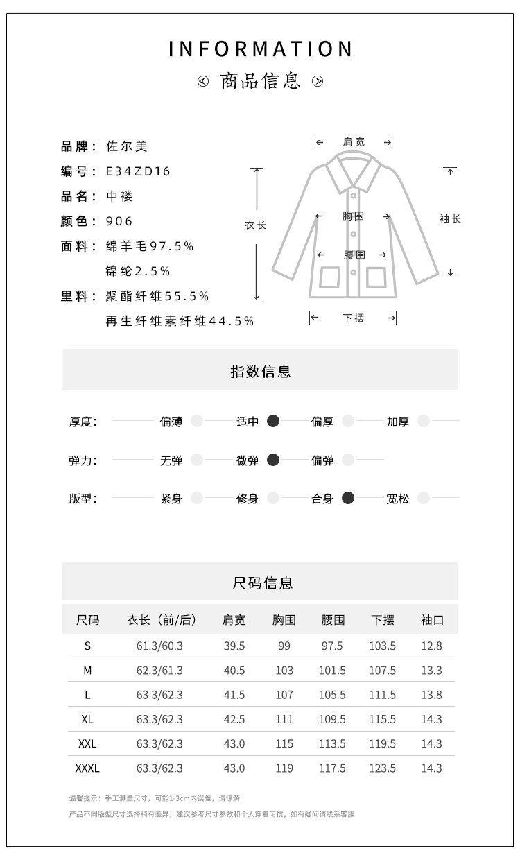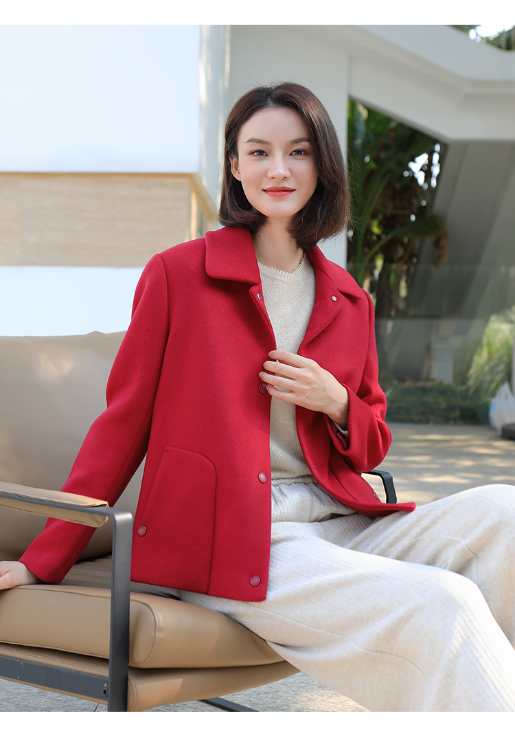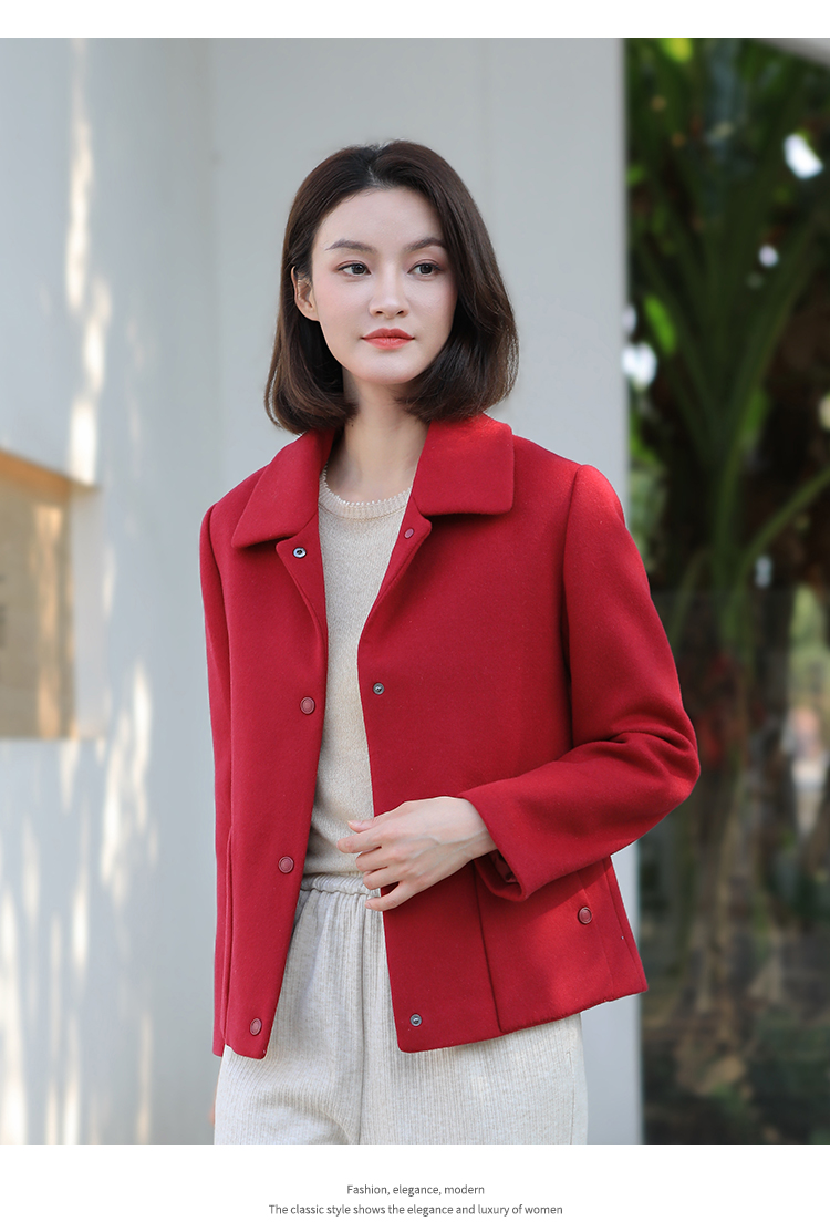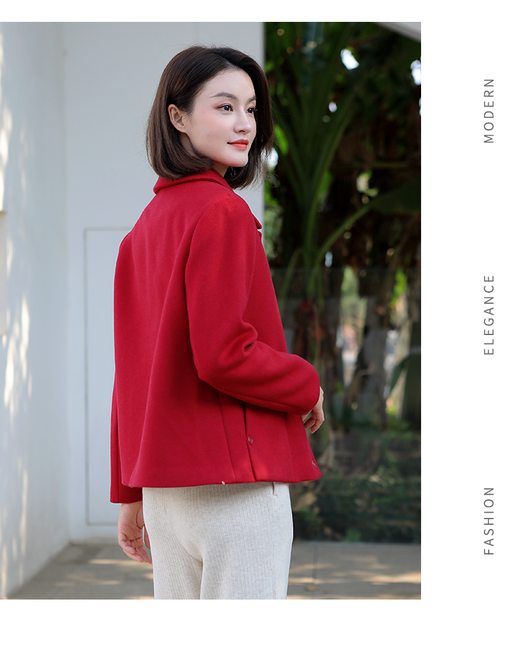 佐尔美冬季新款 经典简约短款羊毛呢大衣外套女E34ZD16