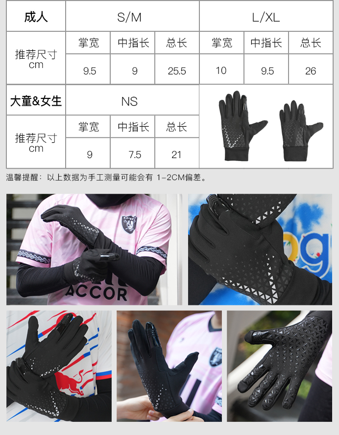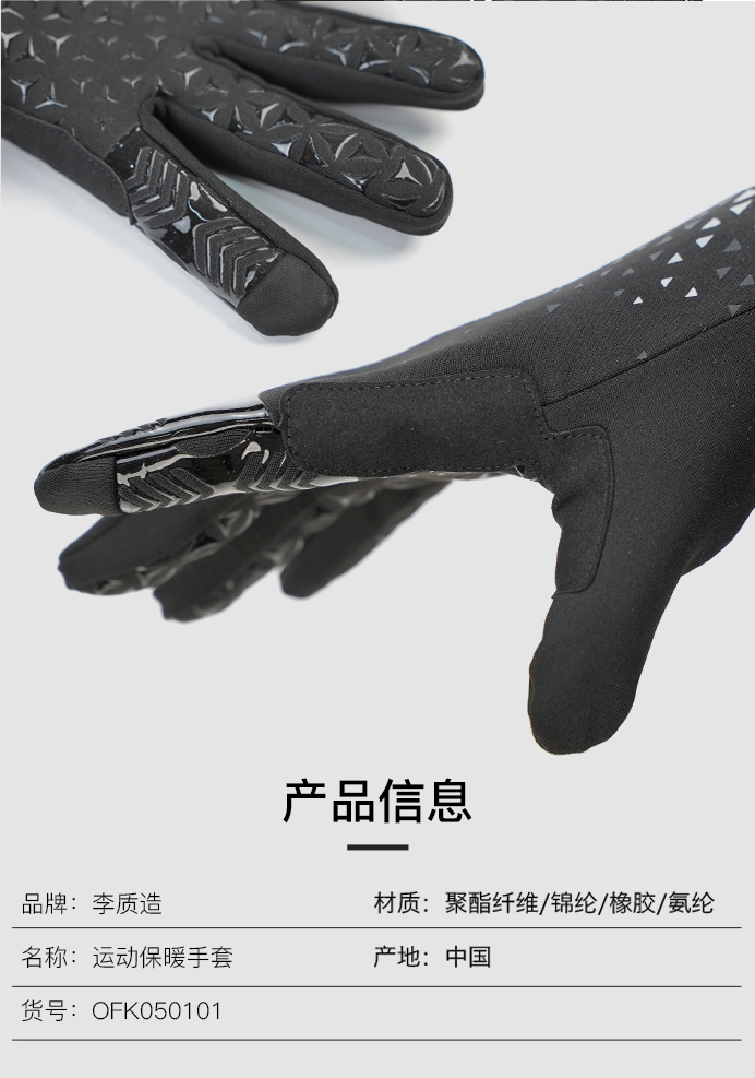 正品李质造足球运动休闲训练保暖可触屏成人儿童防滑手套男