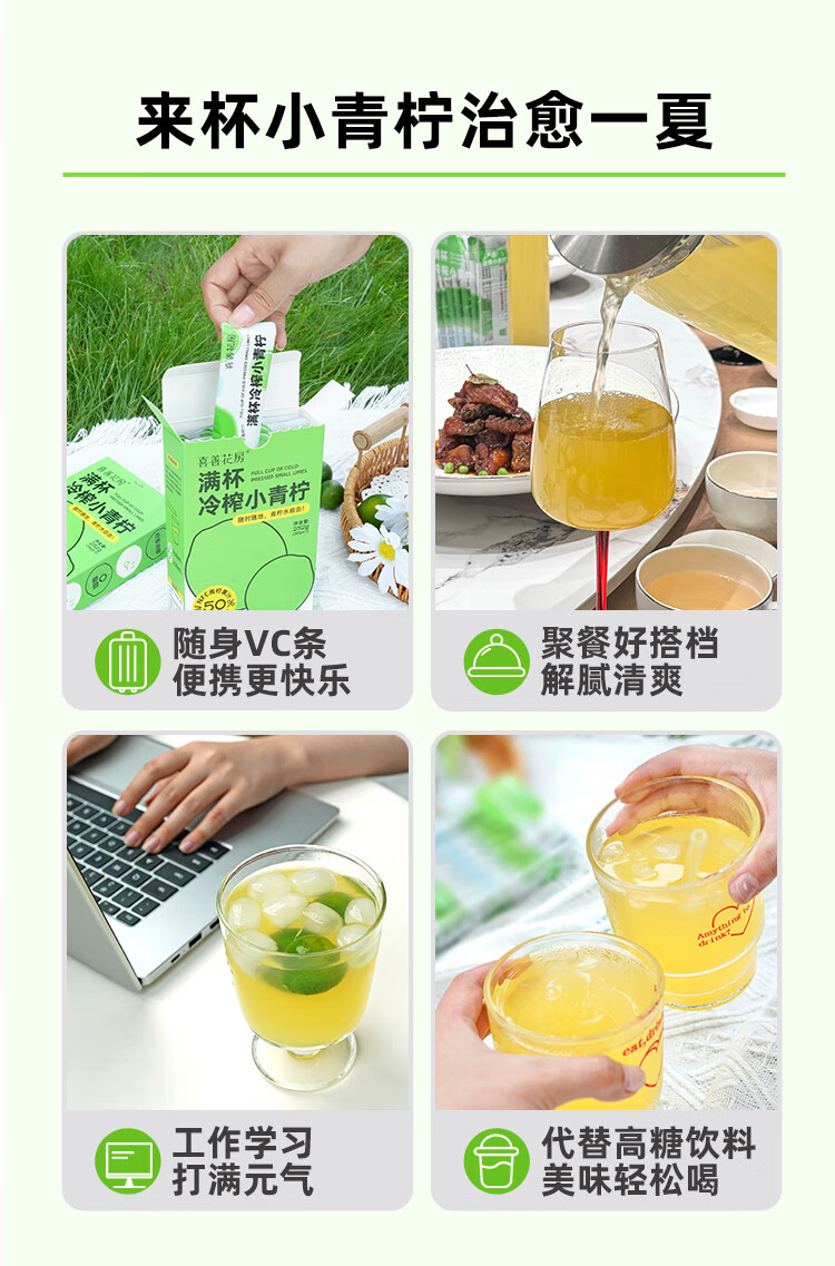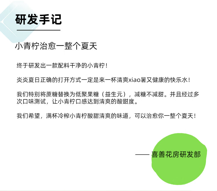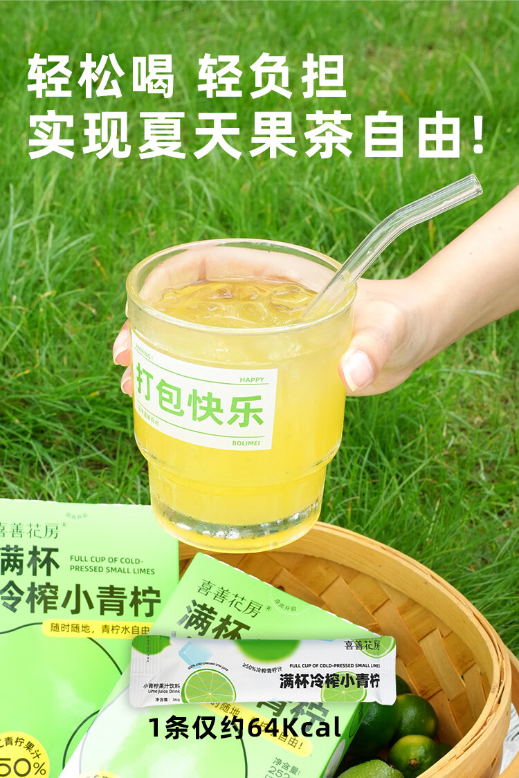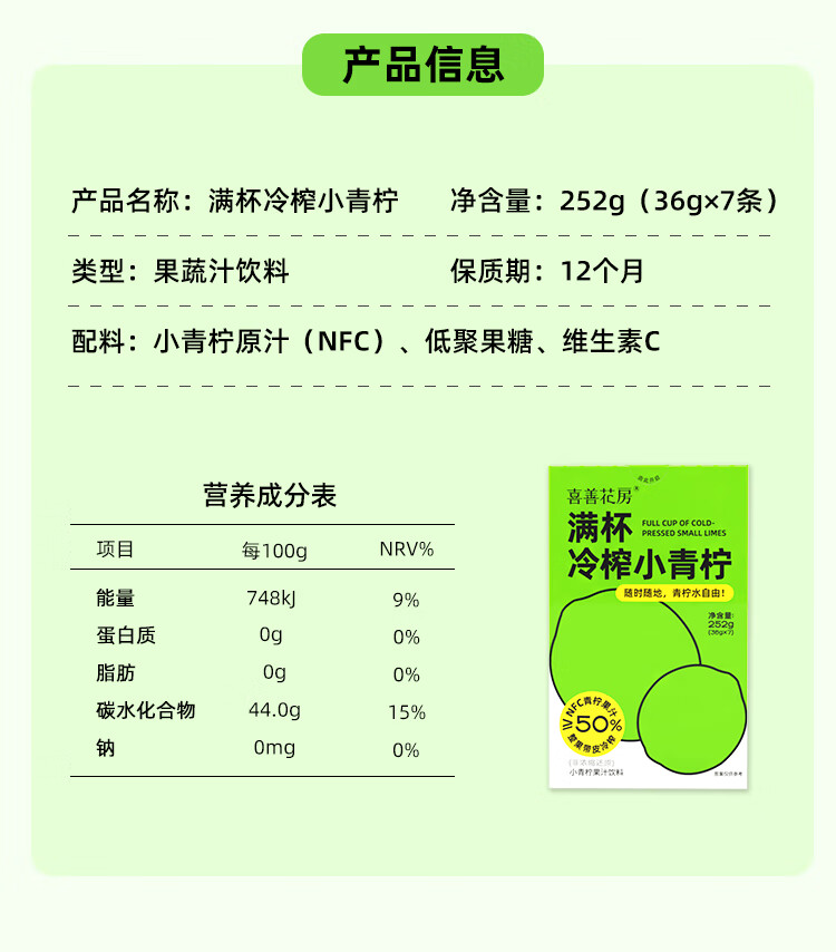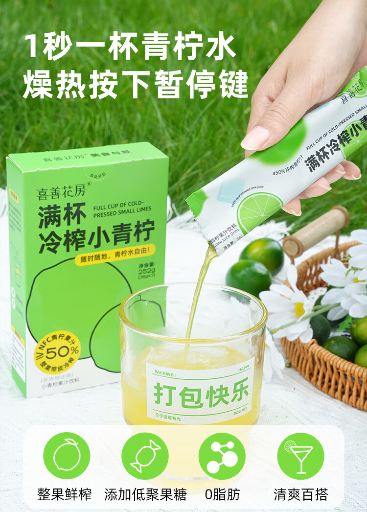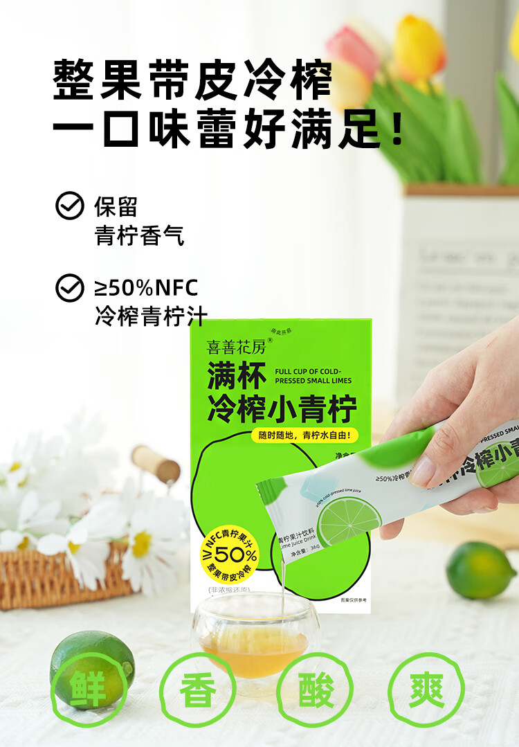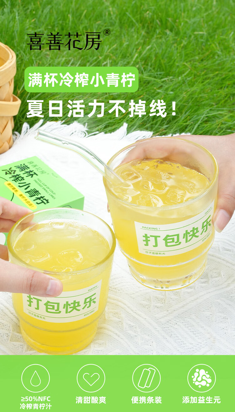 【好身材吃出来】喜善花房冷榨小青柠汁36g*7条柠檬水浓缩汁nfc果汁液体夏日饮品