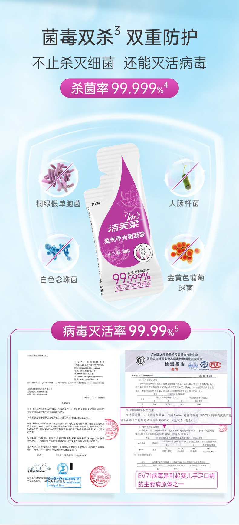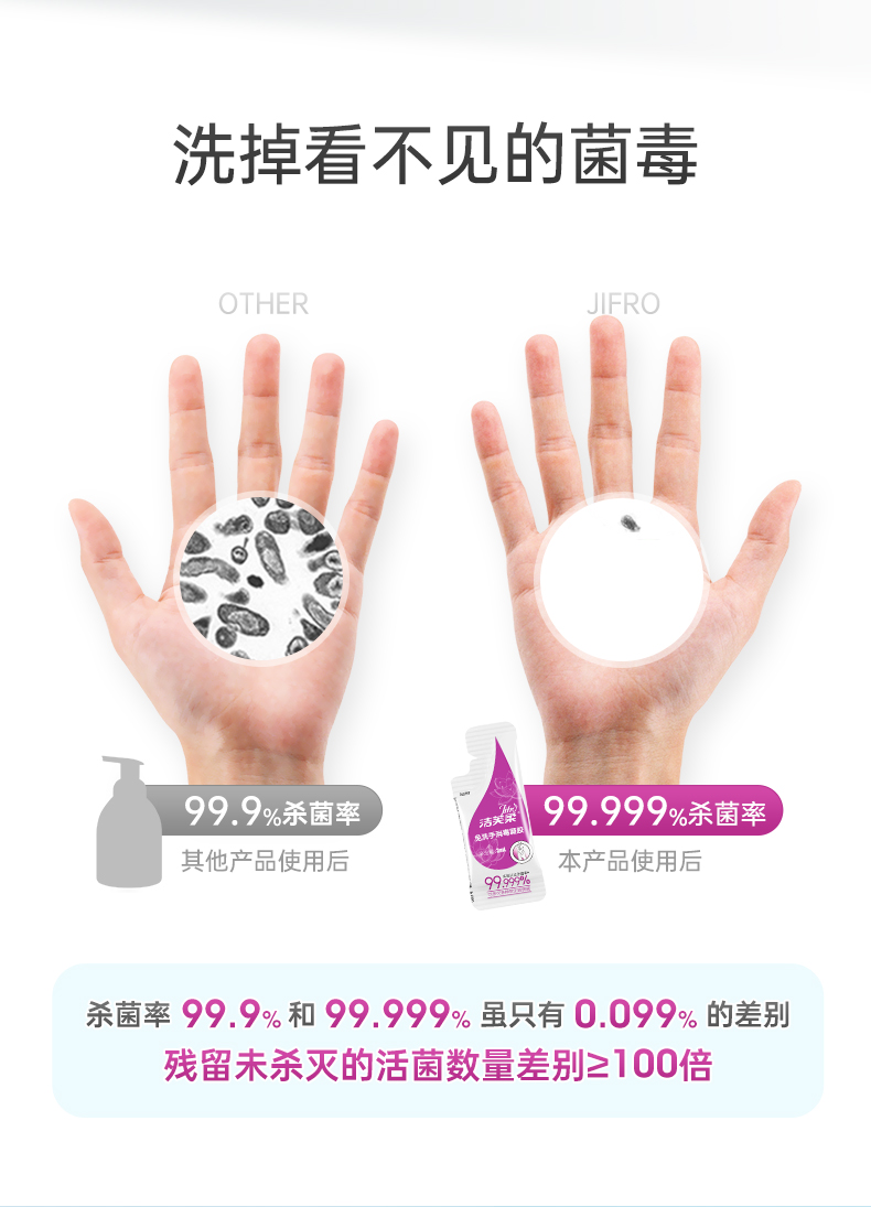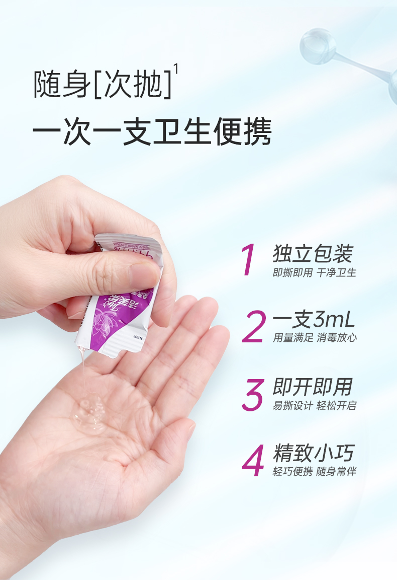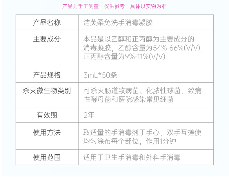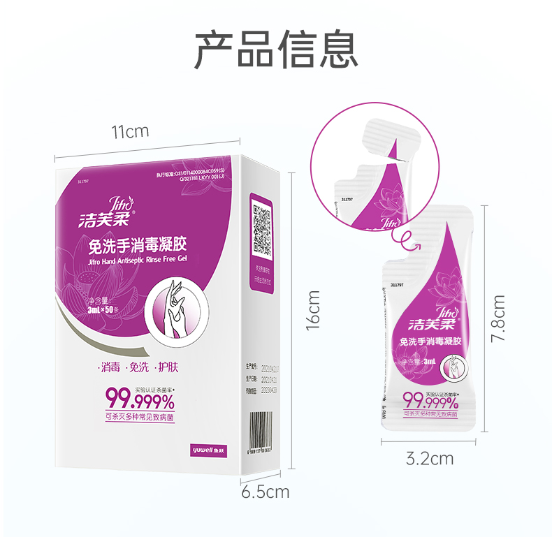 洁芙柔免洗洗手液消毒凝胶杀菌消毒液免水洗3ml*50包*2盒
