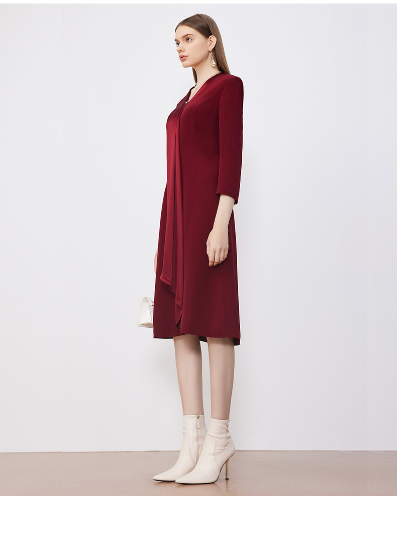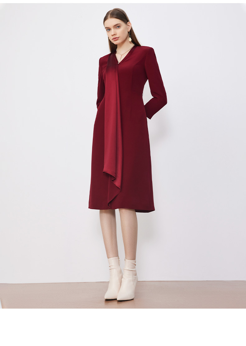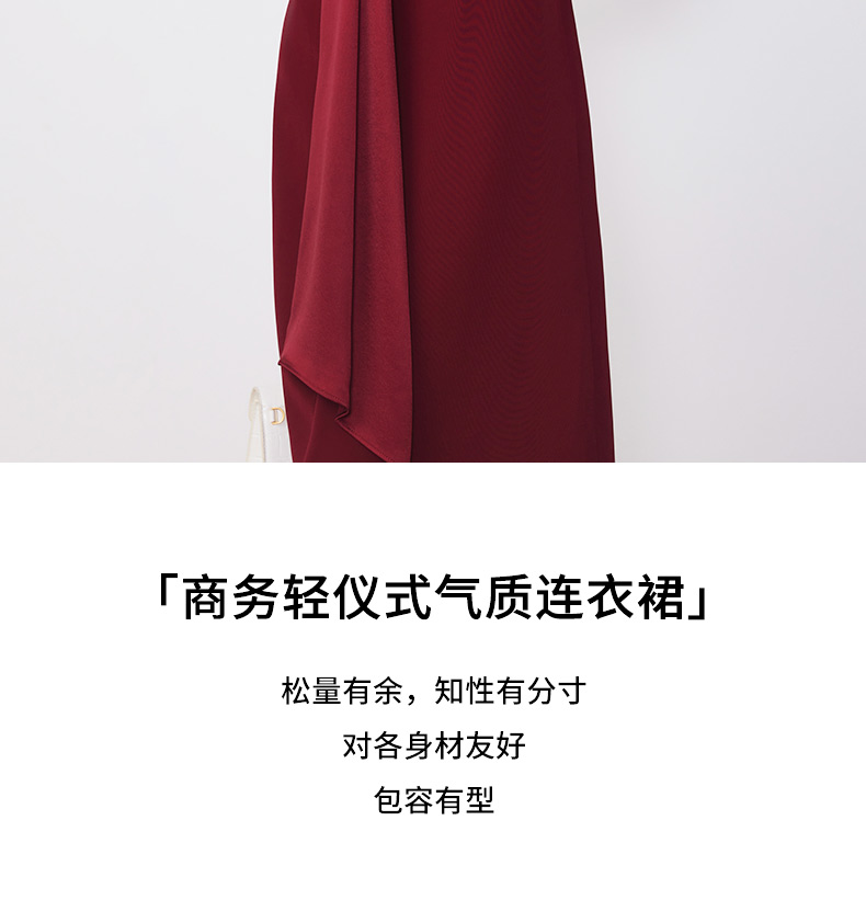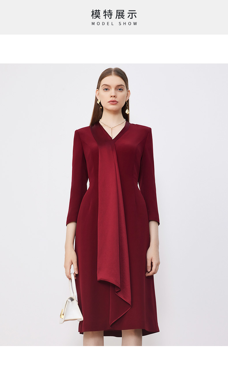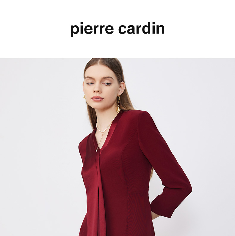 皮尔卡丹女装连衣裙酒红色亮面凸显气质婚庆喜婆婆裙P3306E3877T0