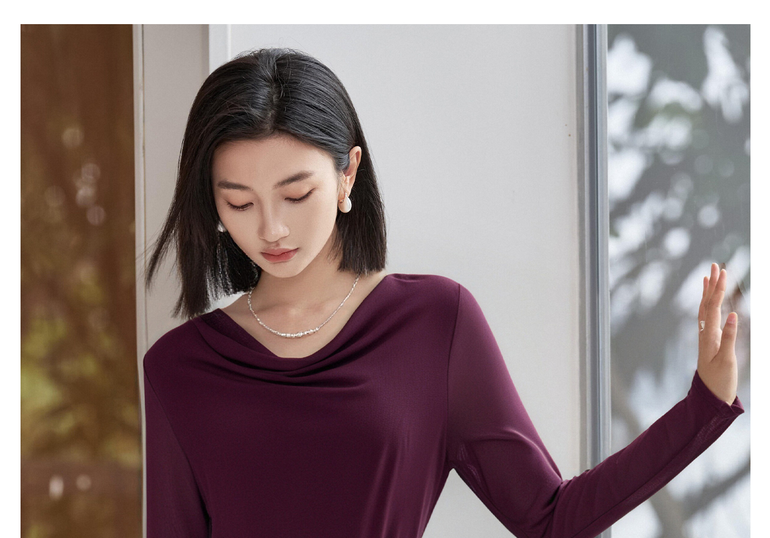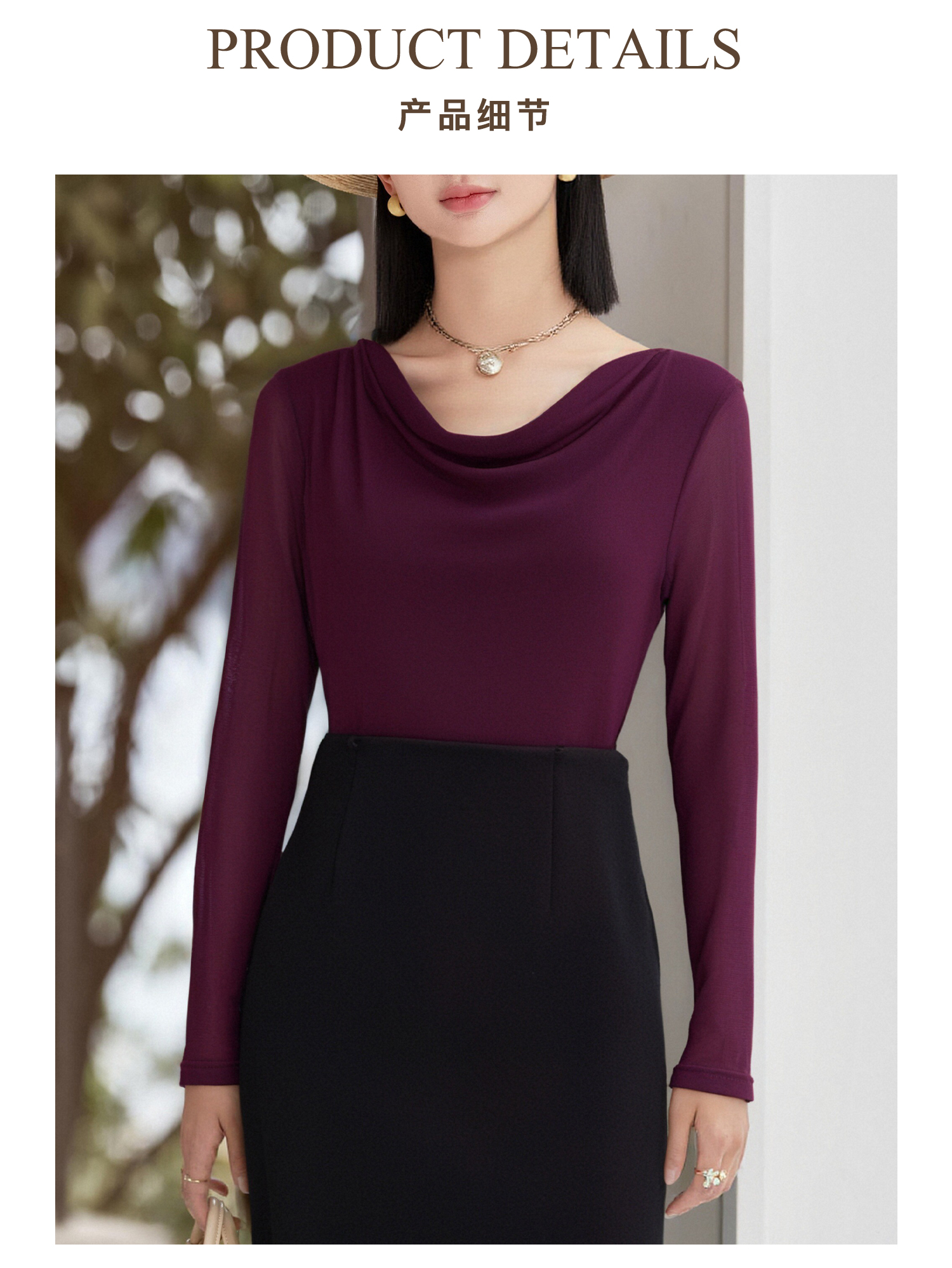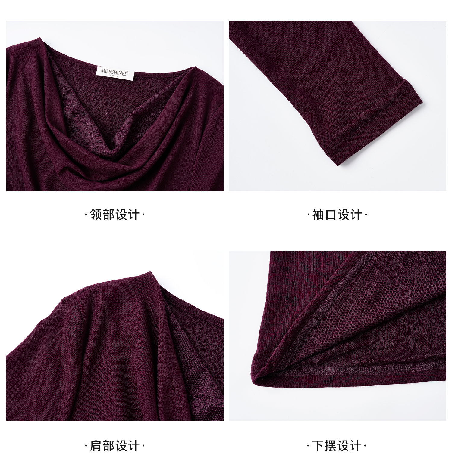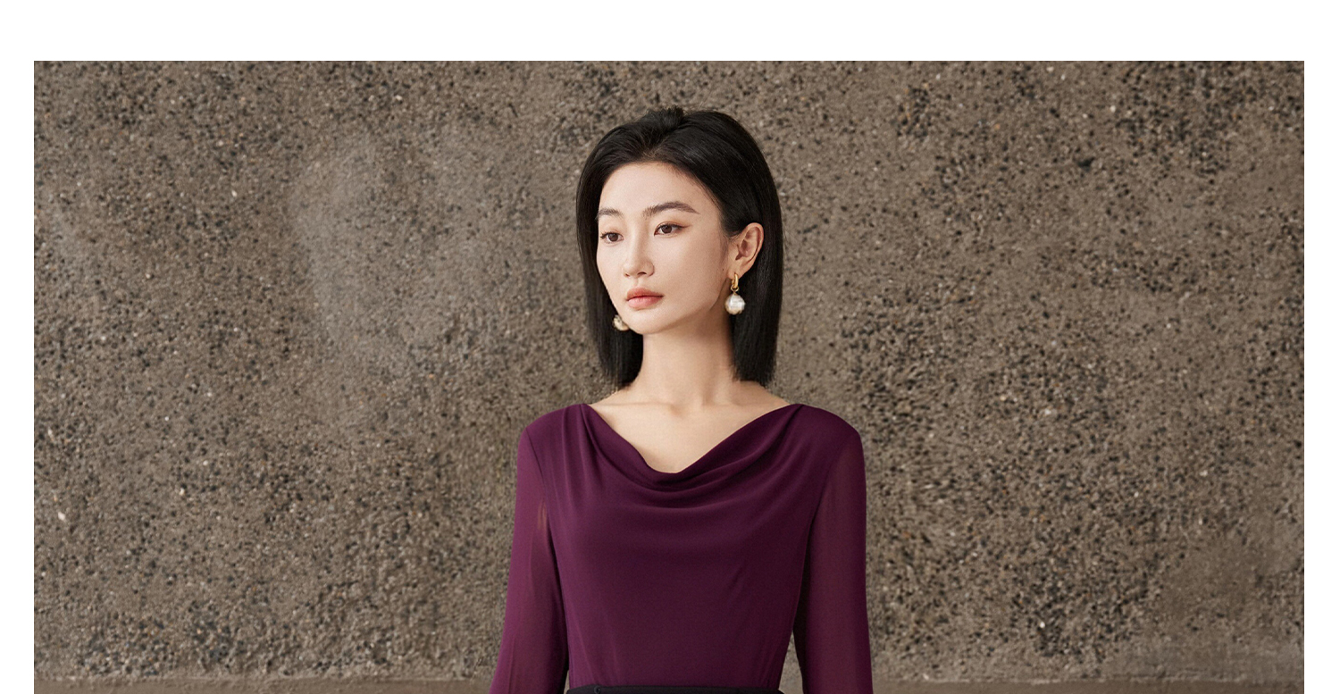 剩S/M/L/XL 西梅紫荡领长袖T恤5J25CT4396