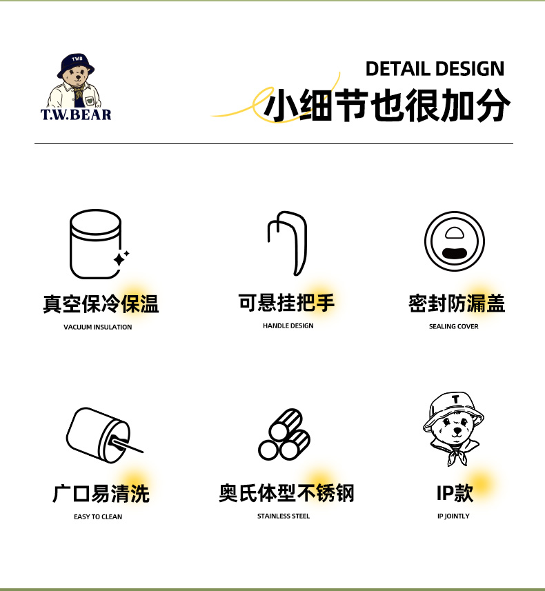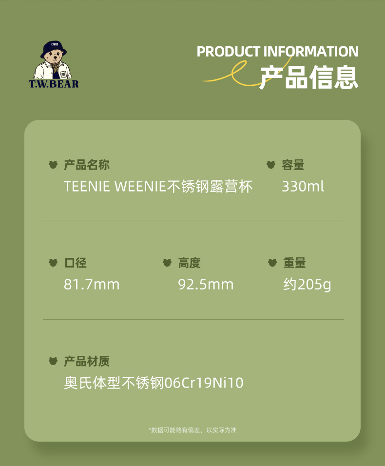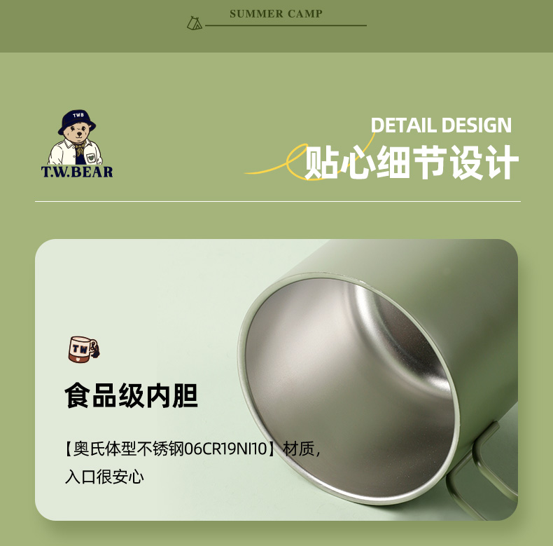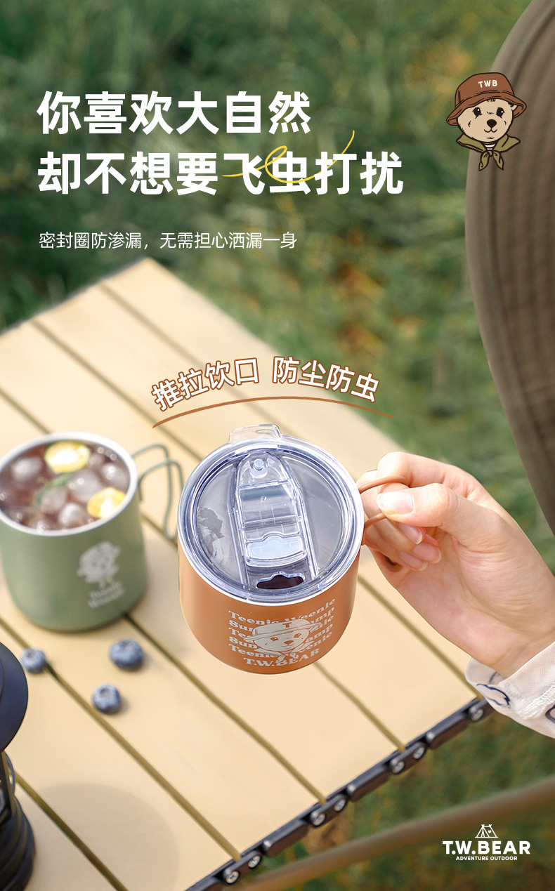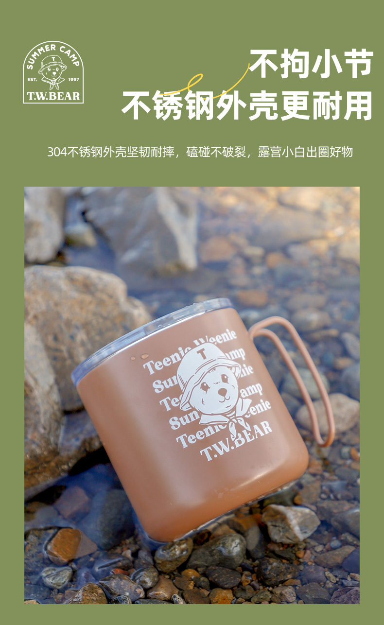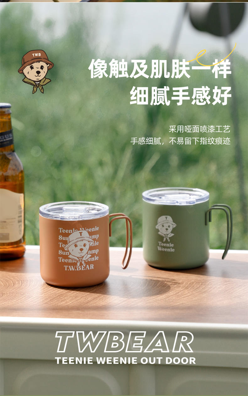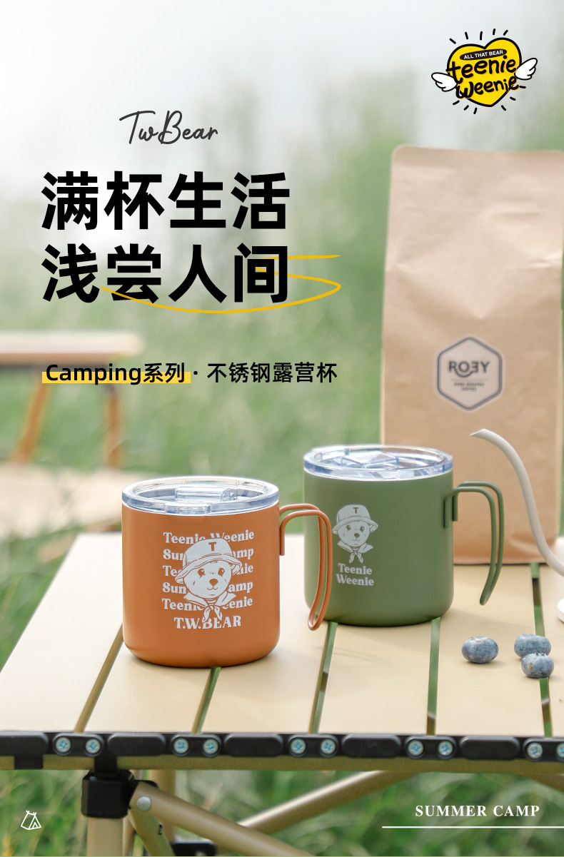 TeenieWeenie露营杯女咖啡杯不锈钢ins可爱带盖喝水杯保温马克杯