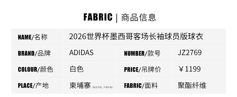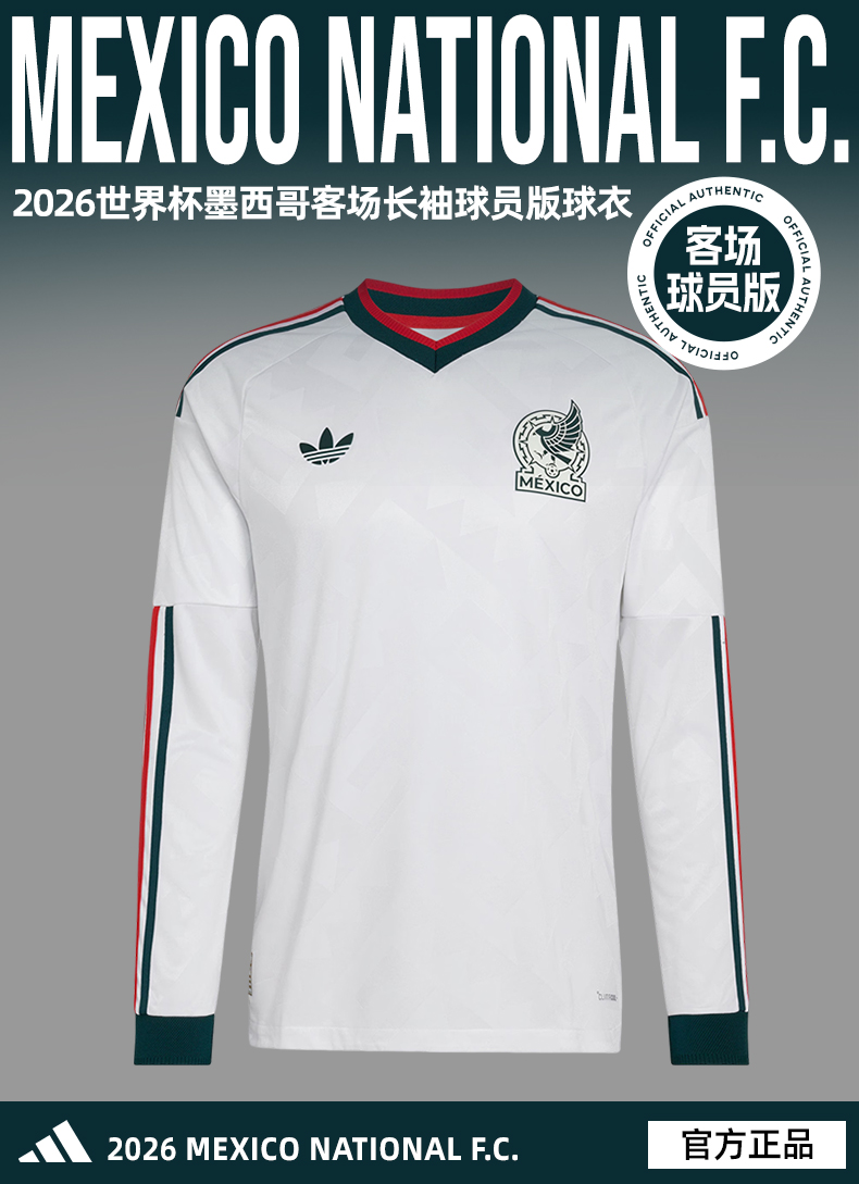 SFS阿迪达斯2026世界杯墨西哥客场长袖球员版球衣足球服 JZ2769