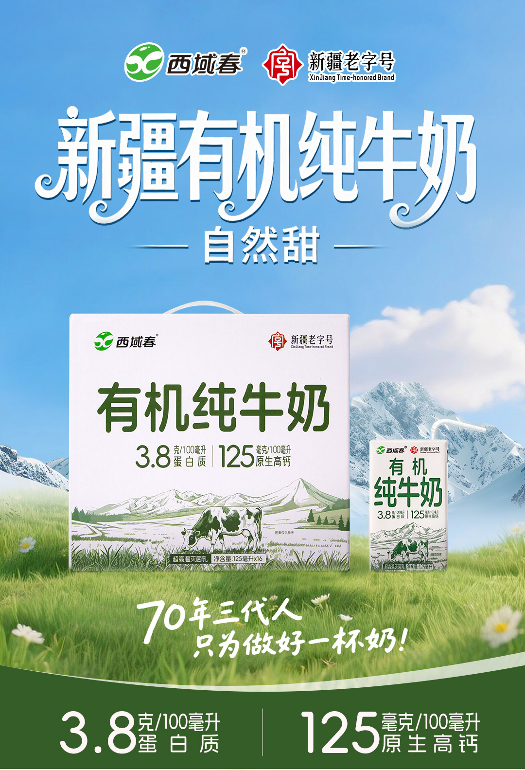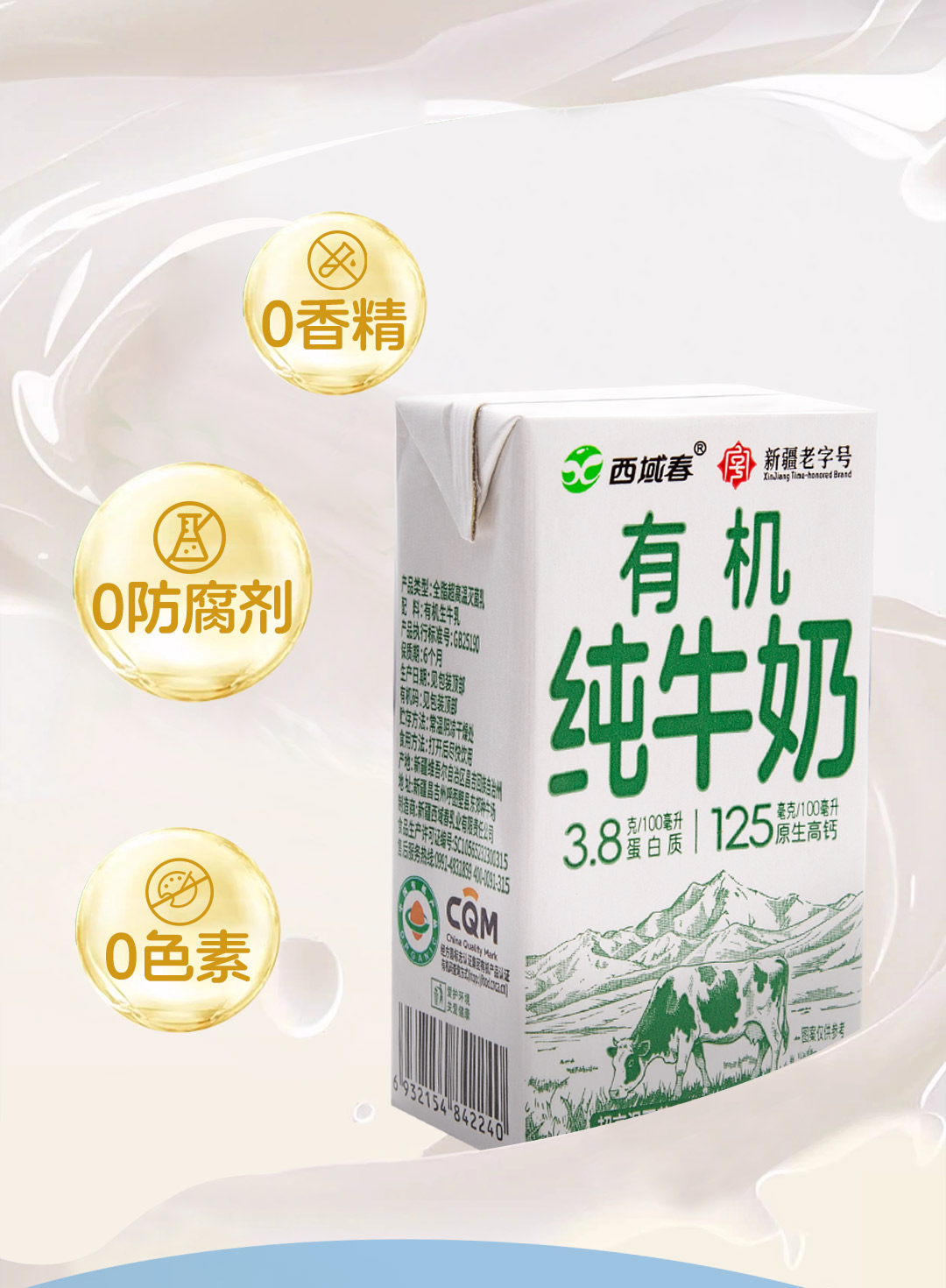 有机纯牛奶 3.8g乳蛋白(礼盒装) 125ml*16盒