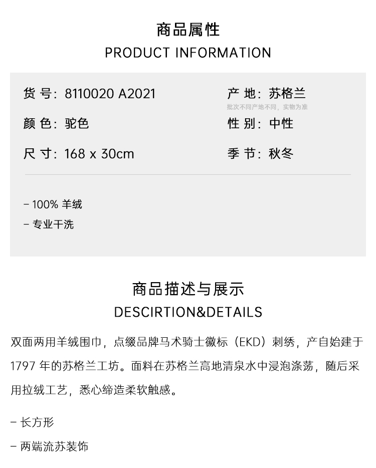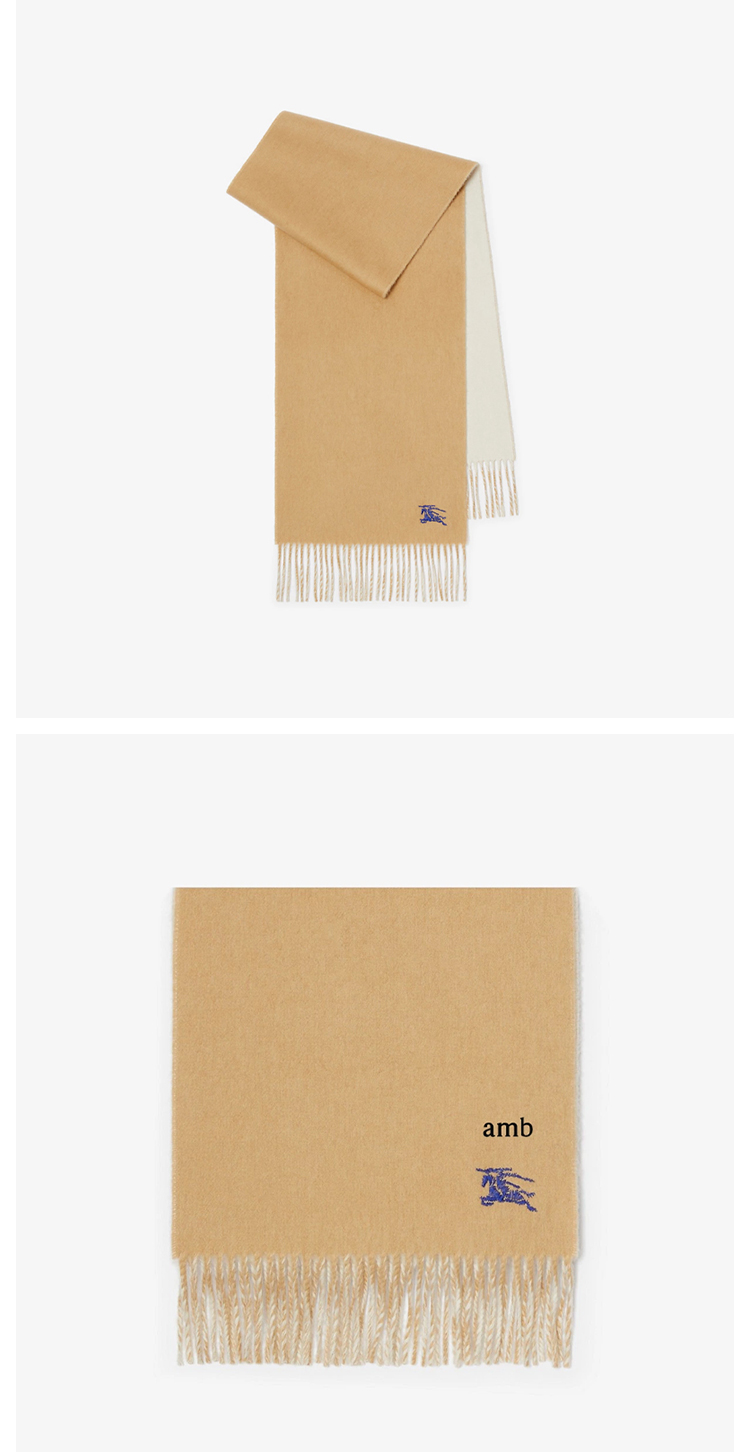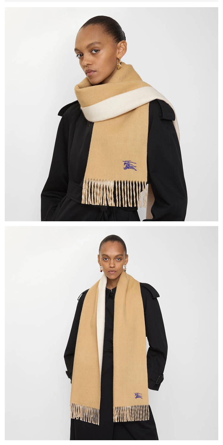 BURBERRY 巴宝莉 中性马术骑士刺绣徽标双面两用羊绒围巾 驼色 8110020 A2021