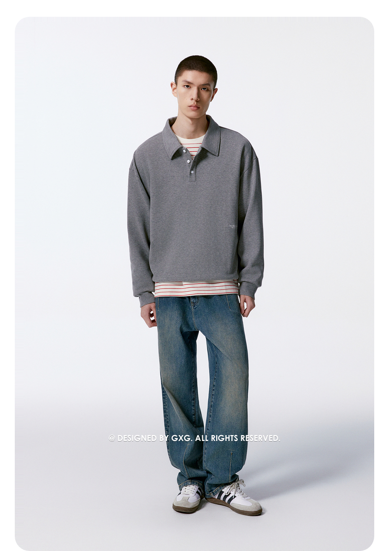 GXG男士家居服 肌理感褶皱纹理长袖睡衣男休闲系带式开衫睡衣套装