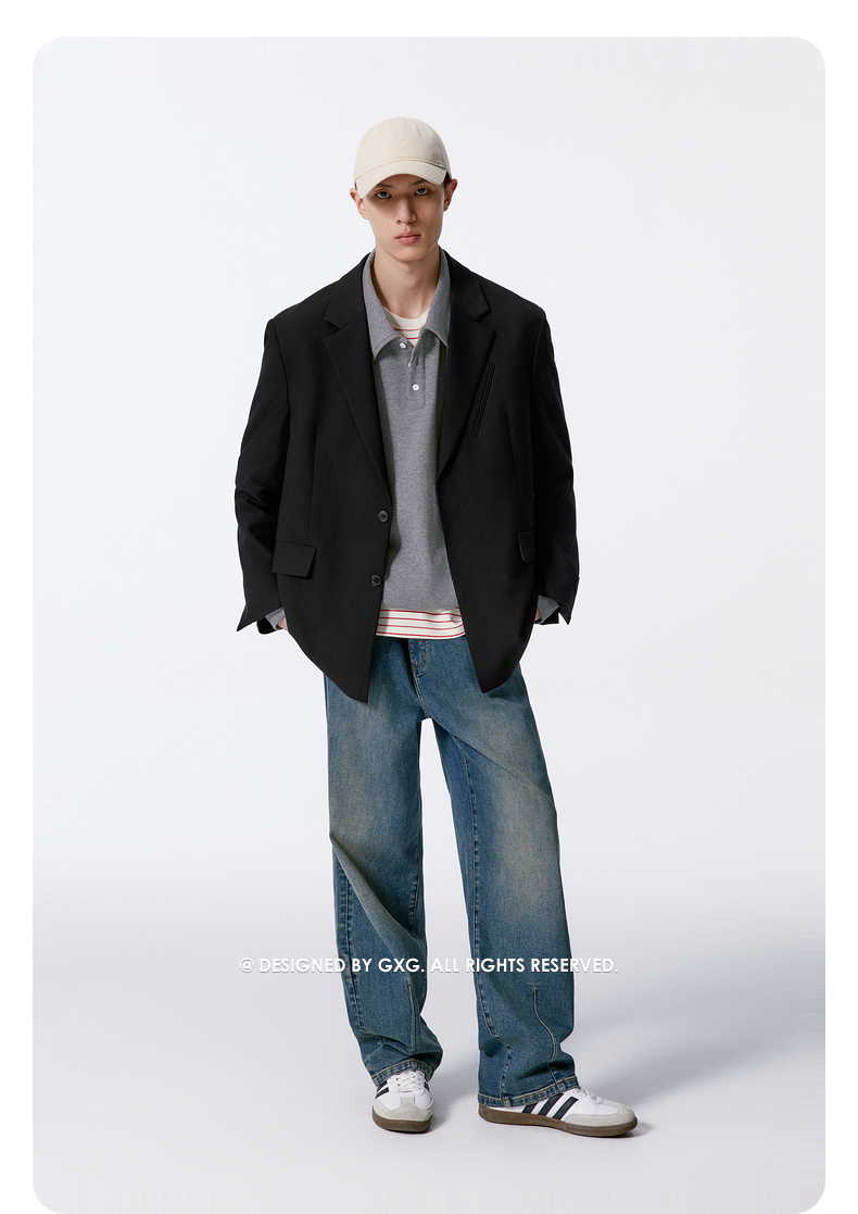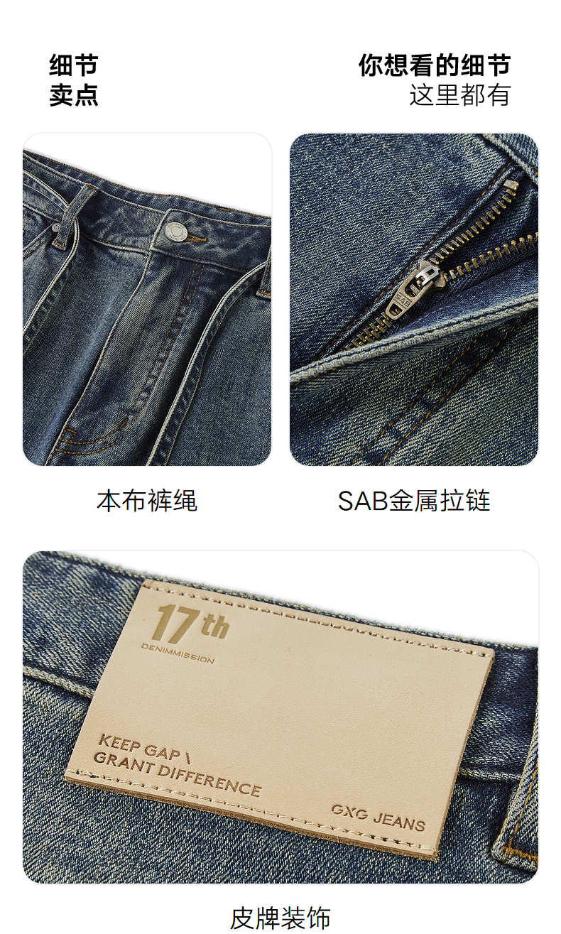 GXG男装 复古经典黑色修身耐磨四面弹力直筒牛仔裤 2025秋季新品