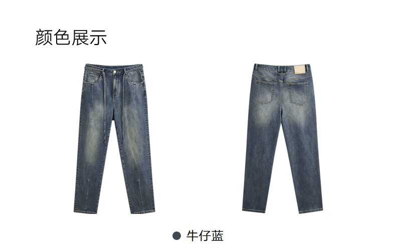 GXG男装 浅蓝系绳设计牛仔裤锥形长裤 24年秋G24X053024
