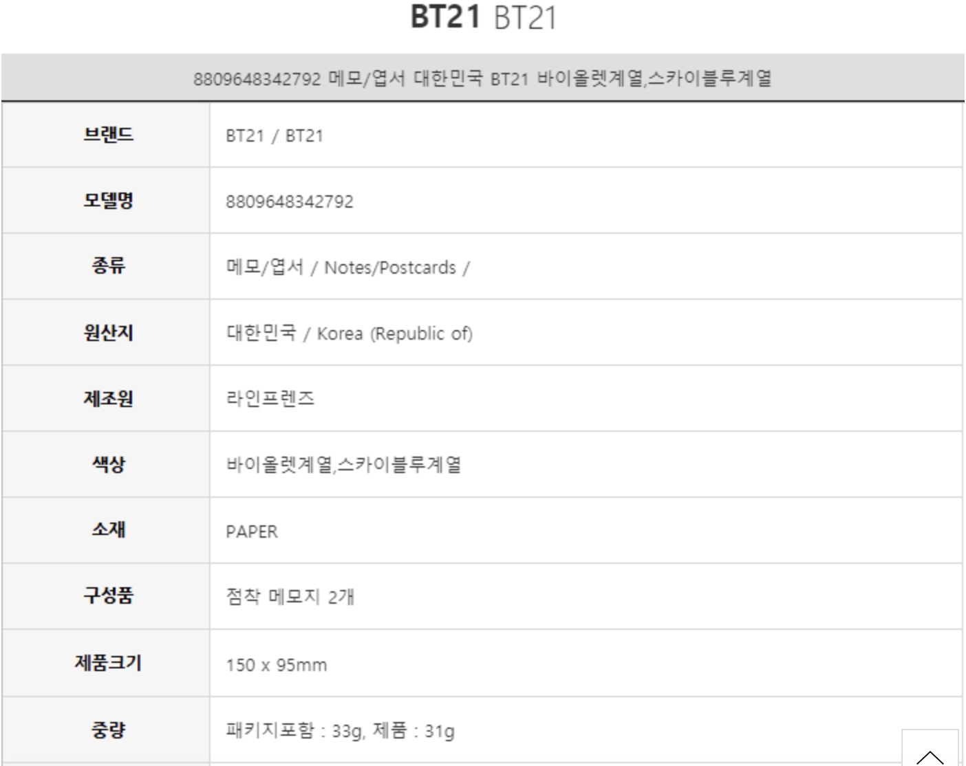 Line Friends BT21 KOYA便条纸套装(每包2件)
