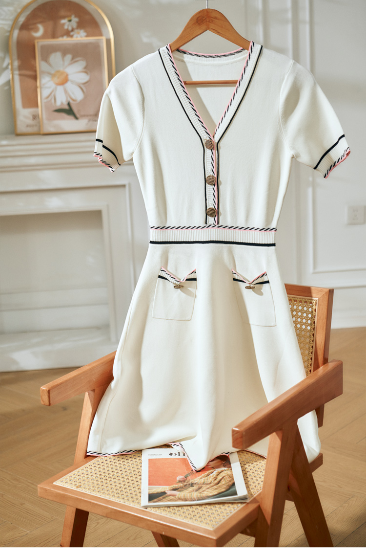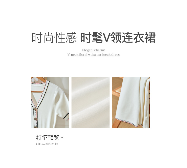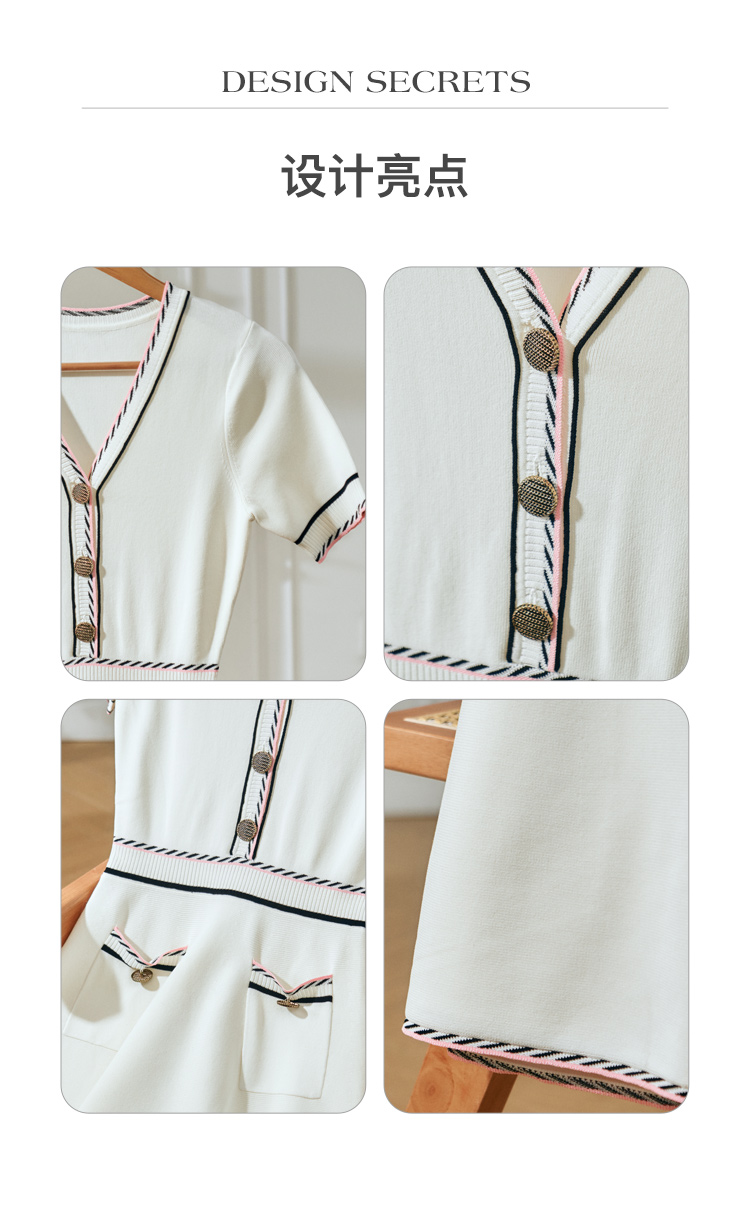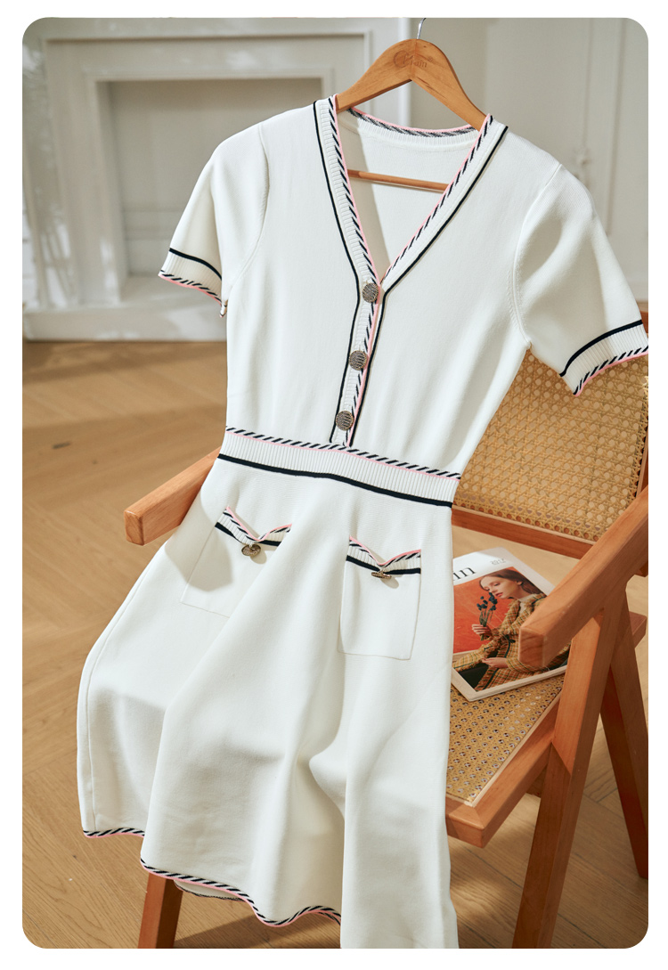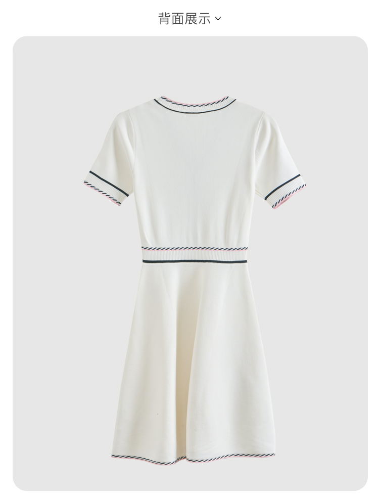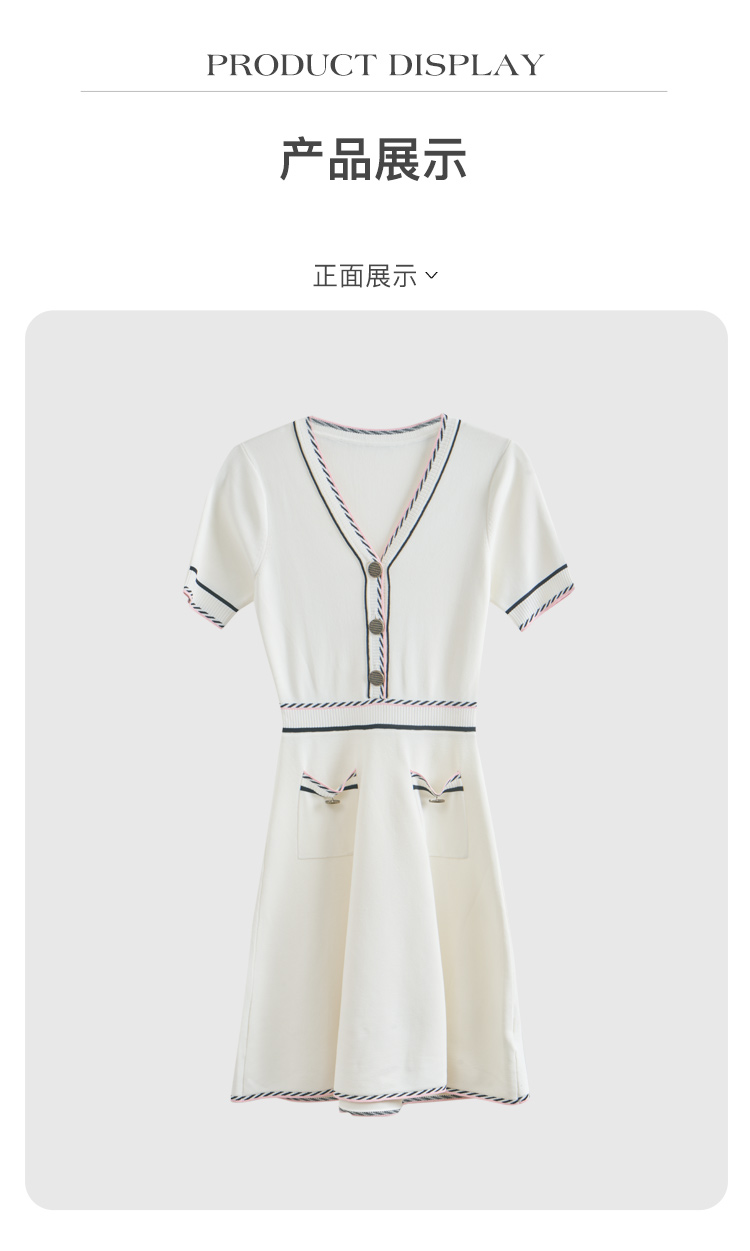 【最后一天】欧芮儿春新款短袖V领针织连衣裙女收腰气质显瘦中长款A字裙