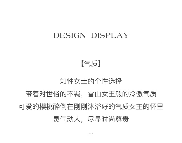 “精致”是欧芮儿olrain品牌文化的核心,欧芮儿认为,精致的女人,不但要外在动人,更要内在迷人,内外兼修,有魅力、有气质、有内涵,自信而不自傲,优雅而不矫揉,自有万种风情而不轻浮,更不故作矜持。